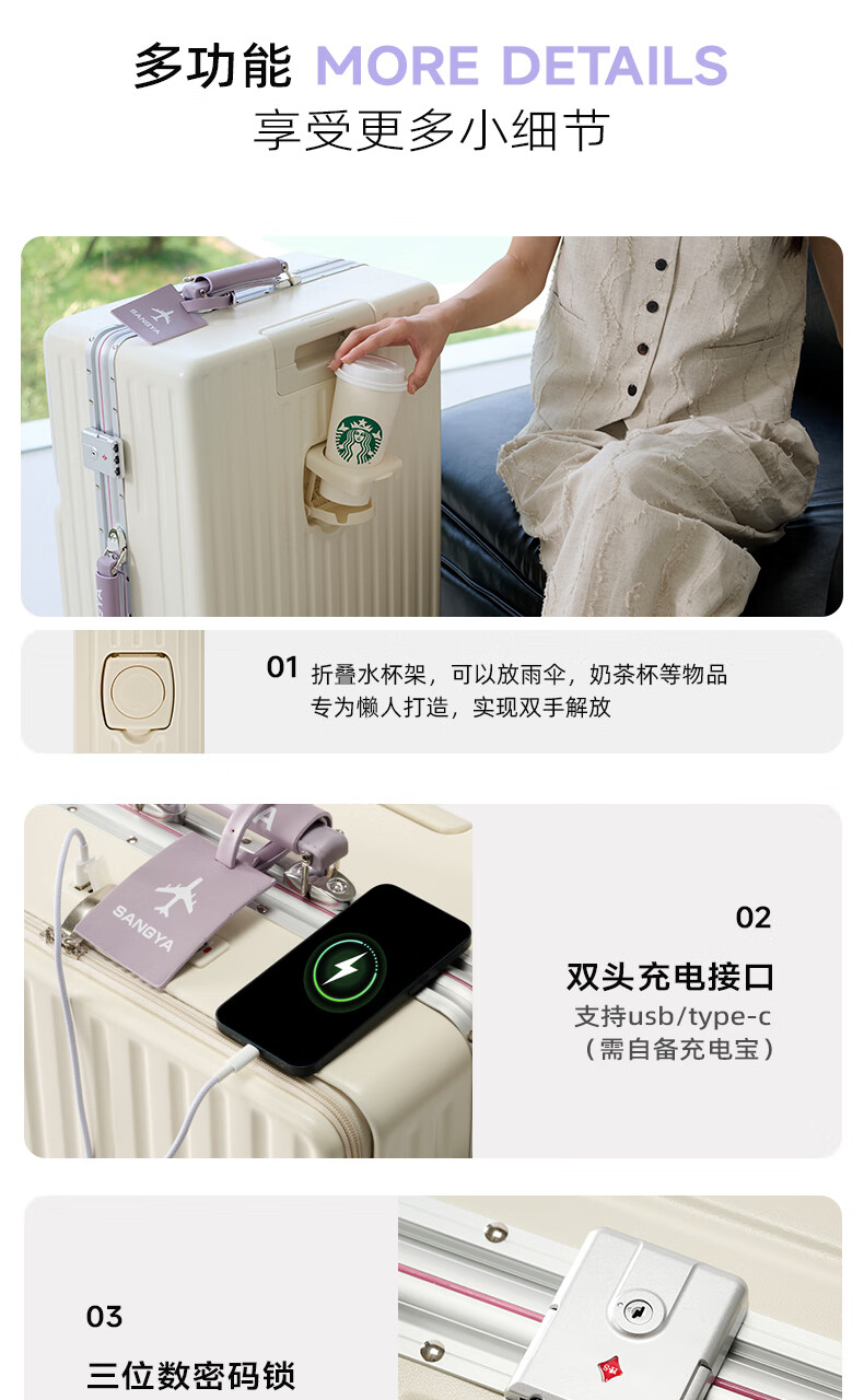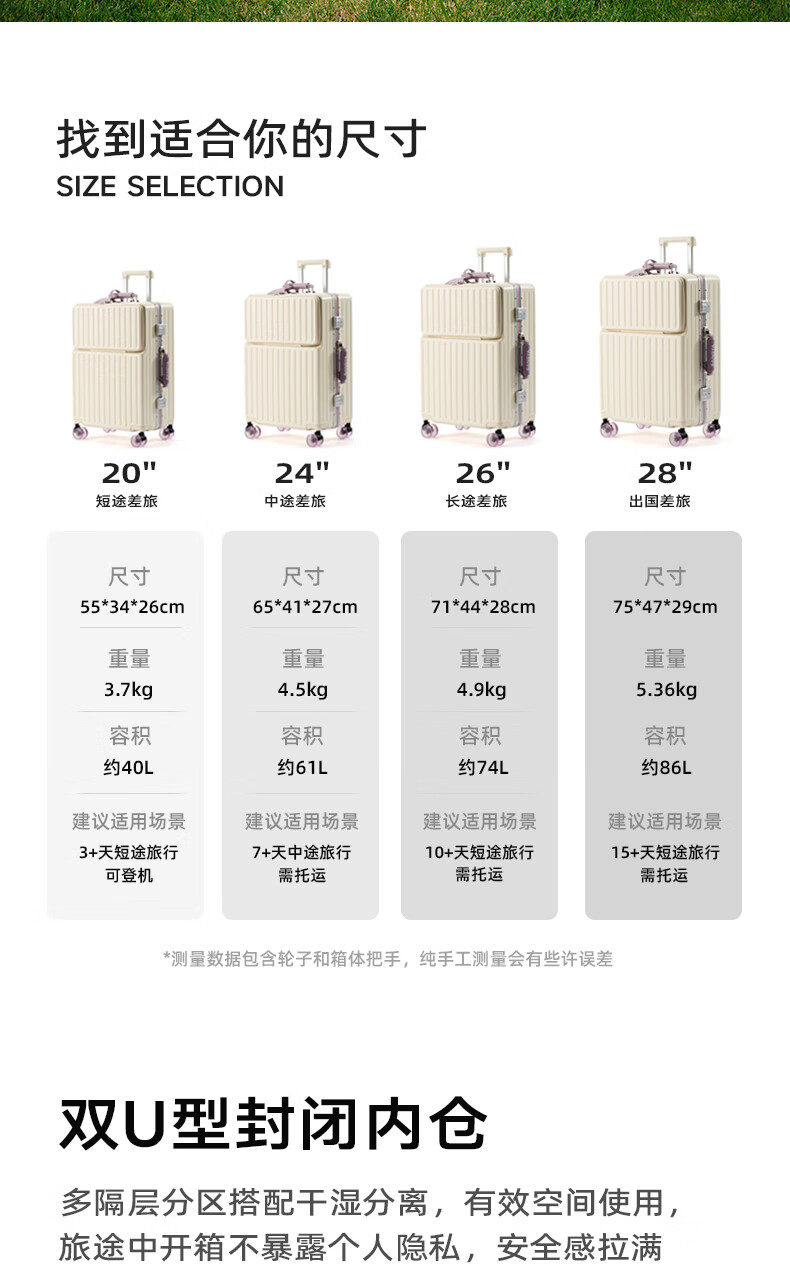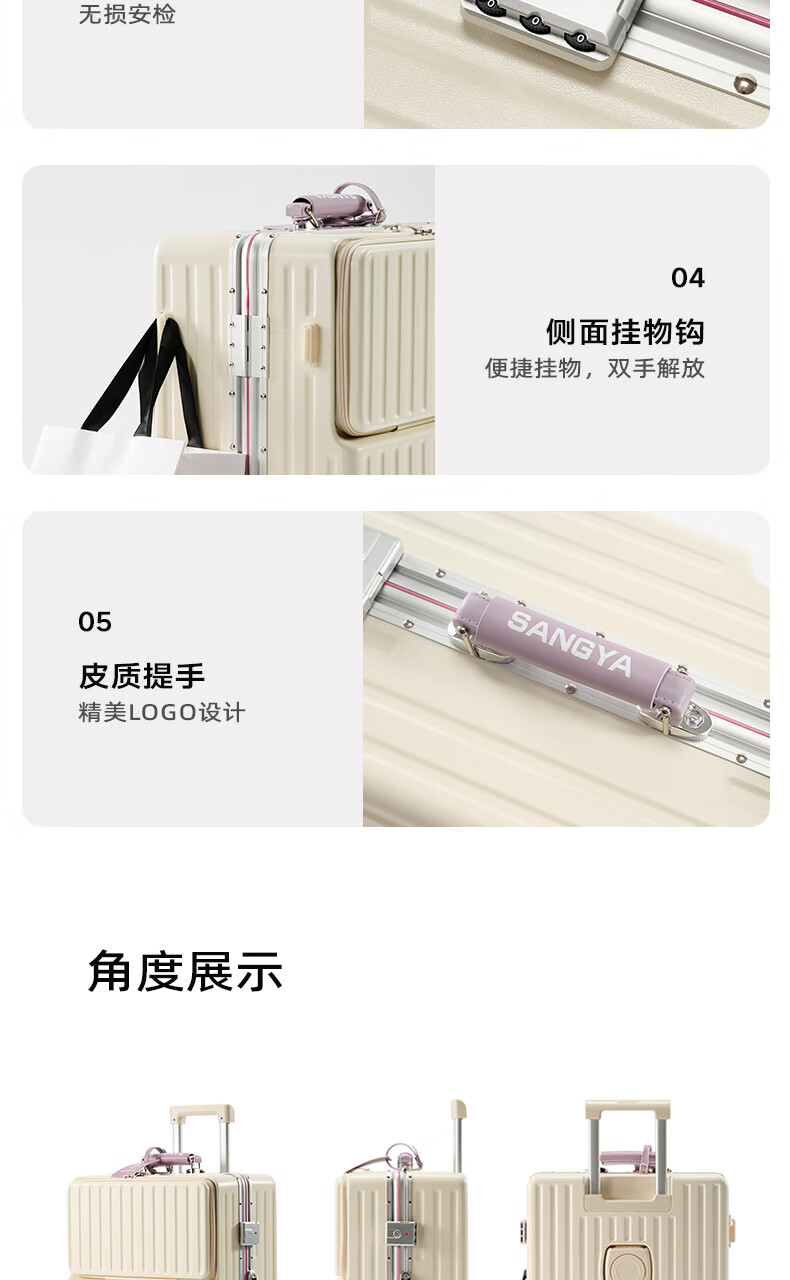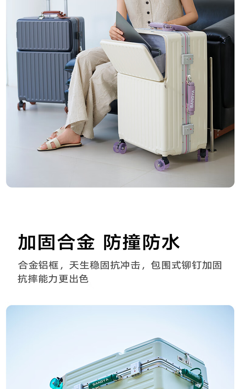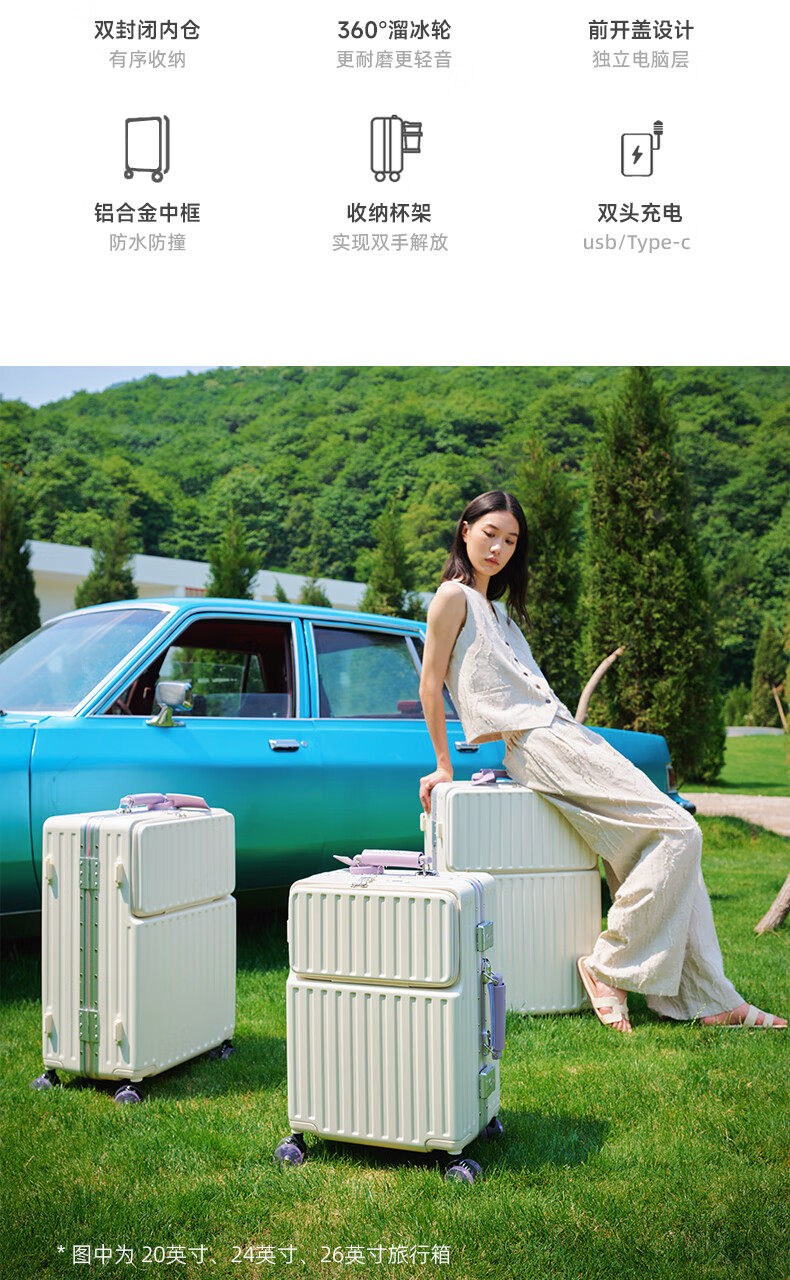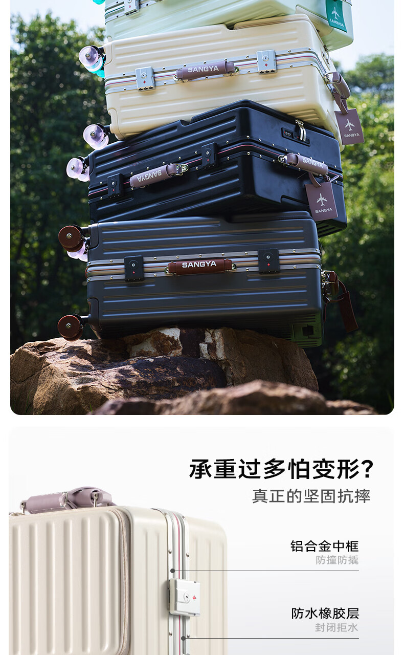 Yixuan aluminum frame suitcase for women, good-looking, front-opening, multifunctional password box for men, thickened, strong and durable 24-inch suitcase, vanilla milkshake, leather handbag + roller skates* more silky and more wear-resistant, 26-inch students going to school, staying and returning to school