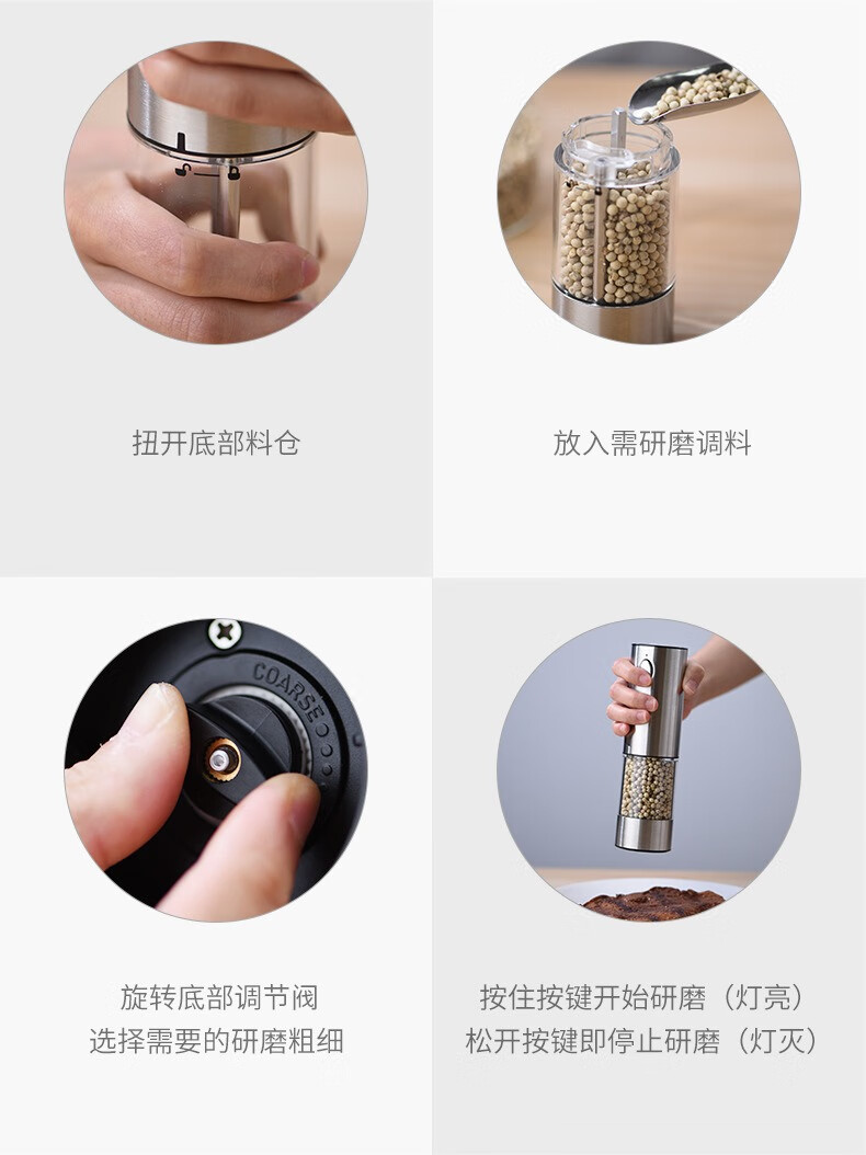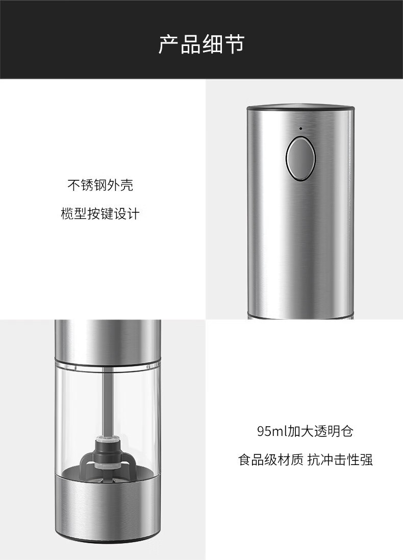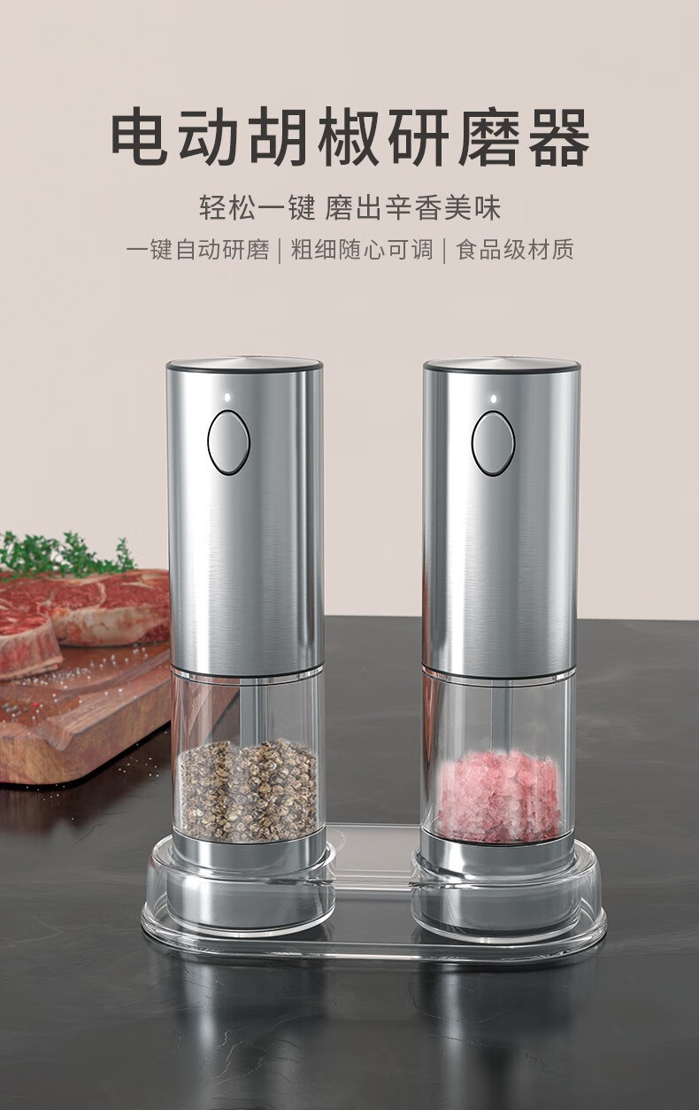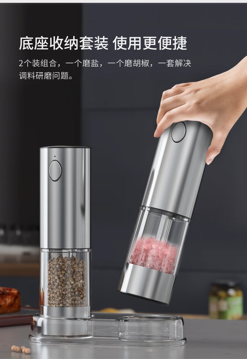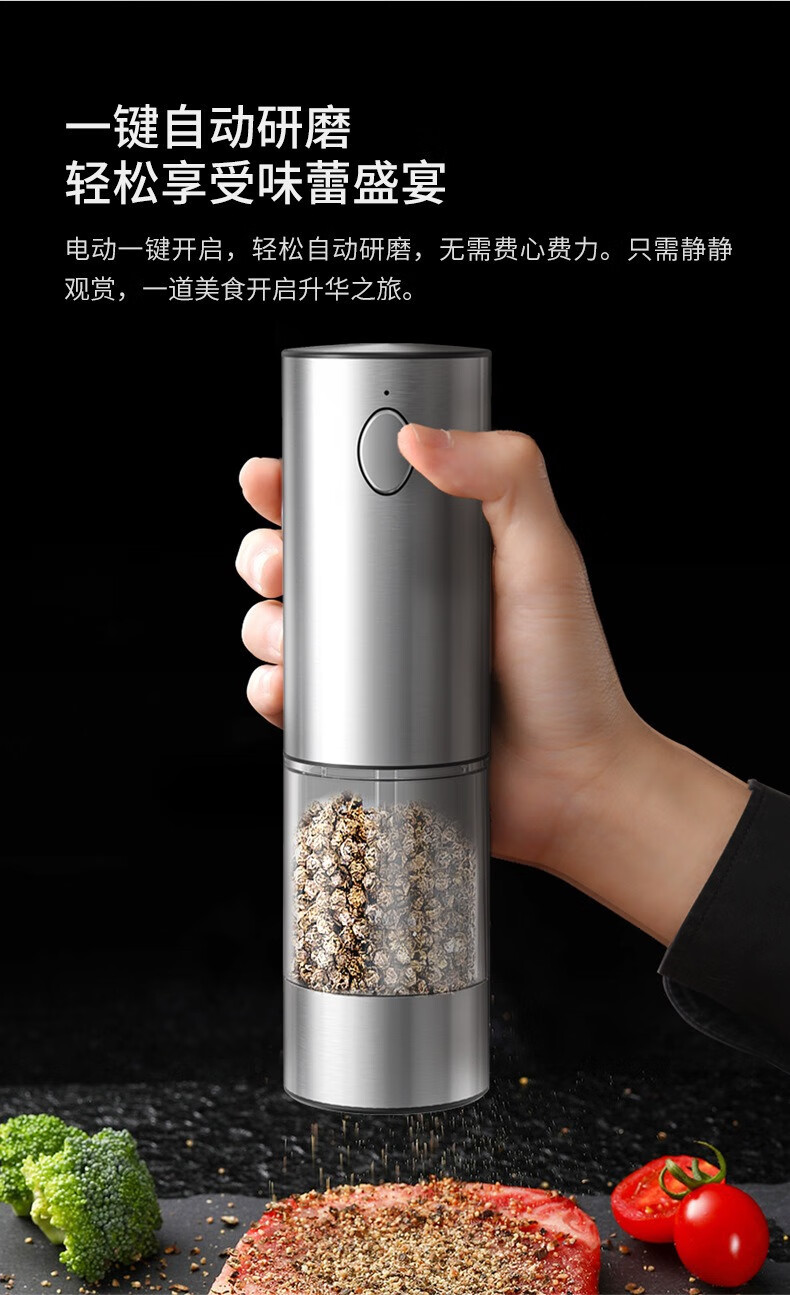 AILUKI Japanese electric pepper grinder household kitchen artifact seasoning black peppercorns sea salt spices cumin pepper bottle rechargeable steel color electric grinder