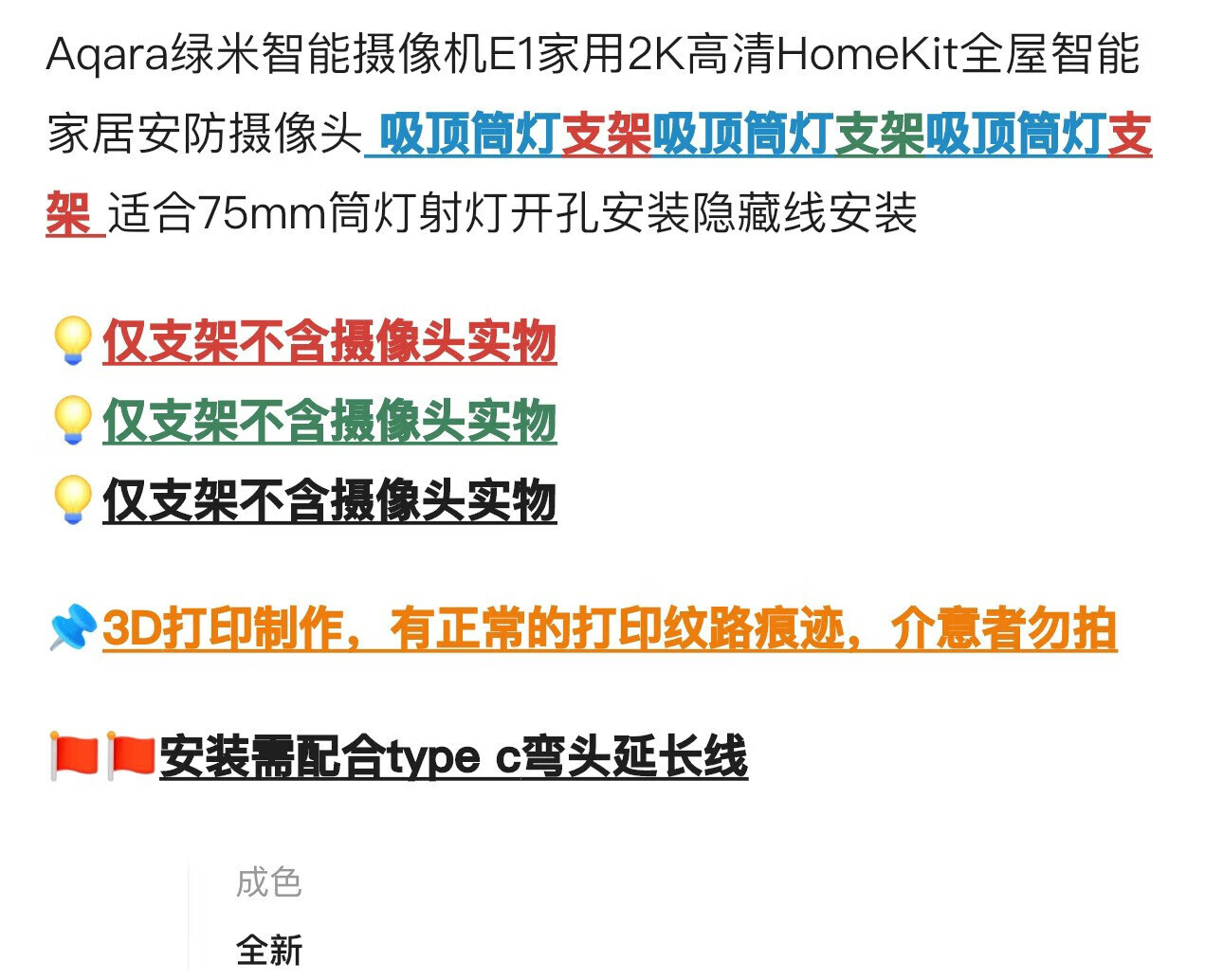 Tongrongcui Aqara green rice G3 smart camera E1 home 2K high-definition HomeKit home security ceiling downlight bracket Aqara E1 camera ceiling bracket with extension cable (