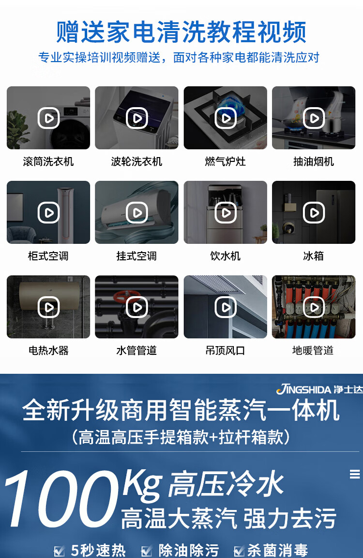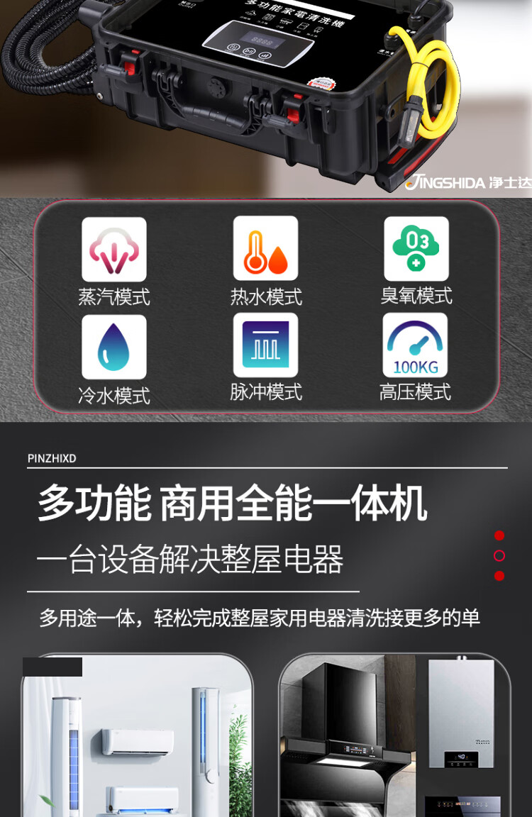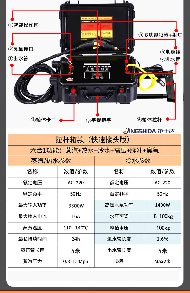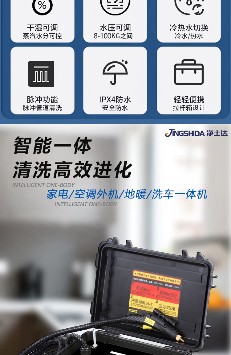 Jingshida High Temperature and High Pressure Steam Cleaner Professional Air Conditioning Range Hood Washing Machine Floor Heating Pipe Multifunctional Home Appliance Cleaning Machine 100kg Frequency Converter High Pressure - Entrepreneurship Gift Pack + Ozone Disinfection - Portable