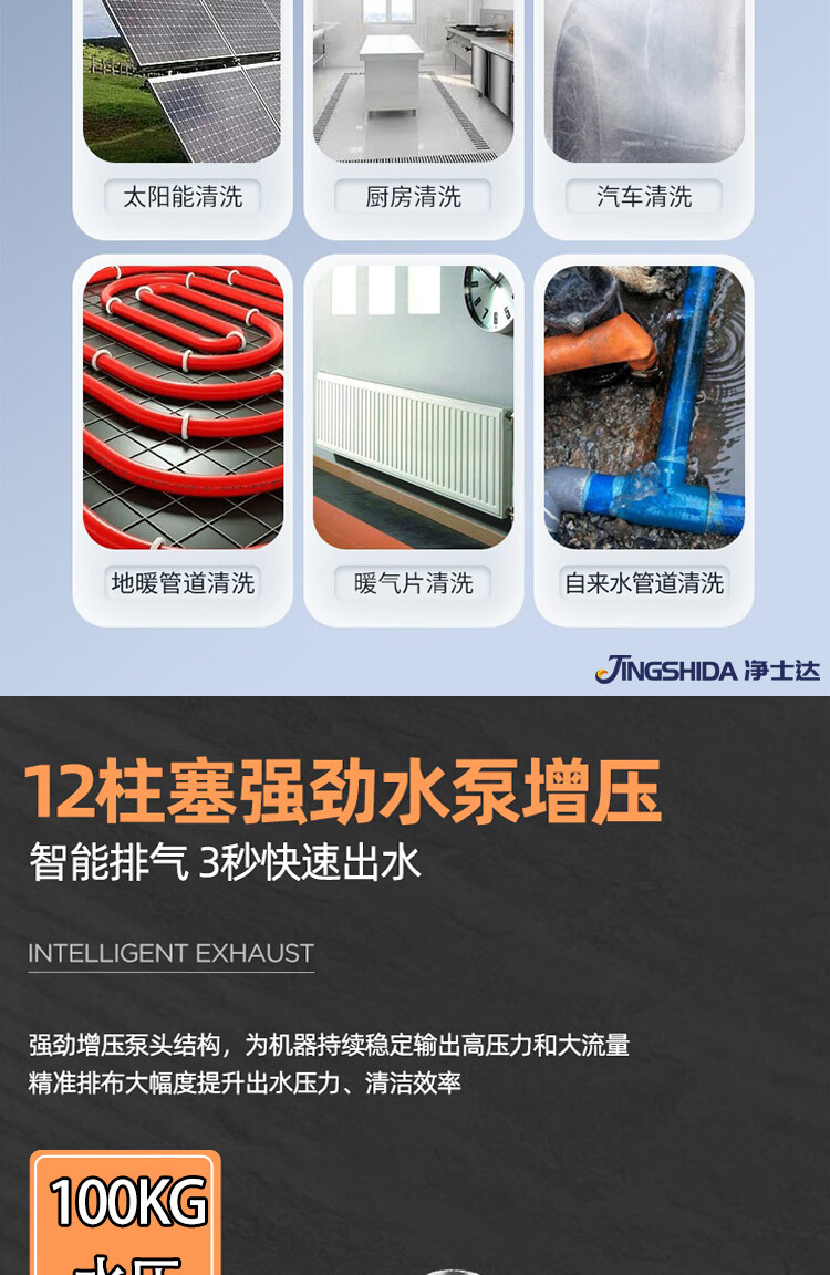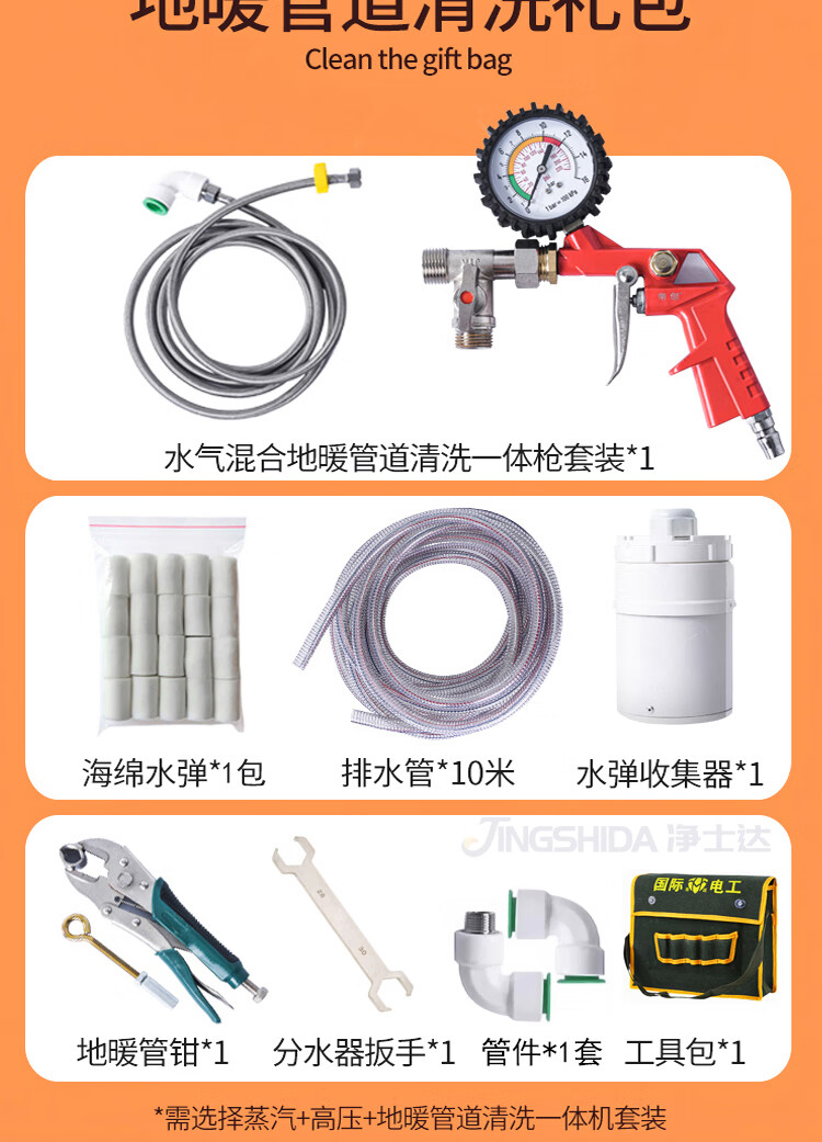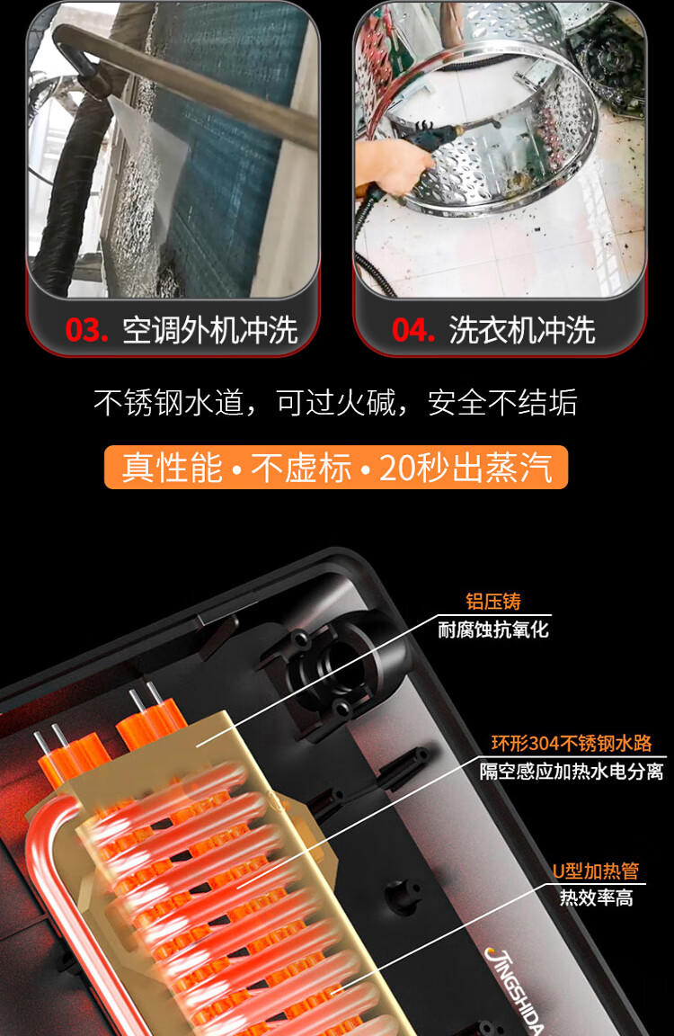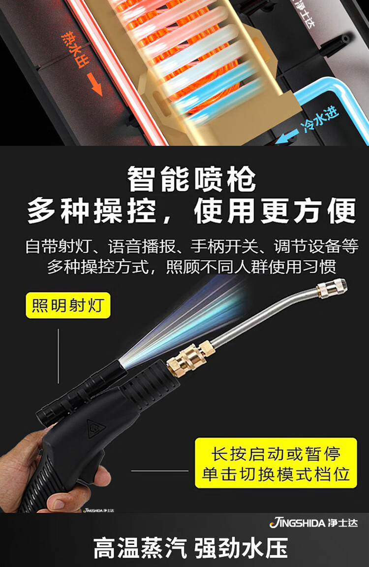 Jingshida High Temperature and High Pressure Steam Cleaner Professional Air Conditioning Range Hood Washing Machine Floor Heating Pipe Multifunctional Home Appliance Cleaning Machine 100kg Frequency Converter High Pressure - Entrepreneurship Gift Pack + Ozone Disinfection - Portable