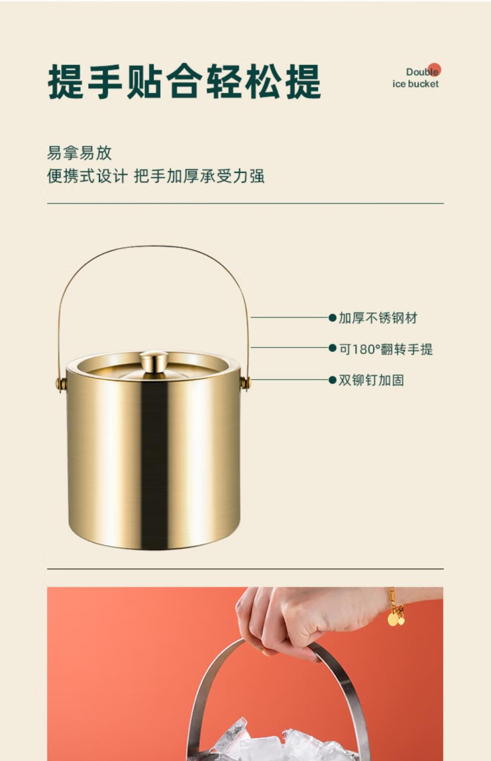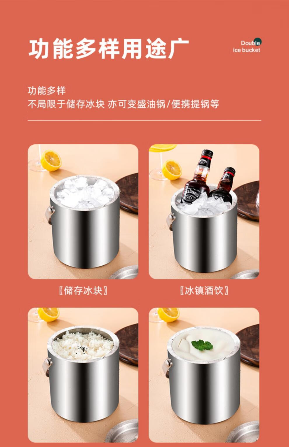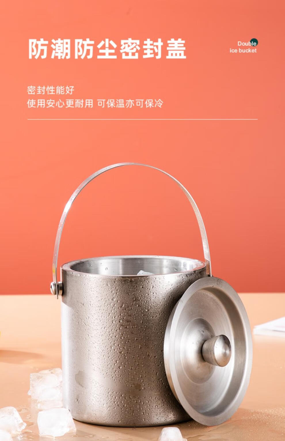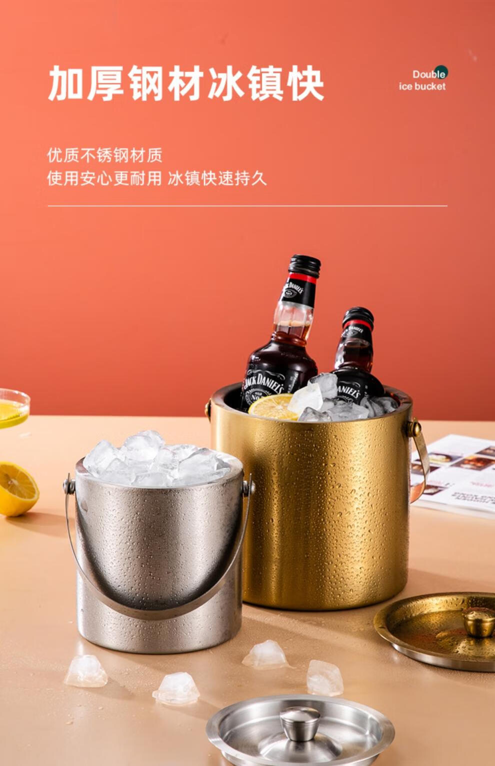 Modou Shenghuo Internet celebrity 304 stainless steel ice bucket ice bucket bar ktv commercial household small ice grain beer bucket storage bucket silver 304 stainless steel double-layer ice bucket 1 point 6L delivery clip