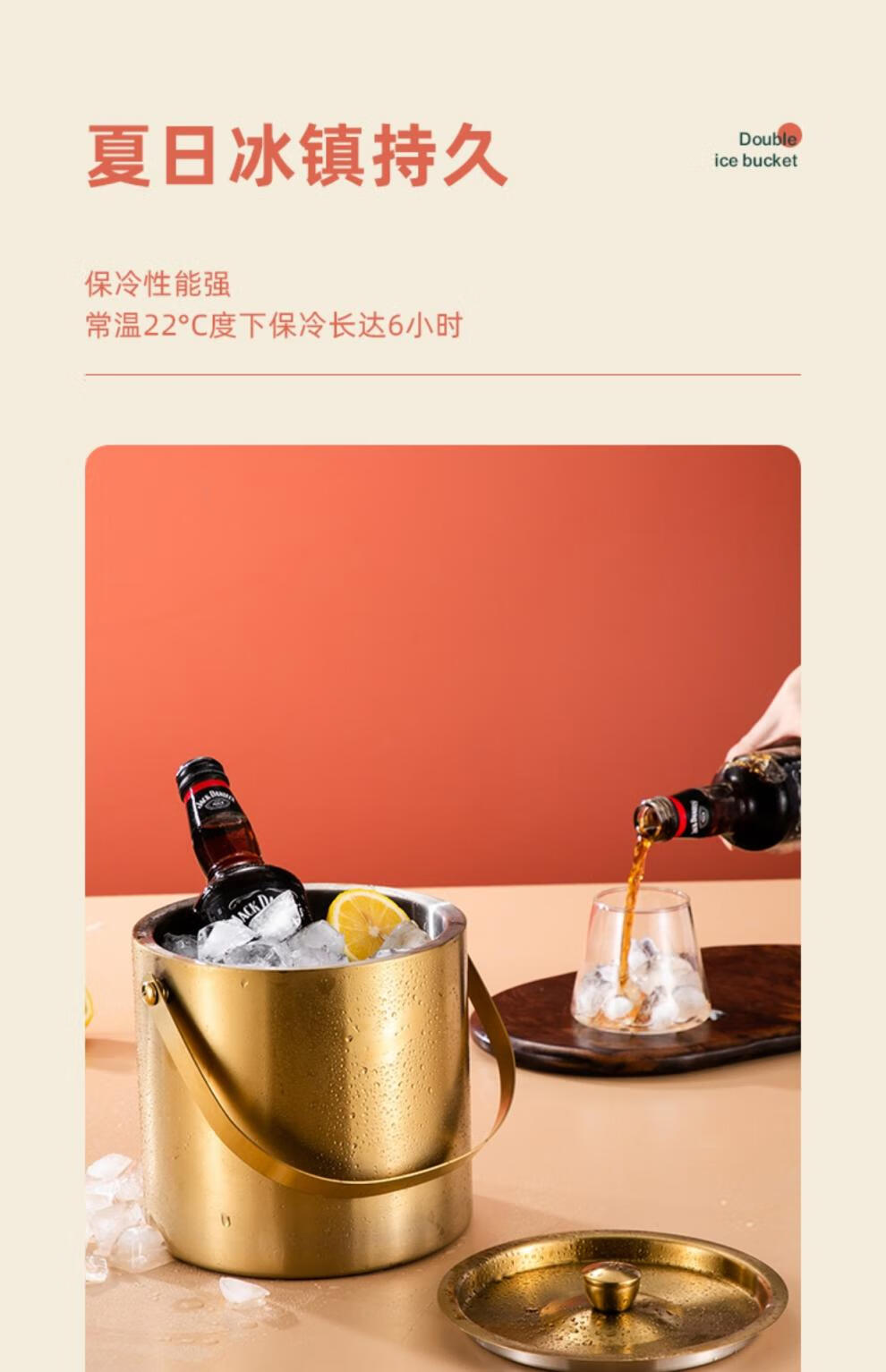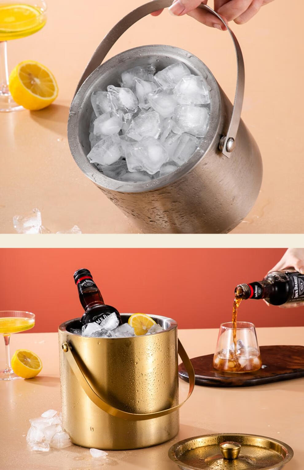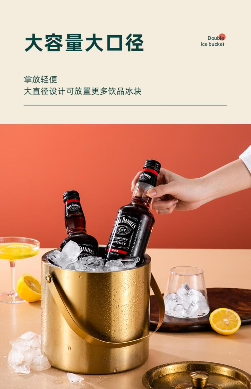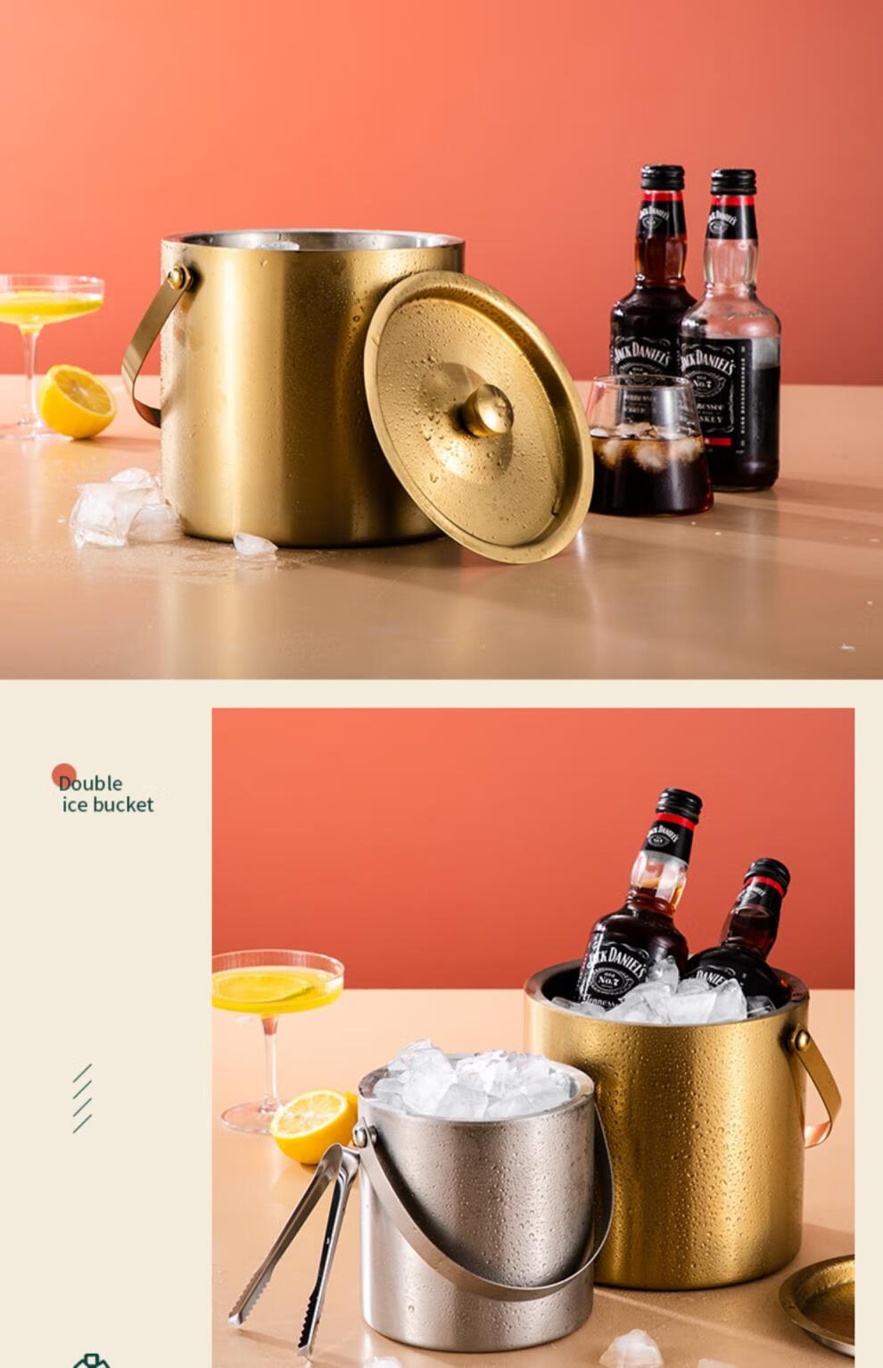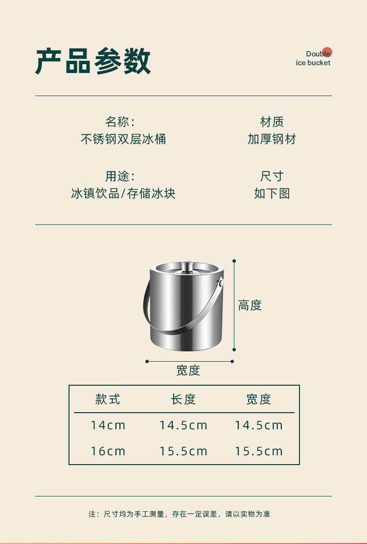 Modou Shenghuo Internet celebrity 304 stainless steel ice bucket ice bucket bar ktv commercial household small ice grain beer bucket storage bucket silver 304 stainless steel double-layer ice bucket 1 point 6L delivery clip