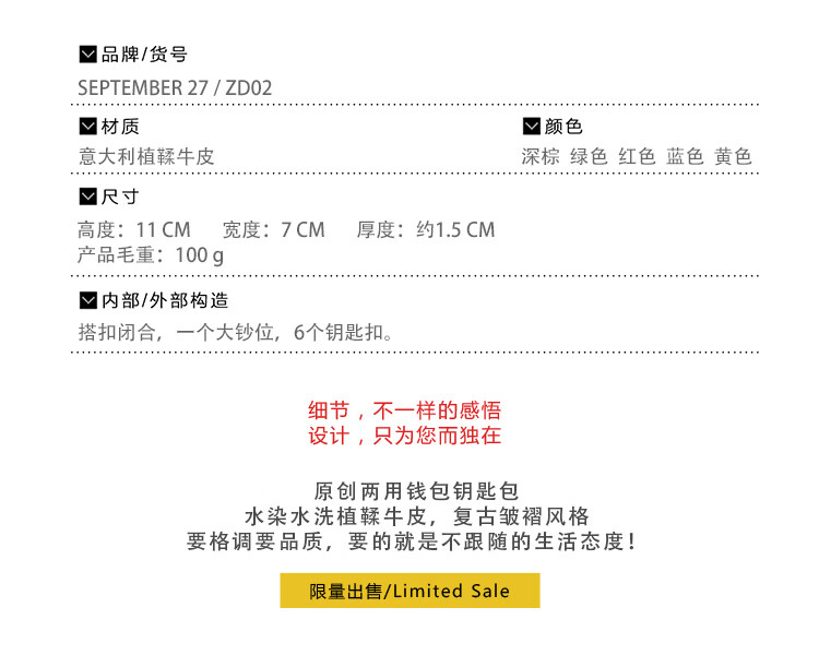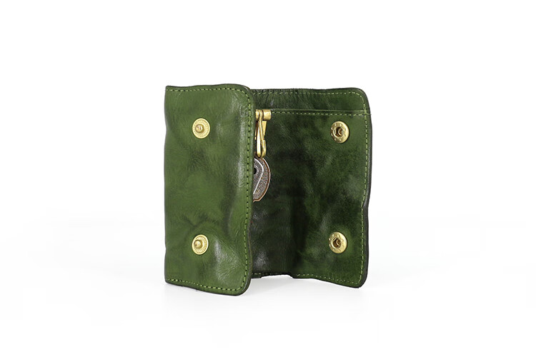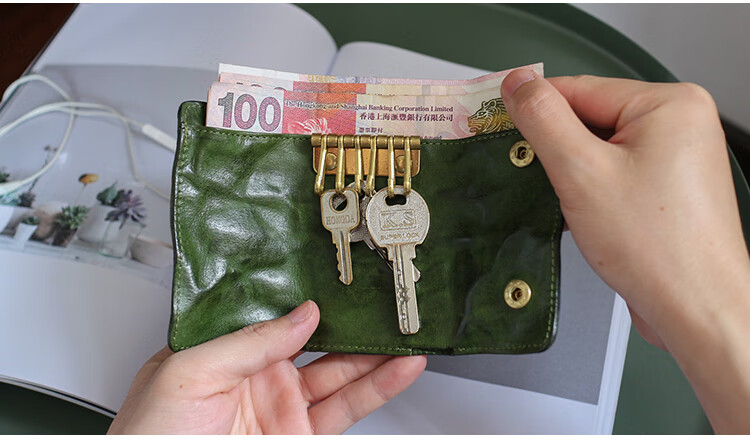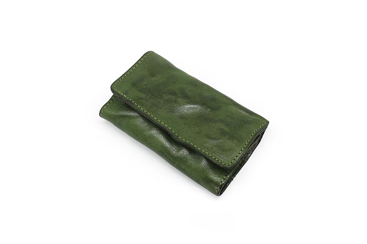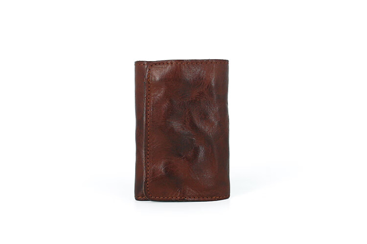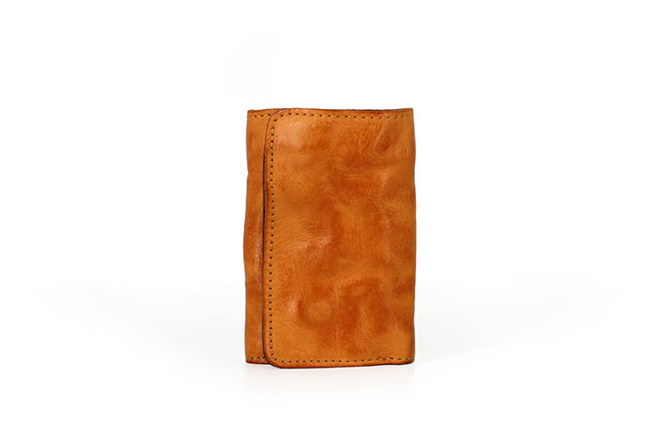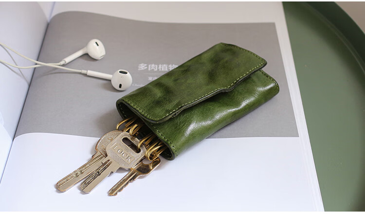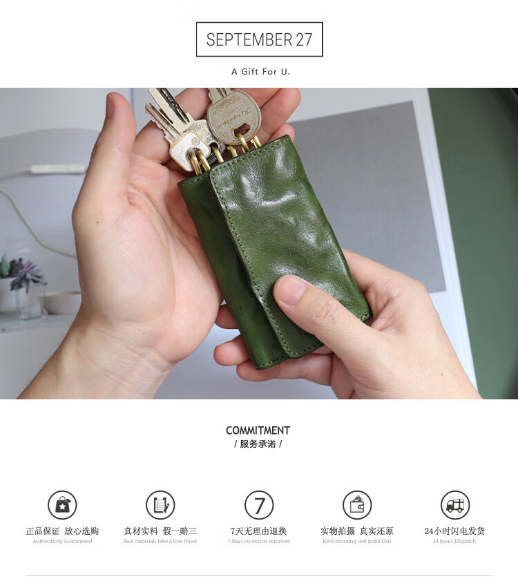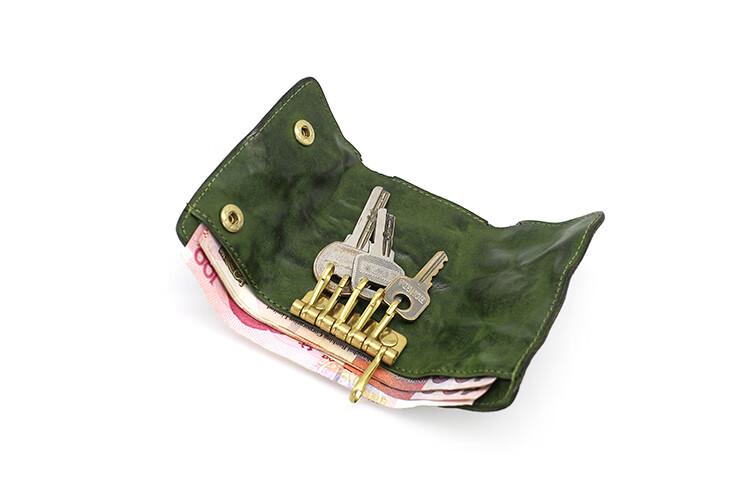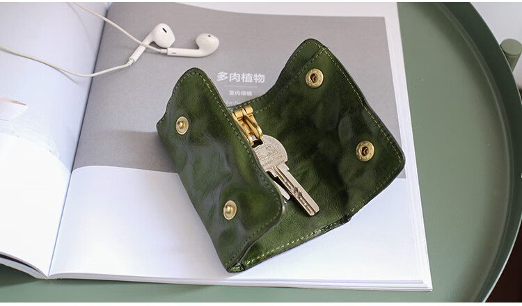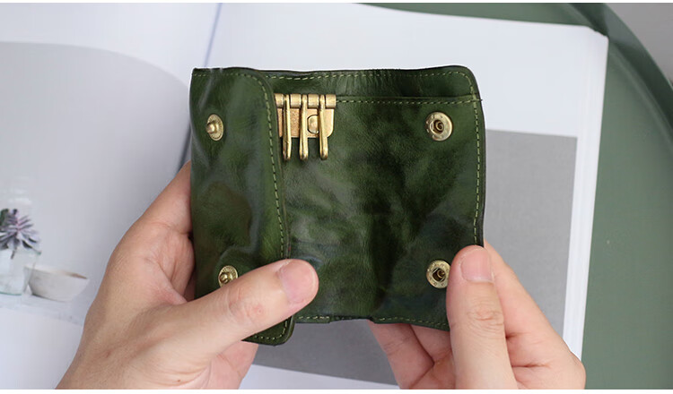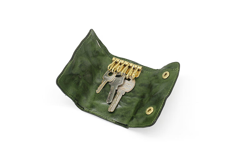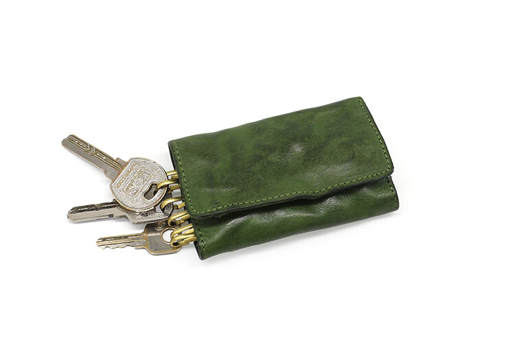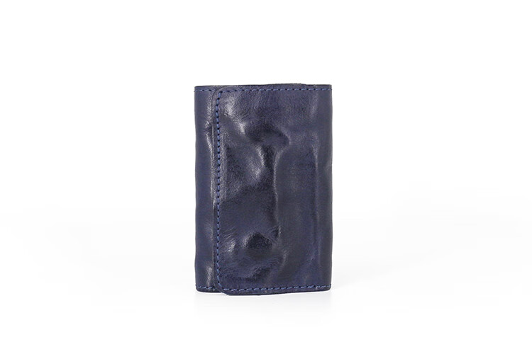 Japanese and Korean original vegetable tanned leather key bag men's retro wrinkled water-dyed first layer cowhide buckle coin purse women's key bag blue
