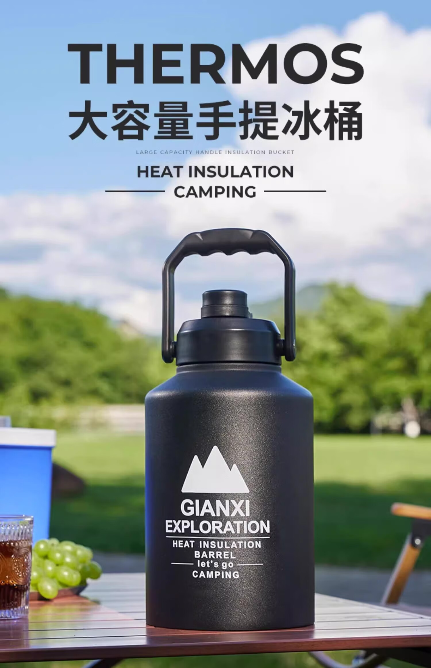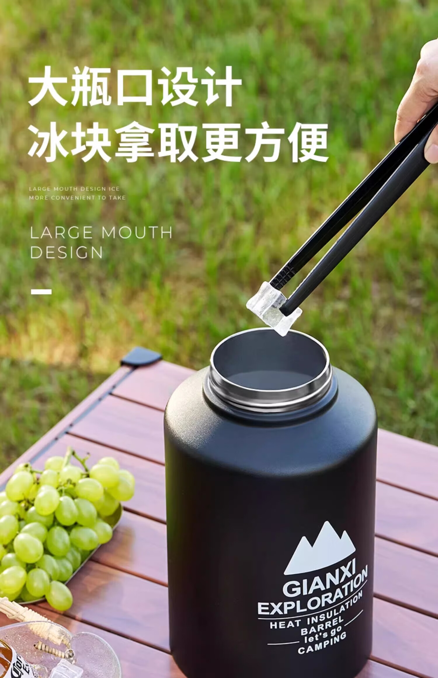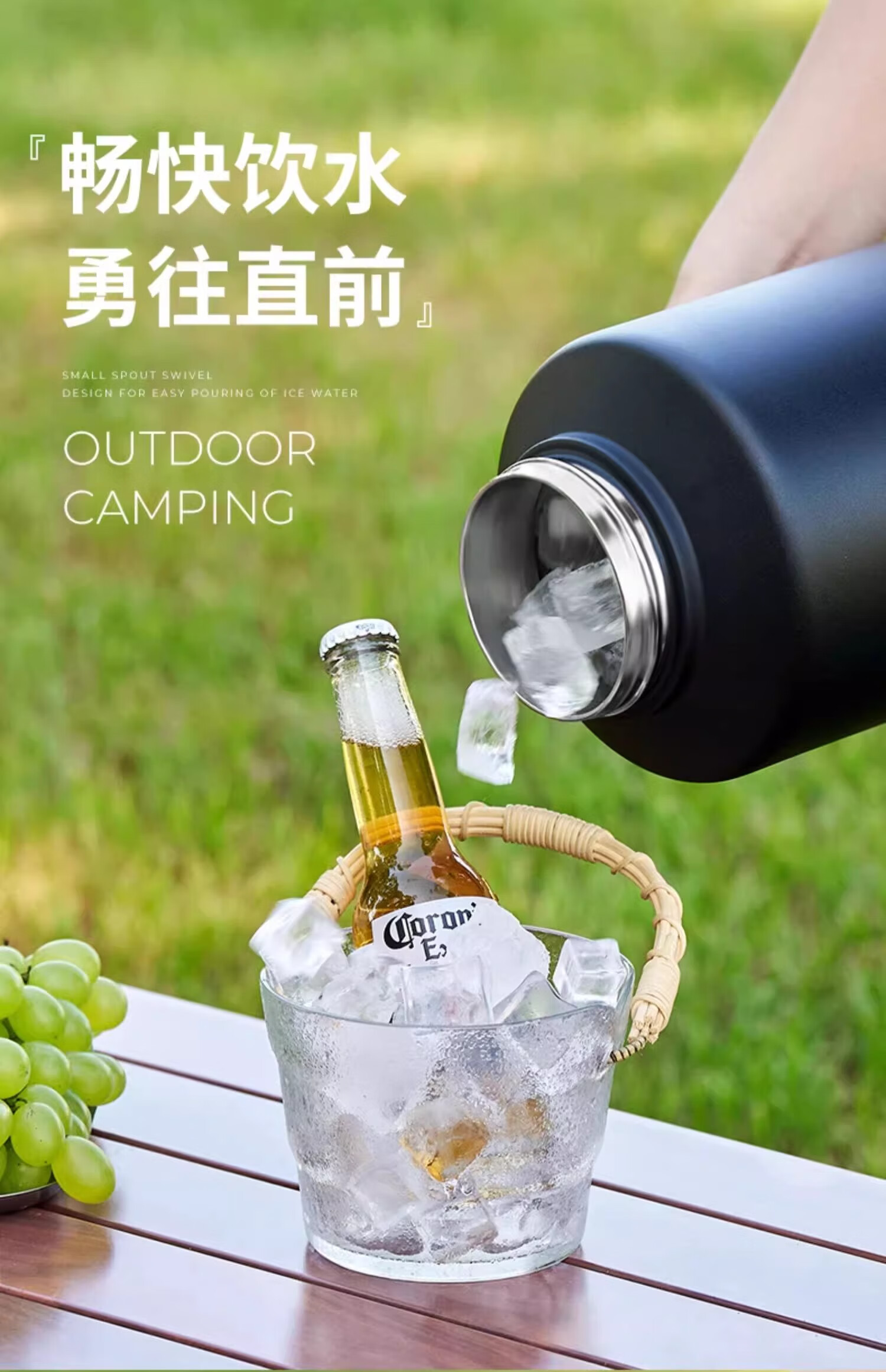 Ice bucket ice cube storage bucket outdoor Internet celebrity high-end insulation bucket stainless steel large capacity ice storage bucket simple black 2L-free ice clip