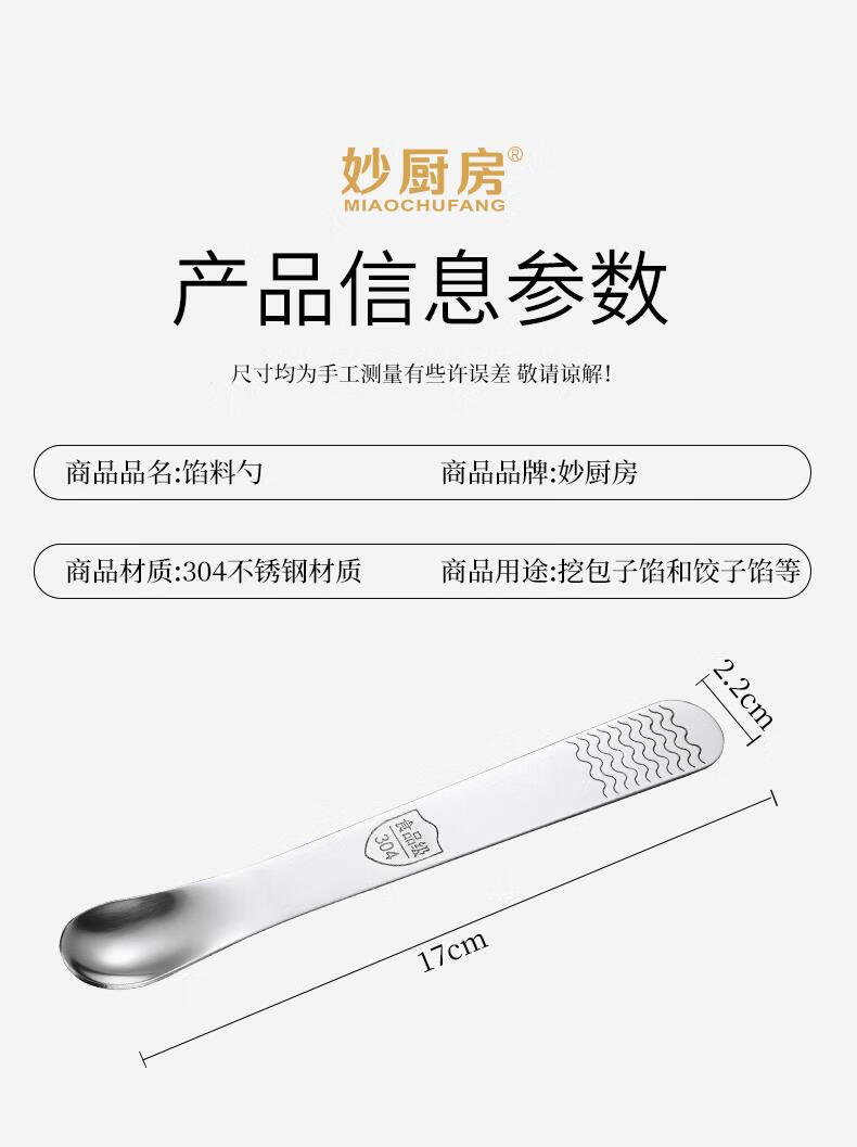 Mai Shute 304 stainless steel dumpling filling spoon, wonton and wonton filling mixing spoon, household stuffing spoon for making buns, upgraded spoon, 3 pieces