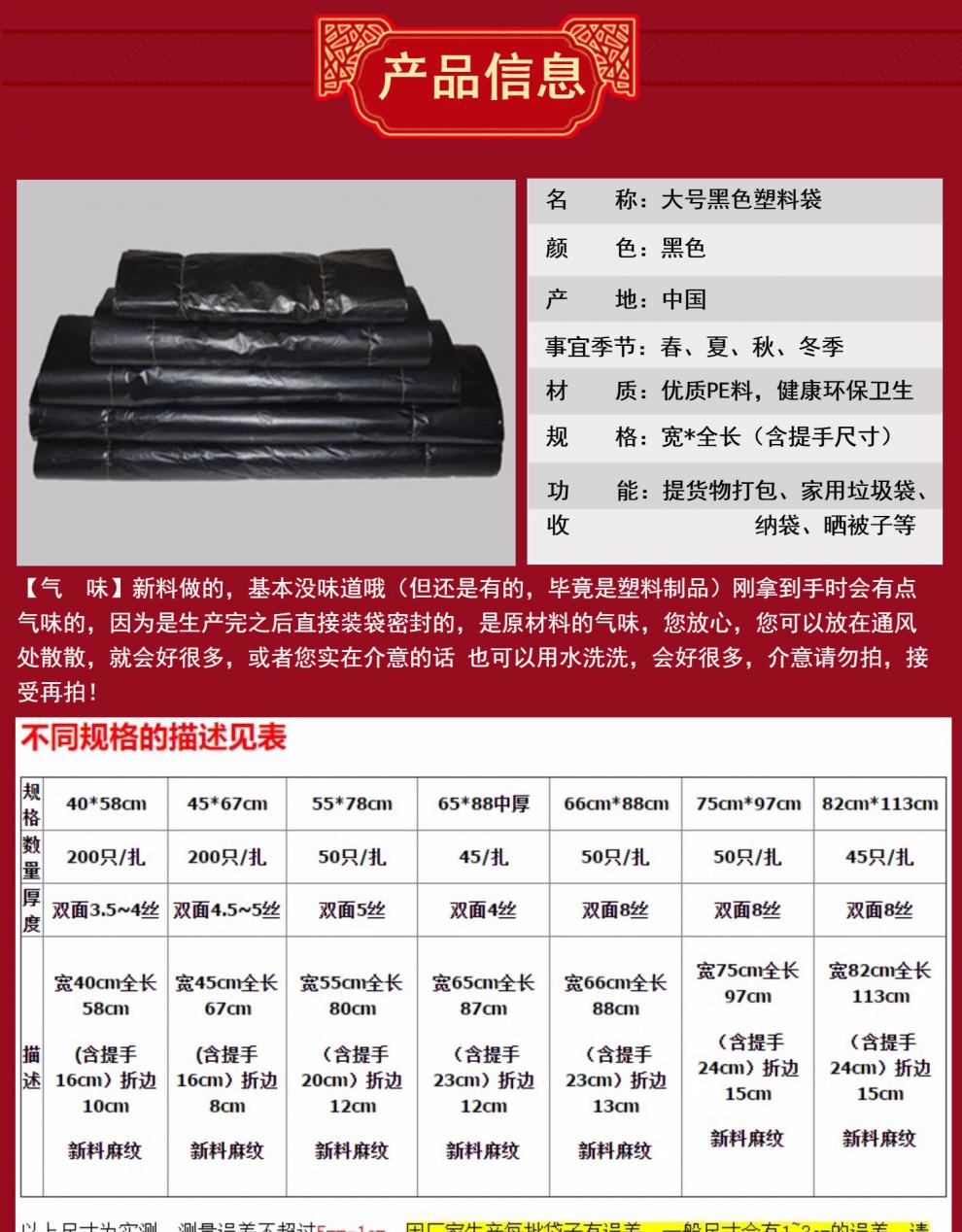 RSRDDY large black plastic bag thickened vest bag clothing packing moving bag 1 45 pieces 75*97 thickened large
