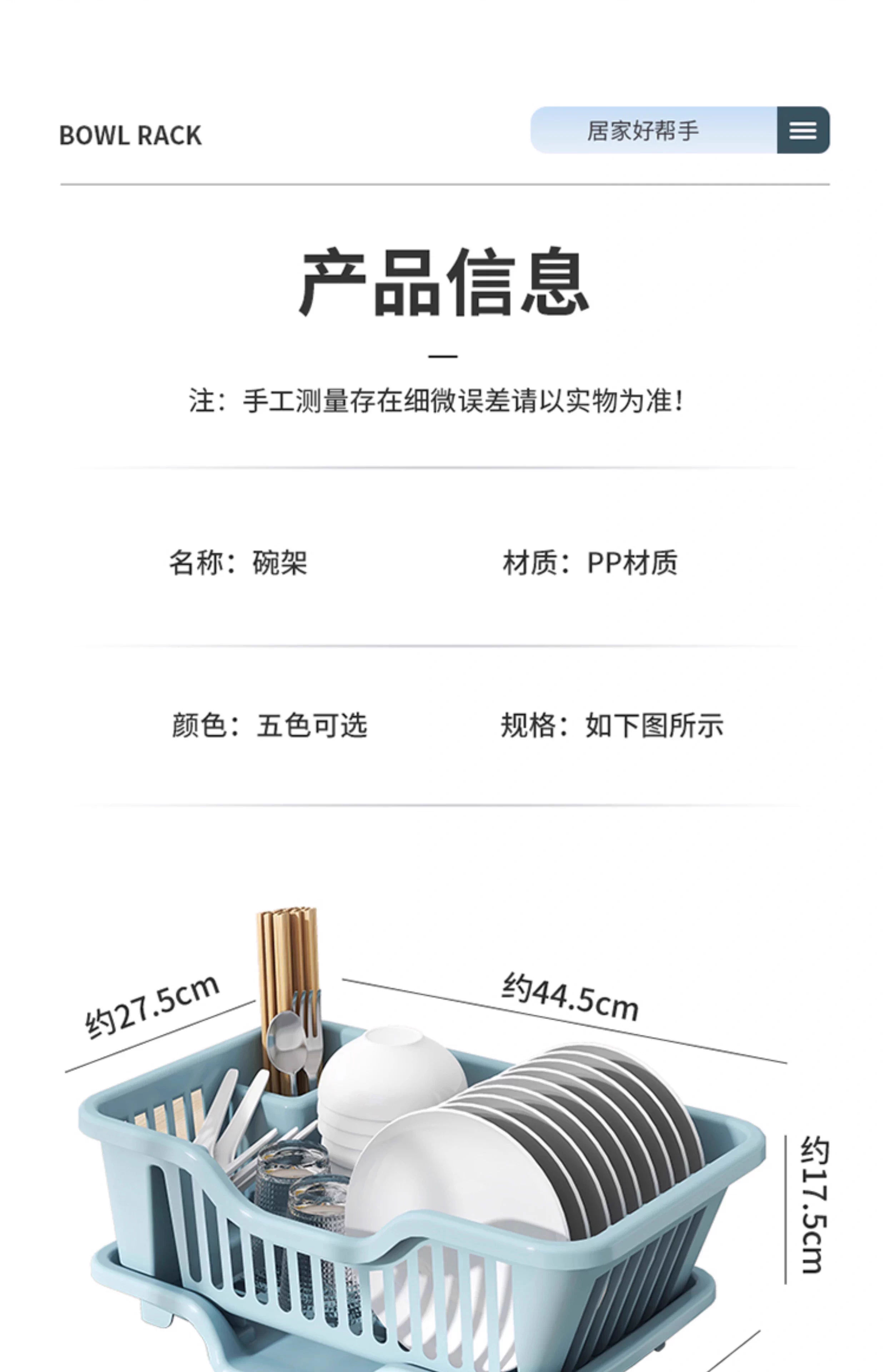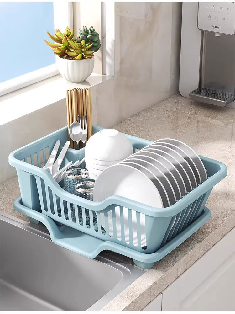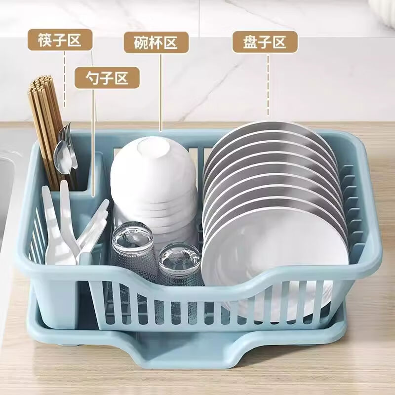 Yusenyi drain basket dish rack dish kitchen storage rack household countertop cupboard dishware storage sink tableware storage rack thickened version - blue quick-drying drain