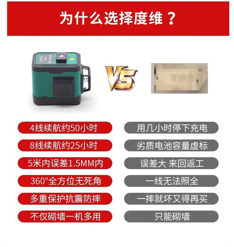 Aoyanlai ultra-bright line fine level strong light new green light ultraviolet wall-laying and tiling artifact ultra-long standby W2-360RG green light 8 lines-45cm card-4 batteries