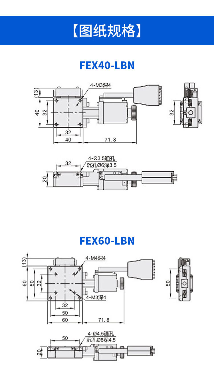 FEX40/60/80/100/120 displacement platform X-axis electric precision fine-tuning slide optical experimental workbench FEX6020-LBN