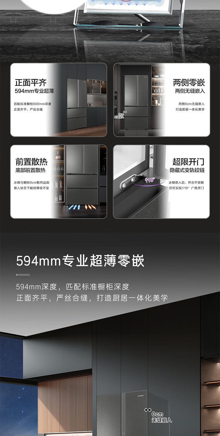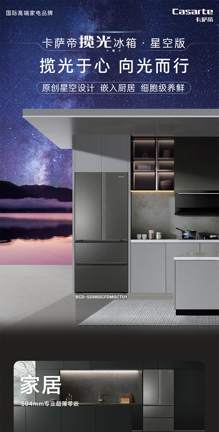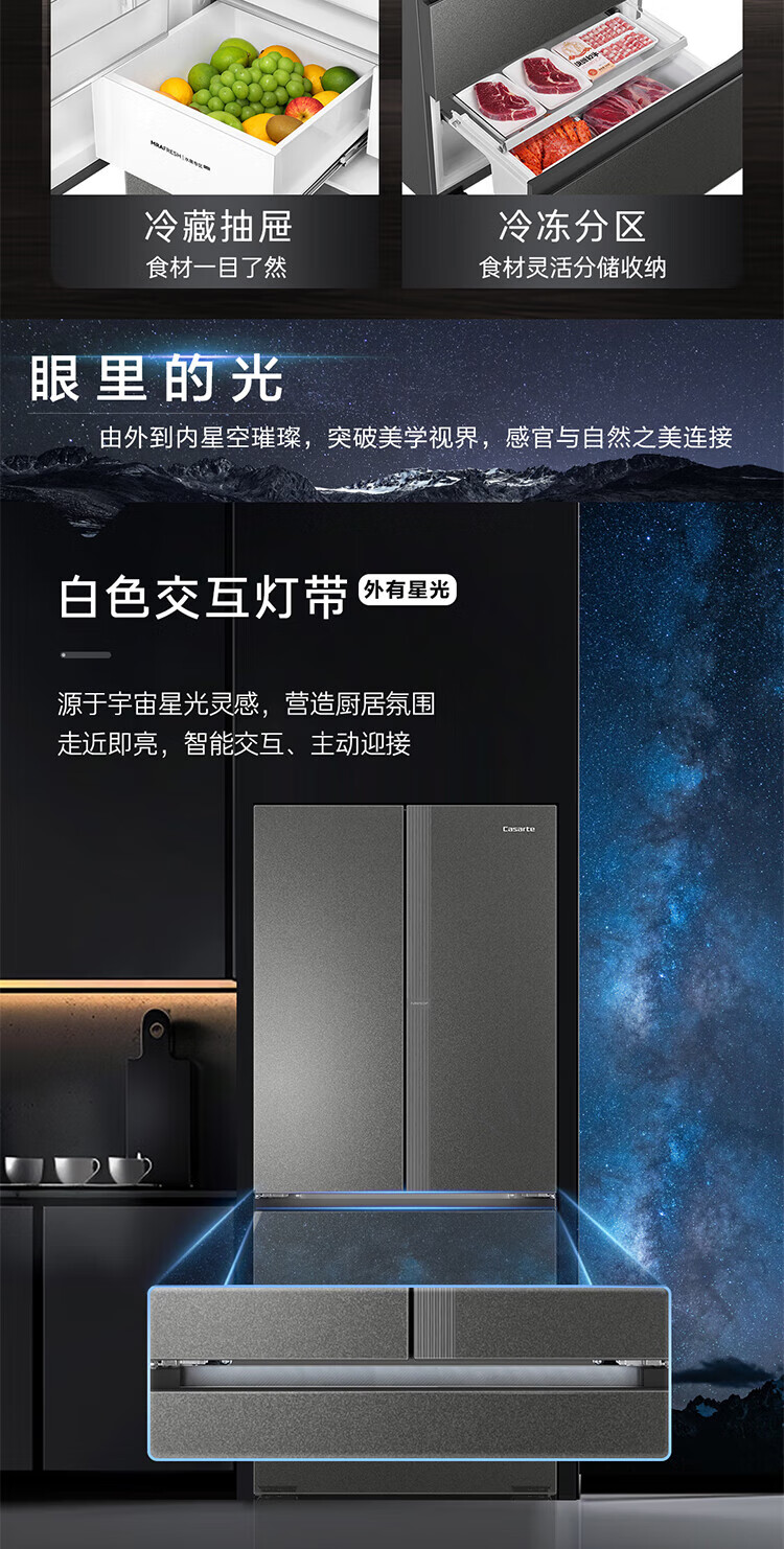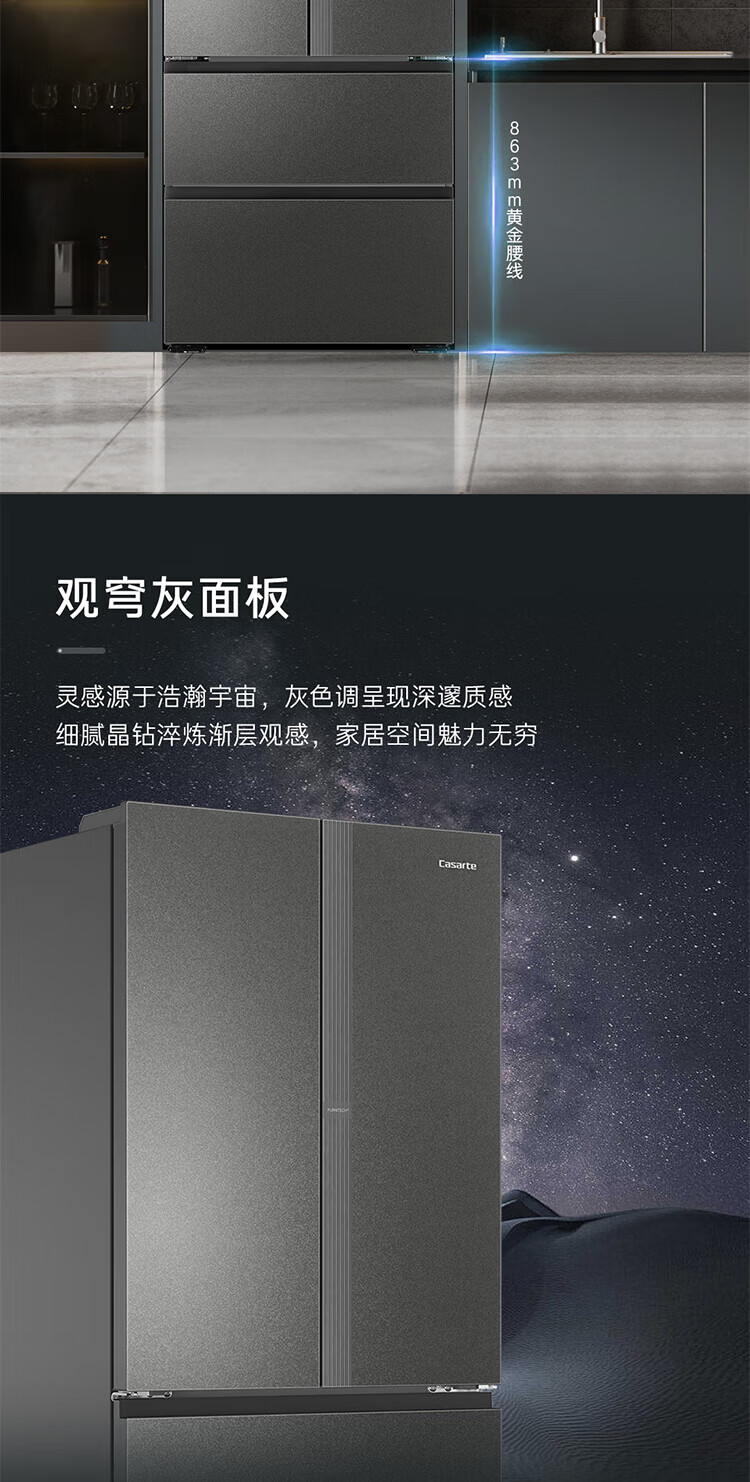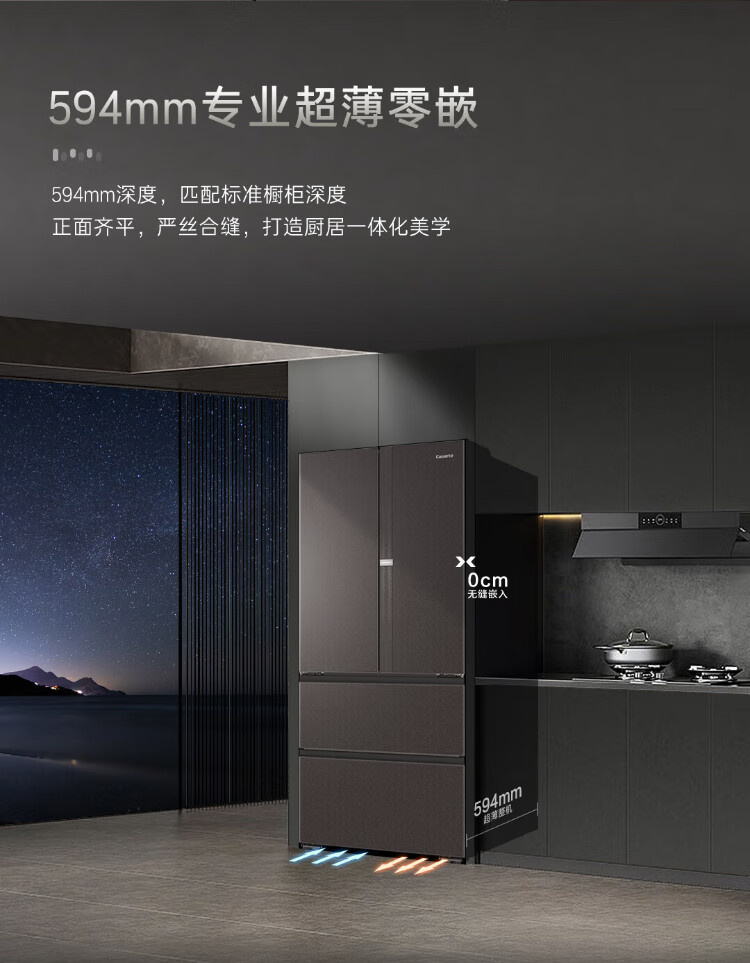 Casarte national subsidy zero embedded refrigerator household multi-door French four-door air-cooled frost-free household frequency conversion energy-saving 594mm ultra-thin bottom front cooling new F+ five-door automatic ice machine 520L