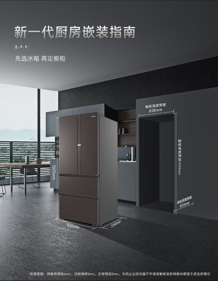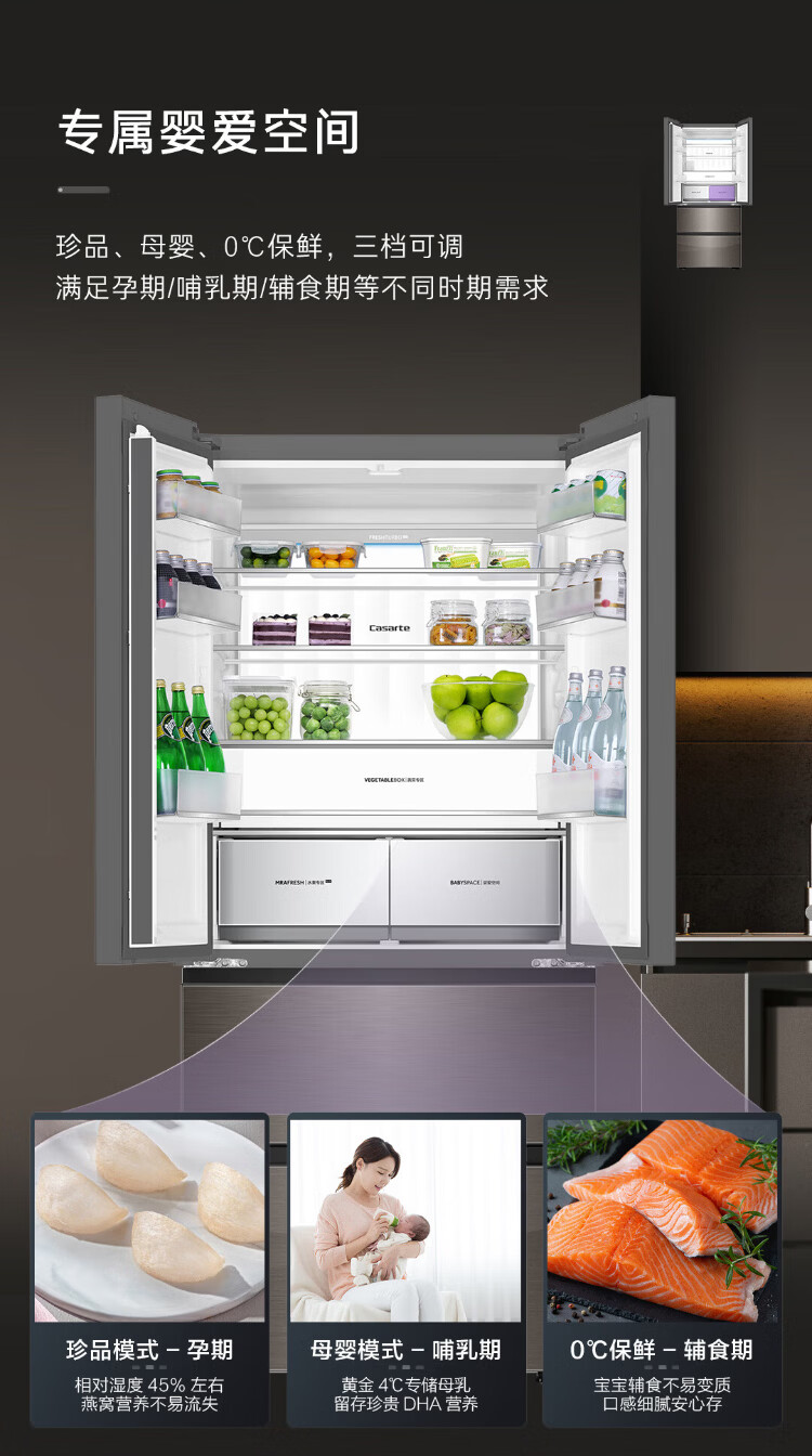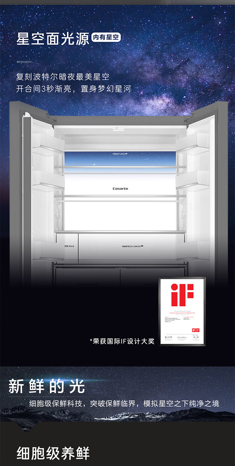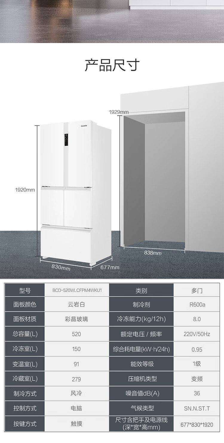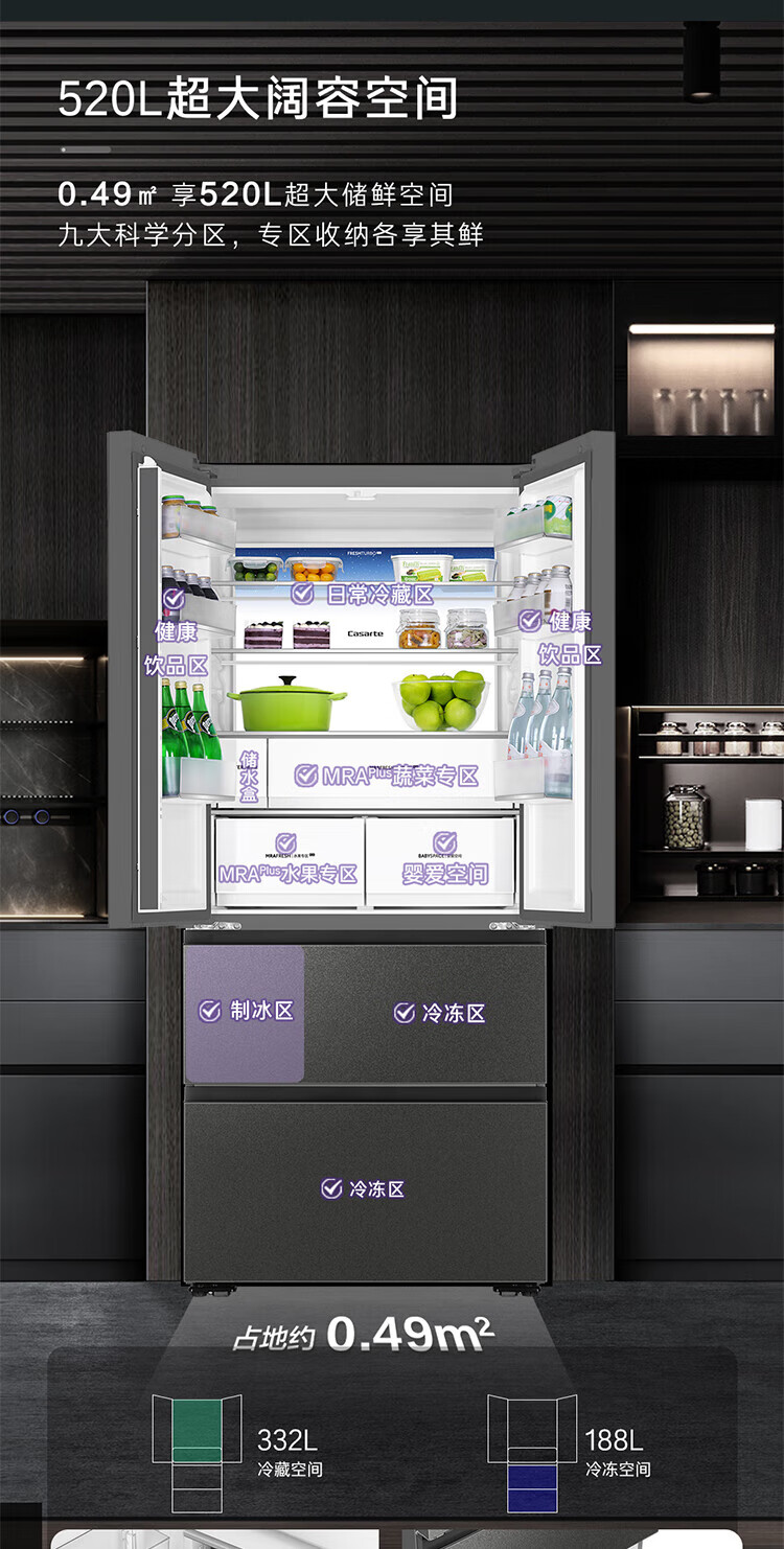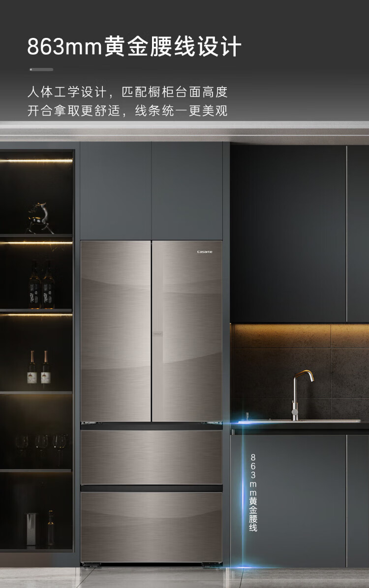 Casarte national subsidy zero embedded refrigerator household multi-door French four-door air-cooled frost-free household frequency conversion energy-saving 594mm ultra-thin bottom front cooling new F+ five-door automatic ice machine 520L