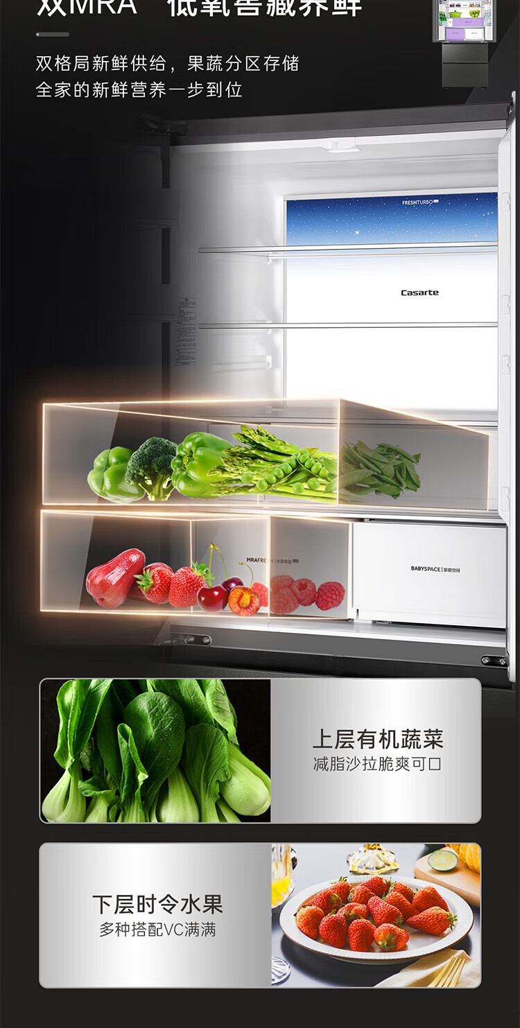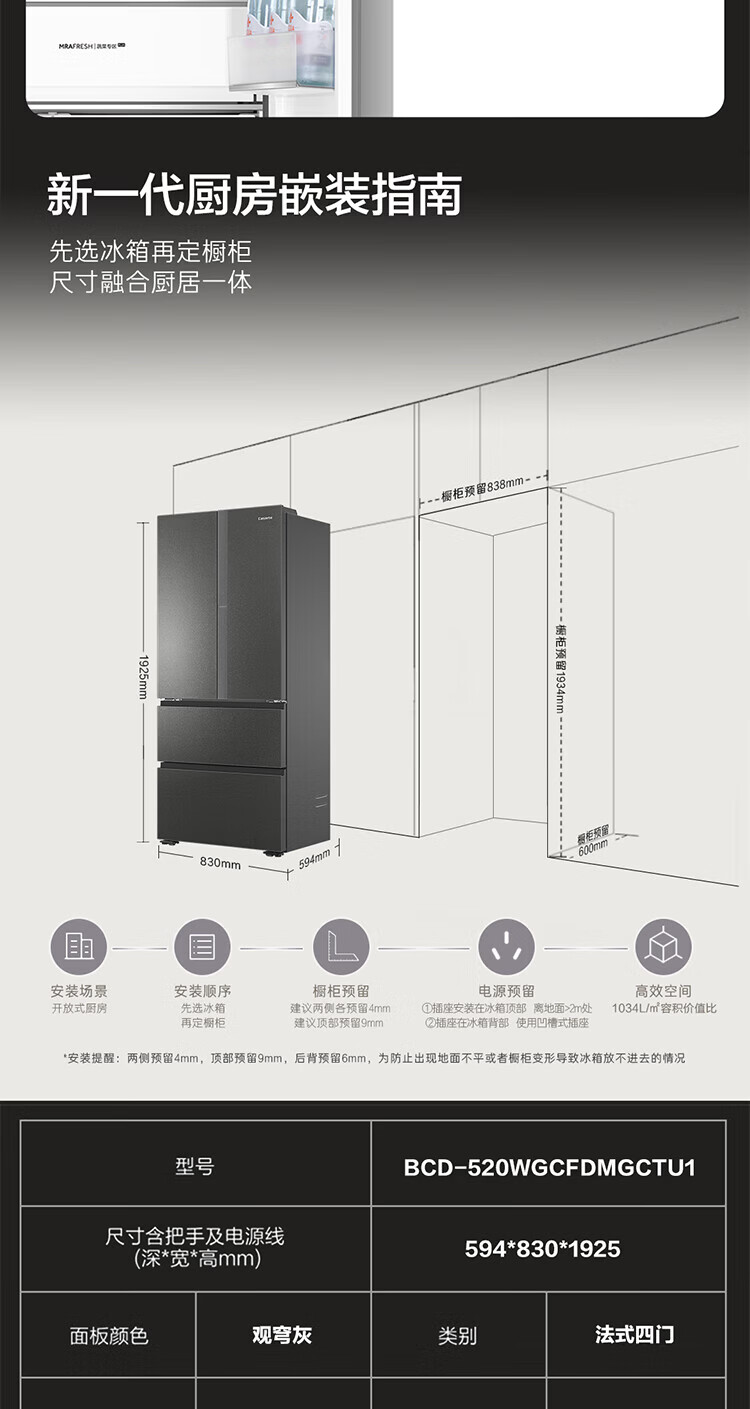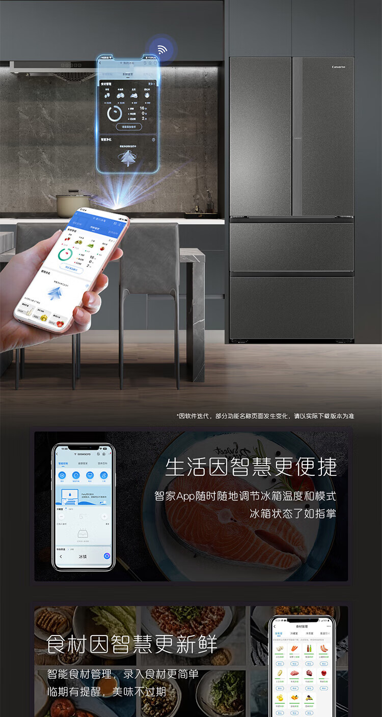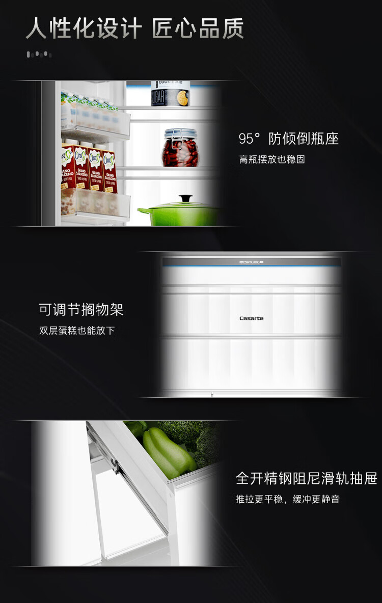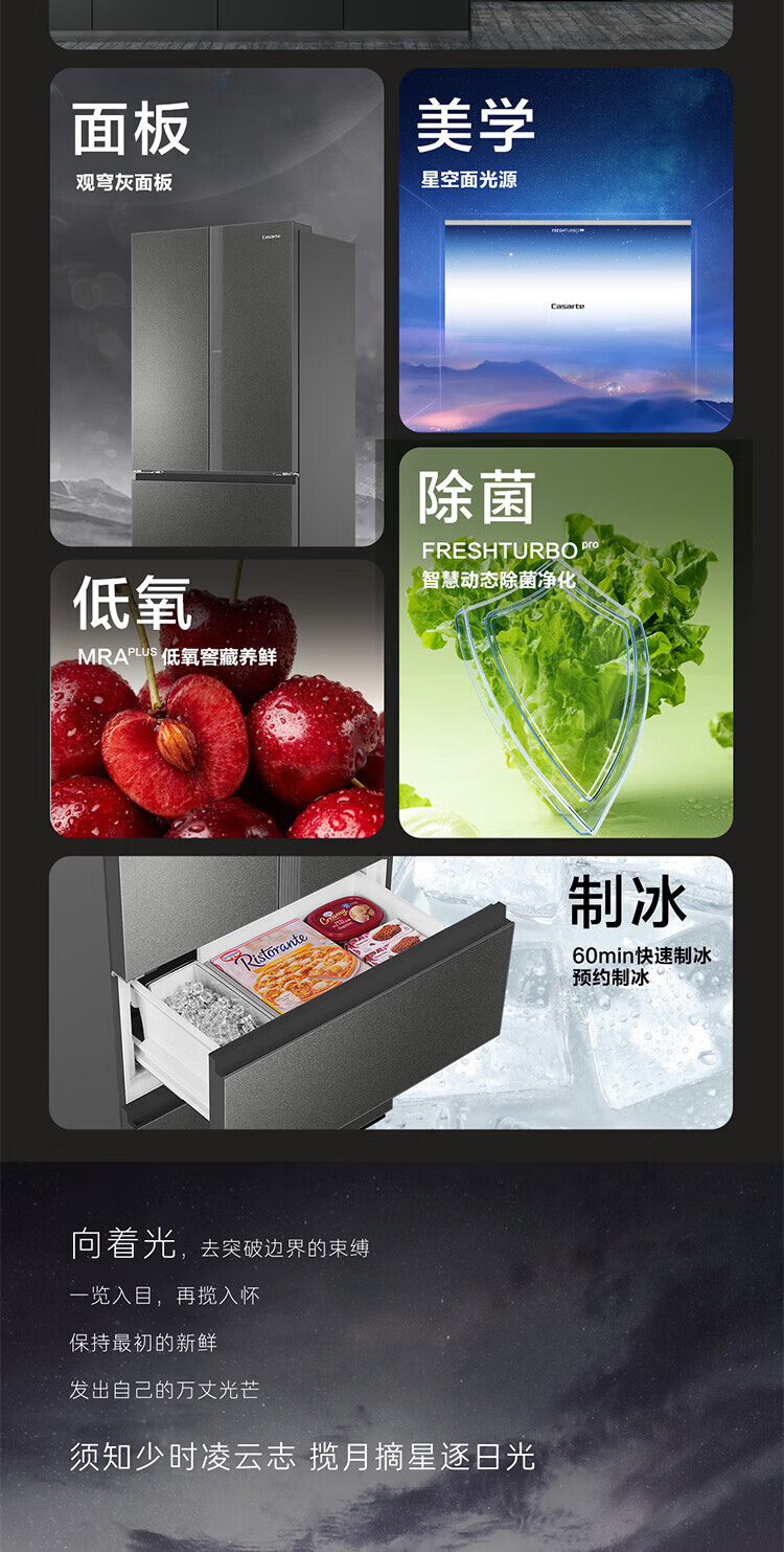 Casarte national subsidy zero embedded refrigerator household multi-door French four-door air-cooled frost-free household frequency conversion energy-saving 594mm ultra-thin bottom front cooling new F+ five-door automatic ice machine 520L