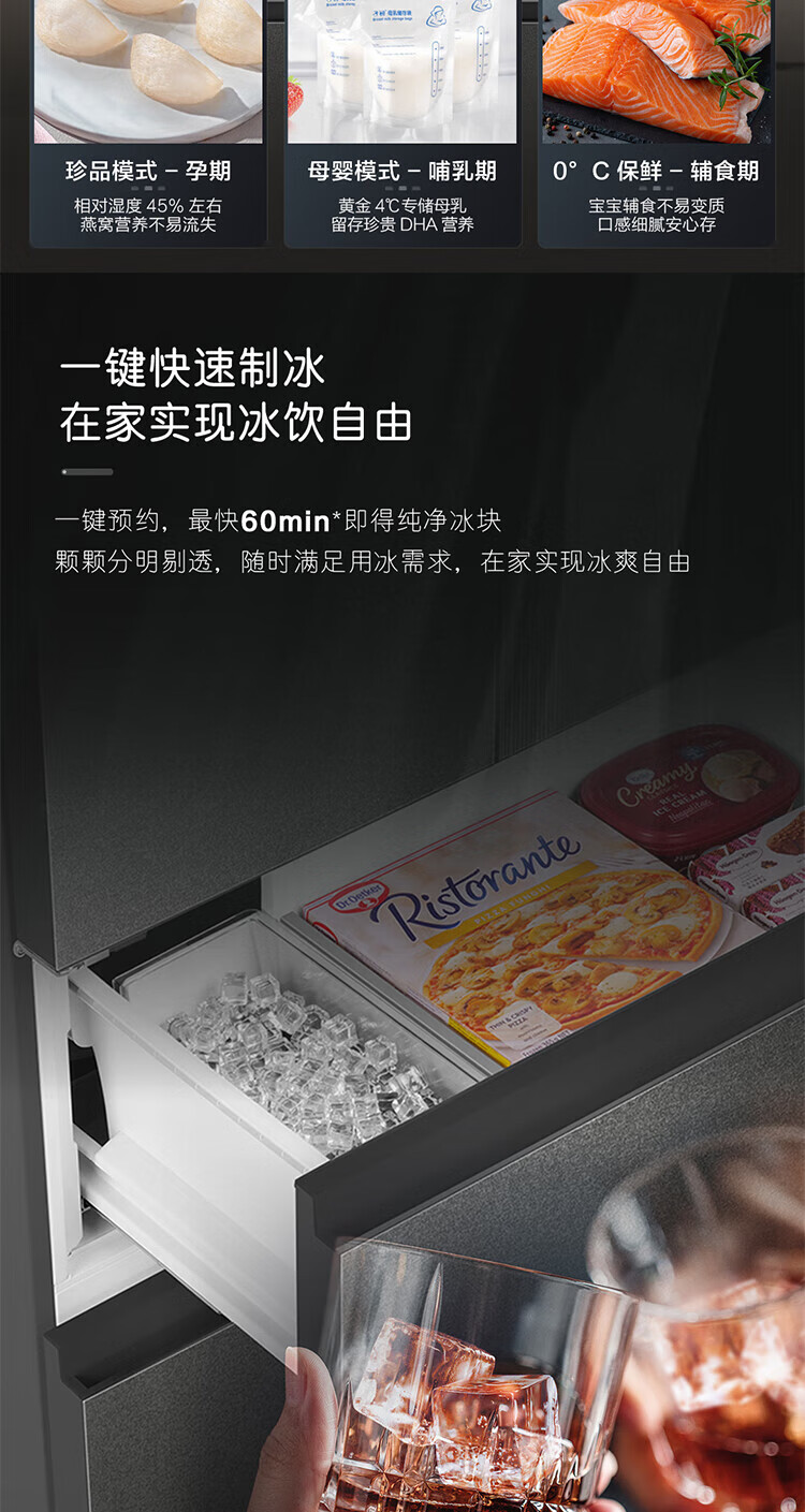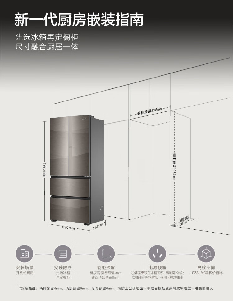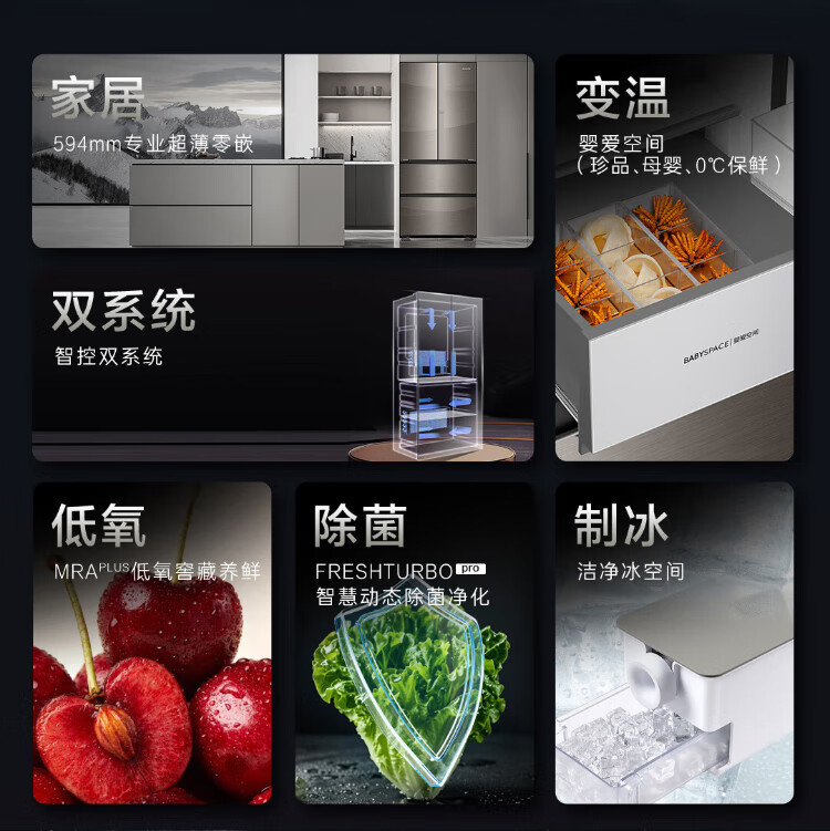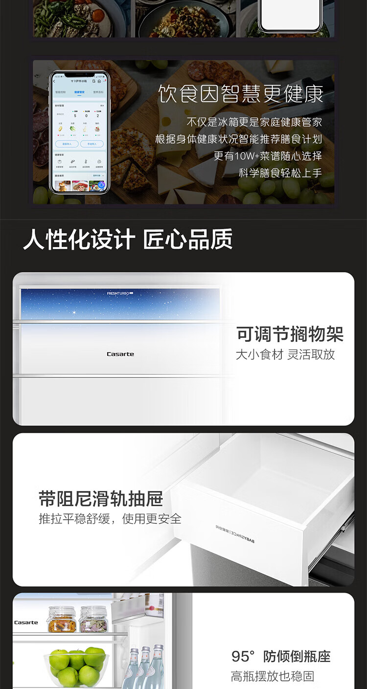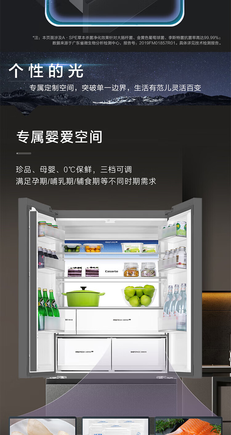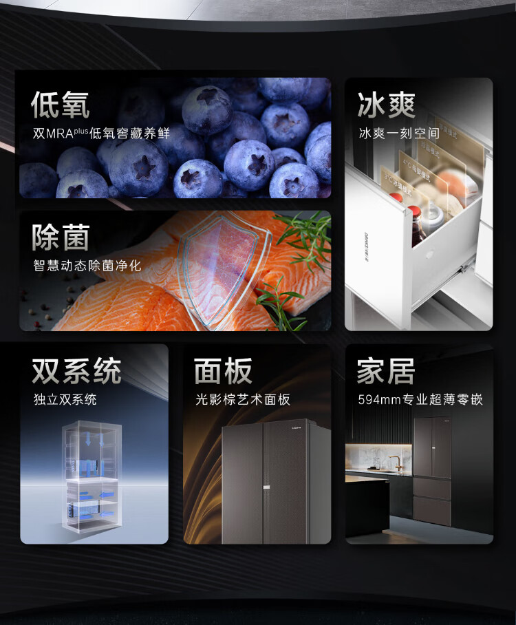 Casarte national subsidy zero embedded refrigerator household multi-door French four-door air-cooled frost-free household frequency conversion energy-saving 594mm ultra-thin bottom front cooling new F+ five-door automatic ice machine 520L