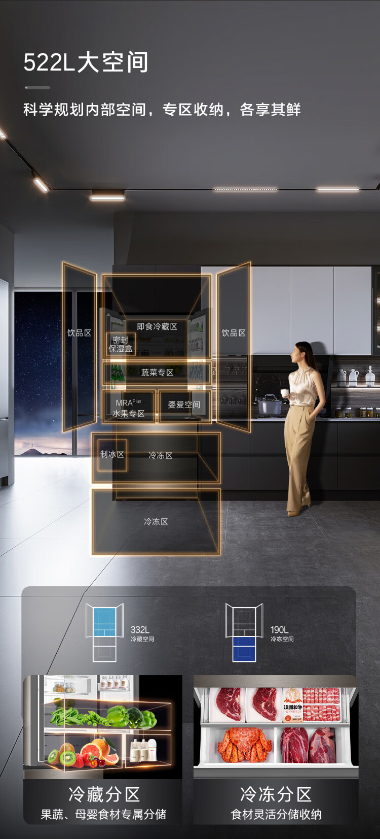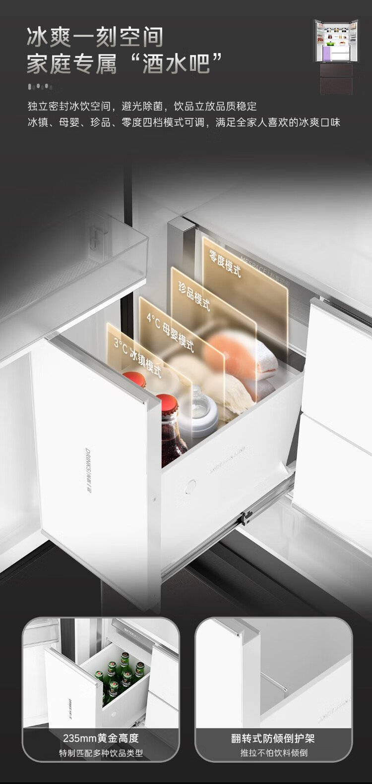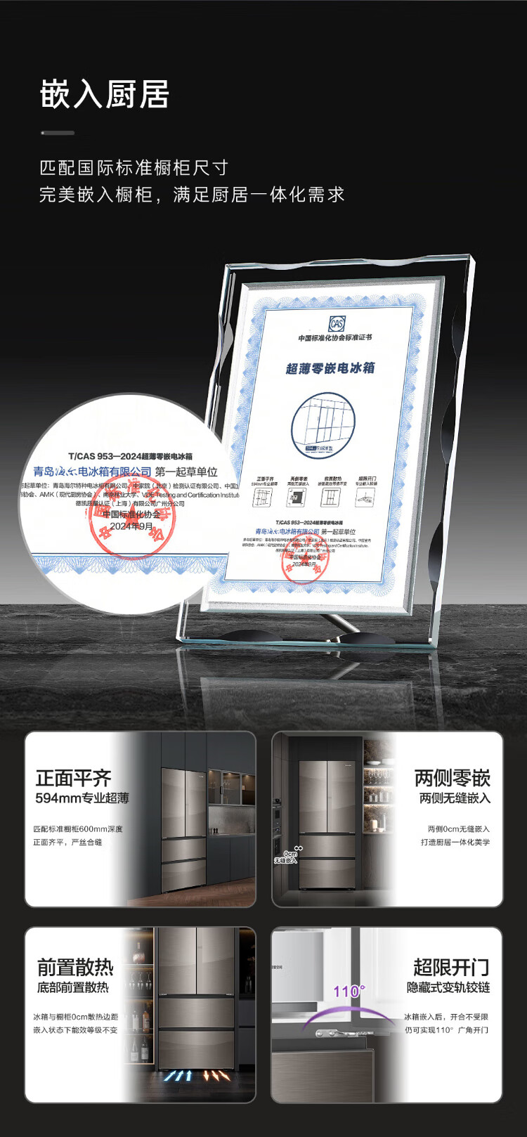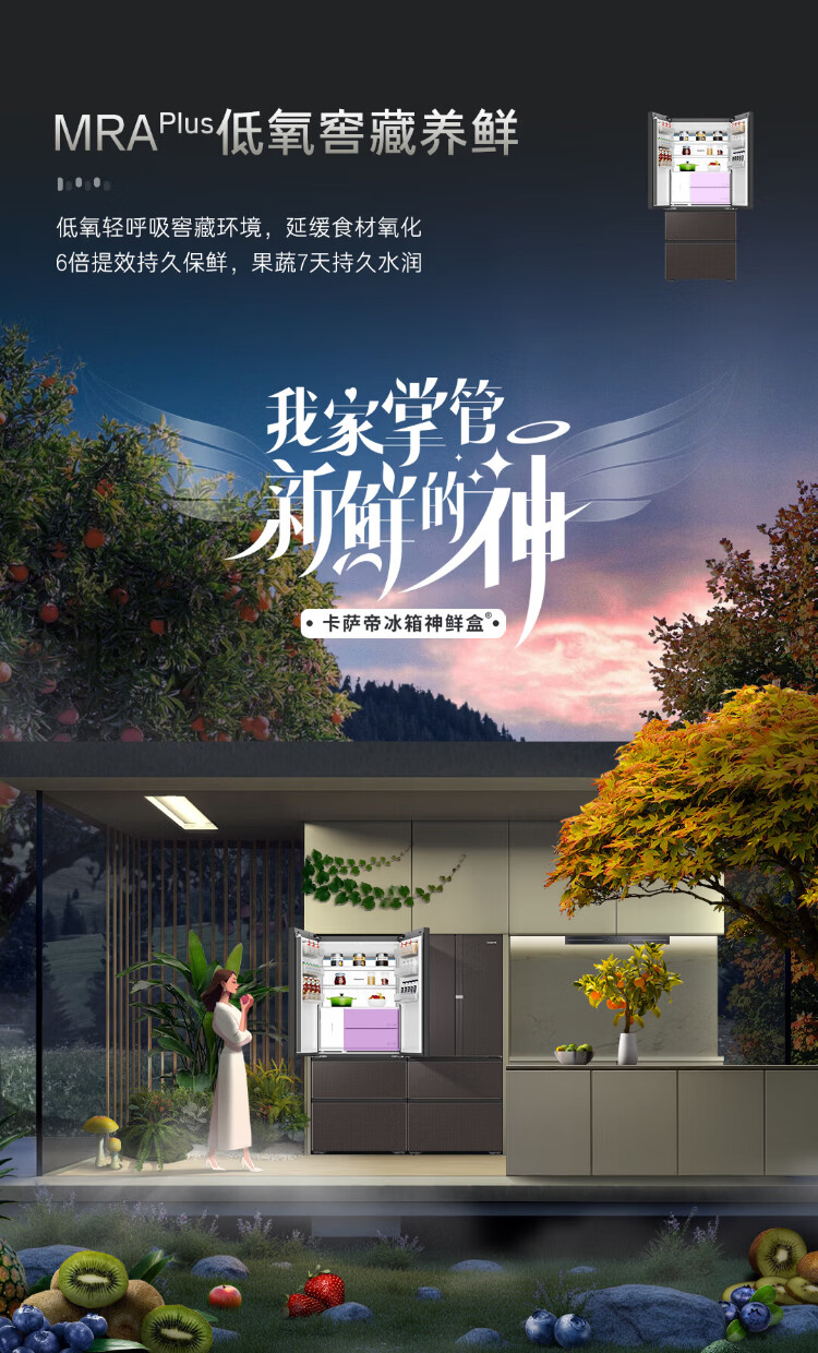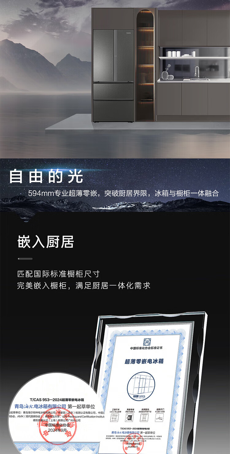 Casarte national subsidy zero embedded refrigerator household multi-door French four-door air-cooled frost-free household frequency conversion energy-saving 594mm ultra-thin bottom front cooling new F+ five-door automatic ice machine 520L