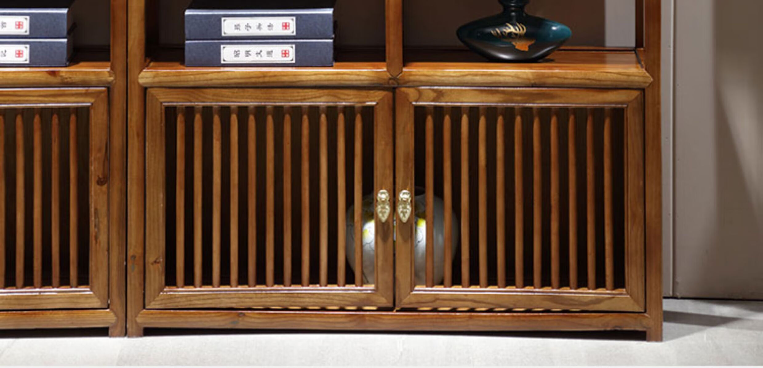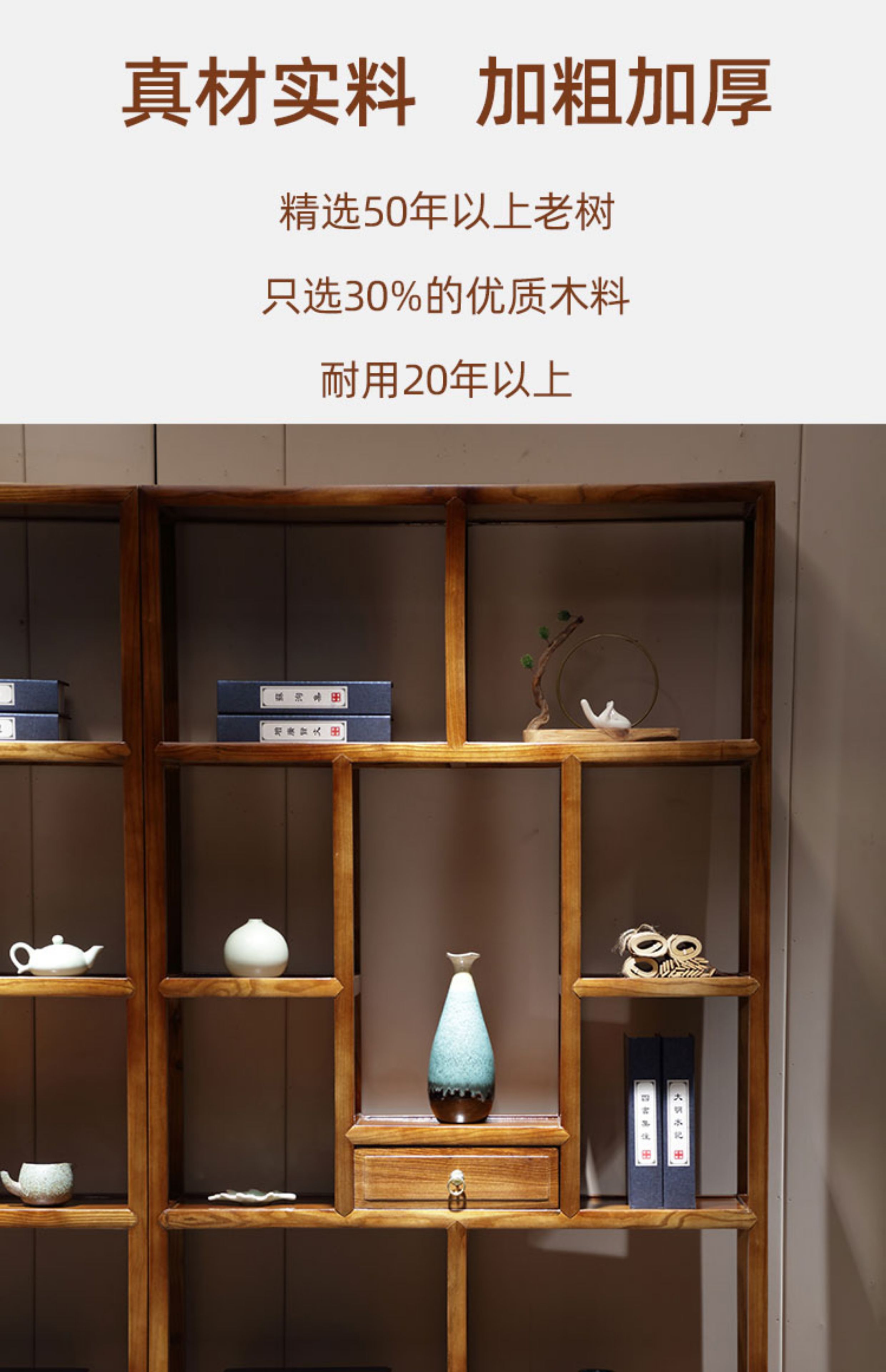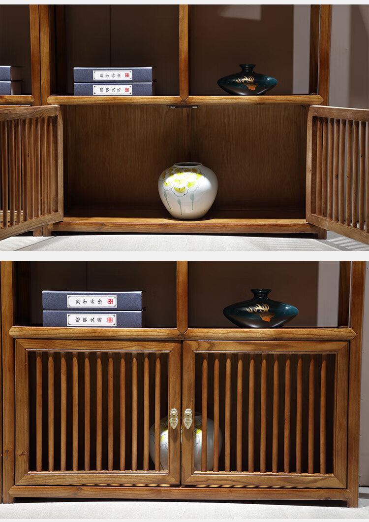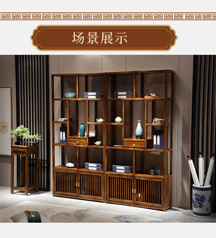 Bogu rack Chinese solid wood living room partition elm Duobao Pavilion display cabinet antique tea shelf antique bookcase walnut color medium drawing all solid wood a pair of Bogu rack