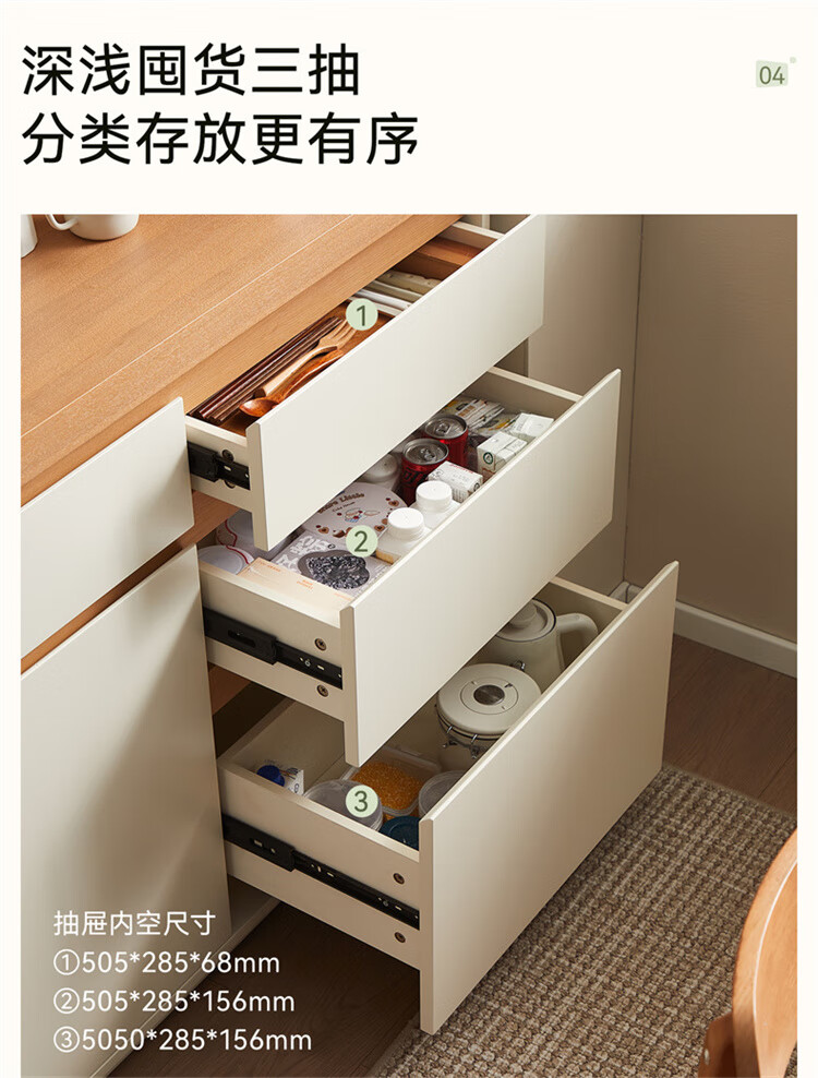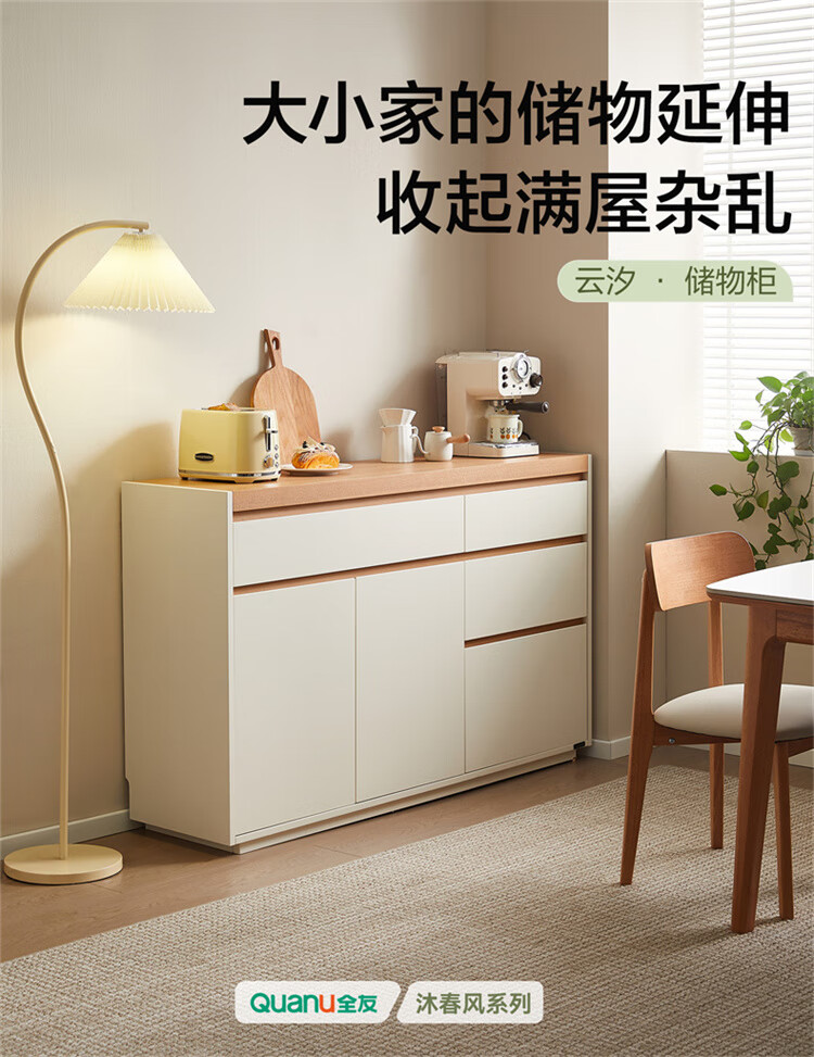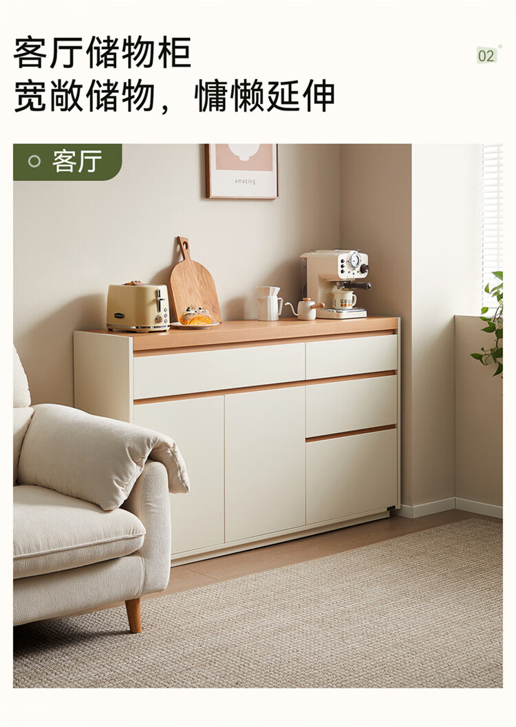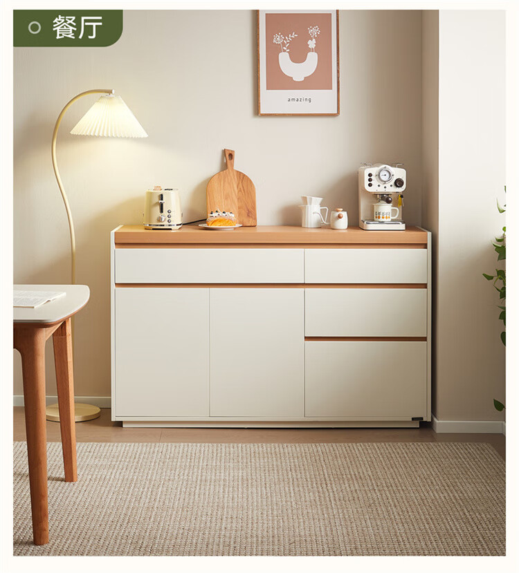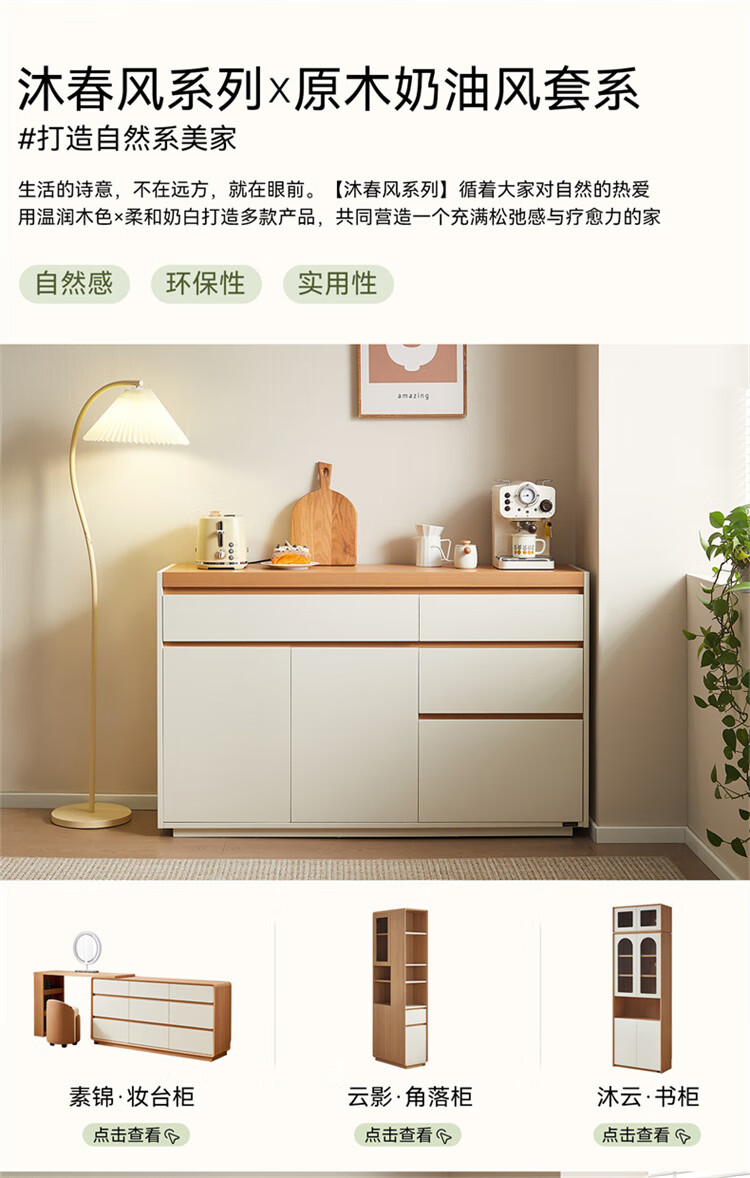 Quanyou Home Furnishing Log Cream Style Sideboard Home Storage Storage Cabinet Operating Desk Cabinet One-In-One Cabinet Cream White + Log Color Sideboard