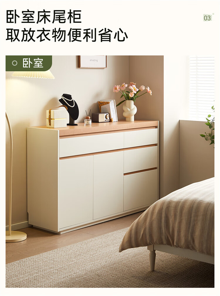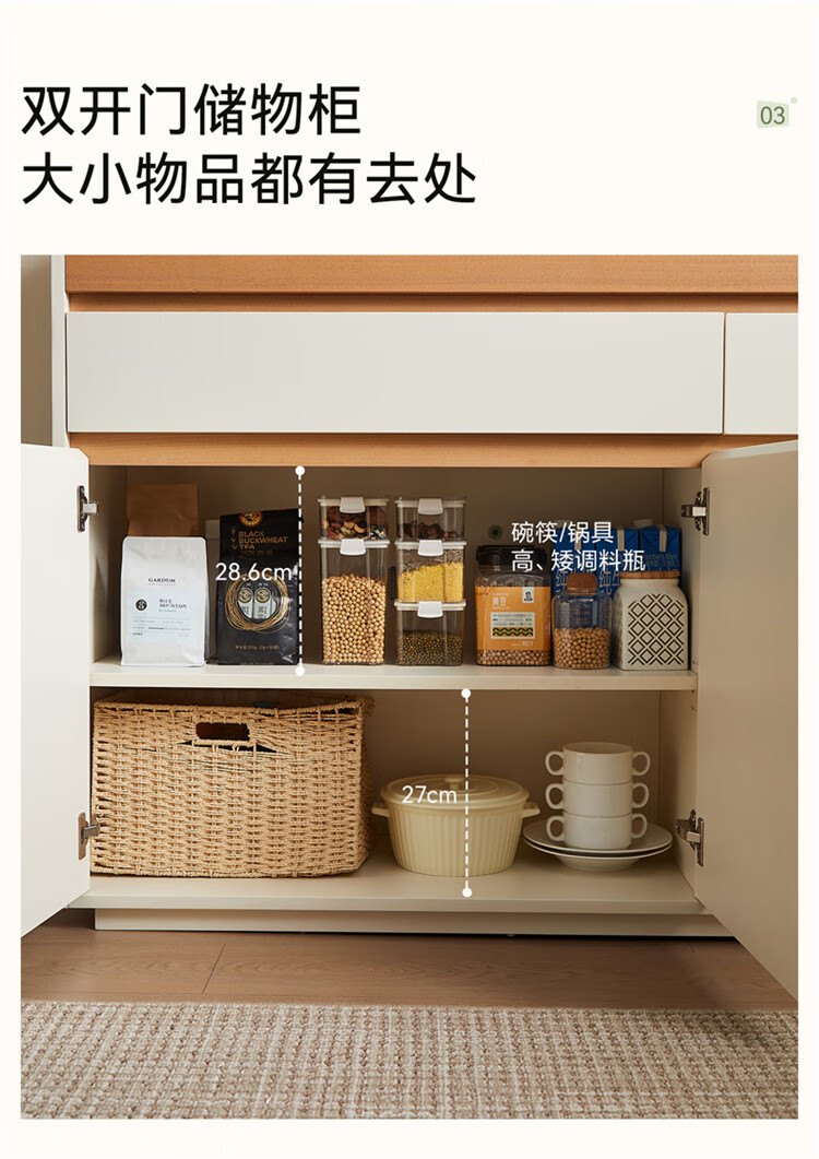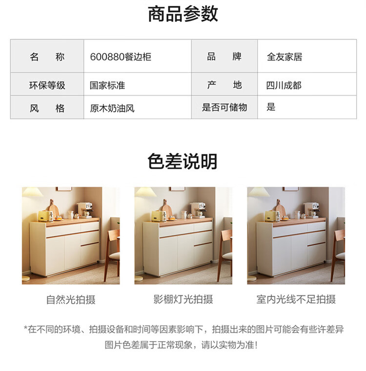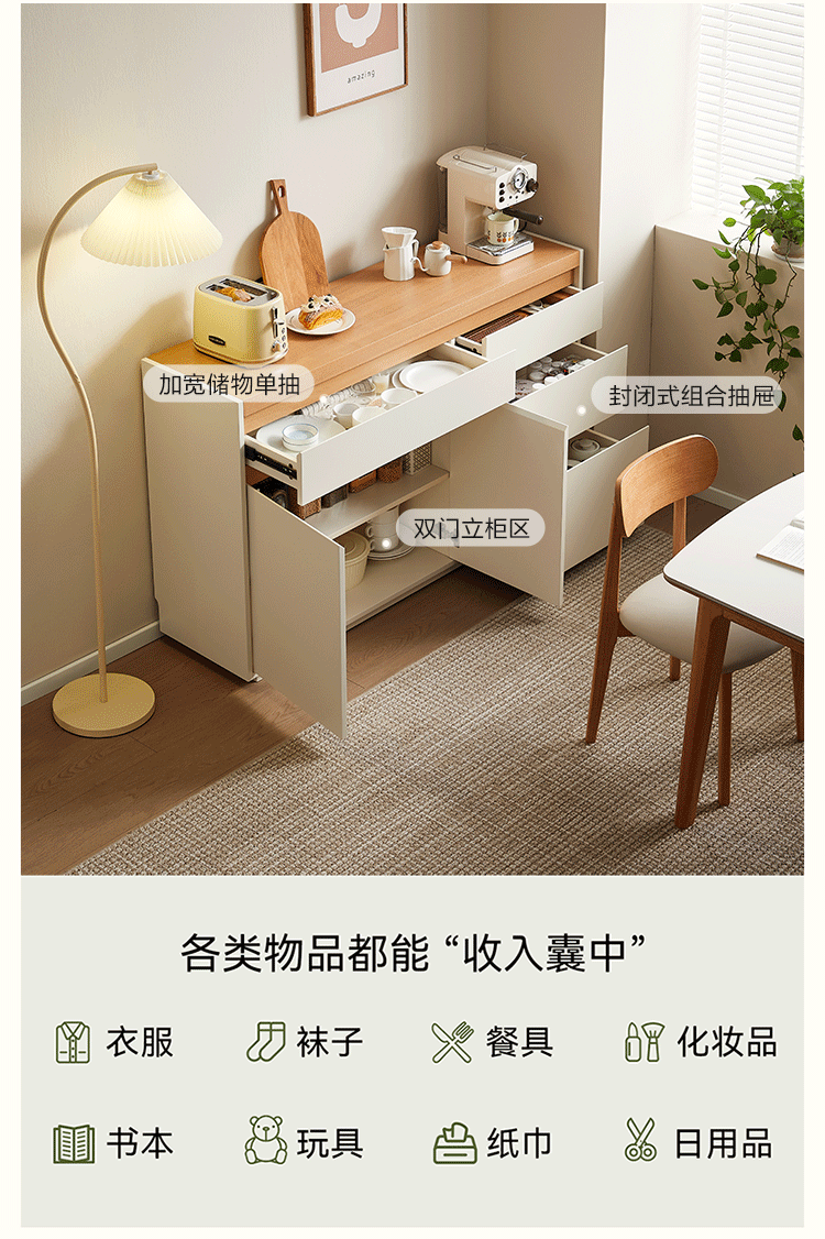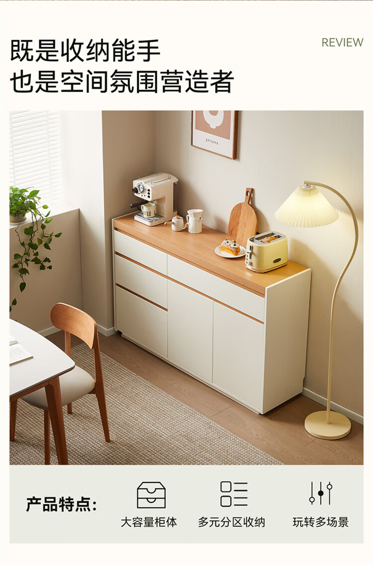 Quanyou Home Furnishing Log Cream Style Sideboard Home Storage Storage Cabinet Operating Desk Cabinet One-In-One Cabinet Cream White + Log Color Sideboard