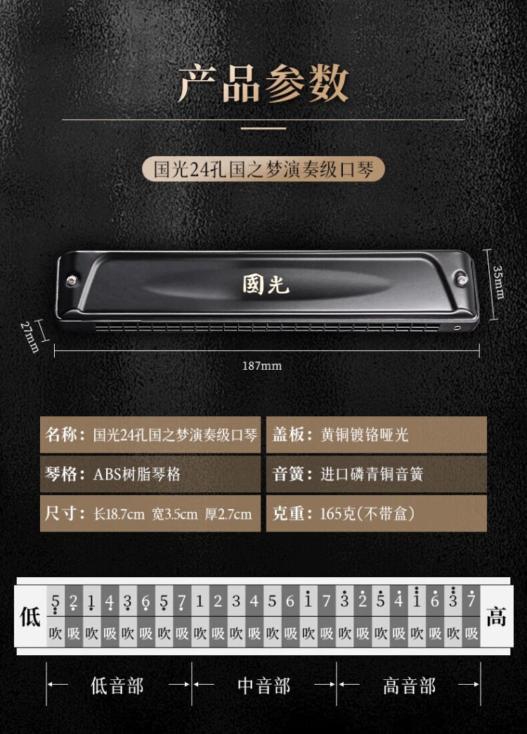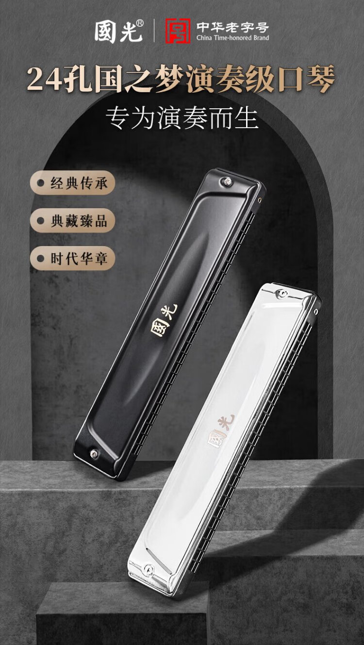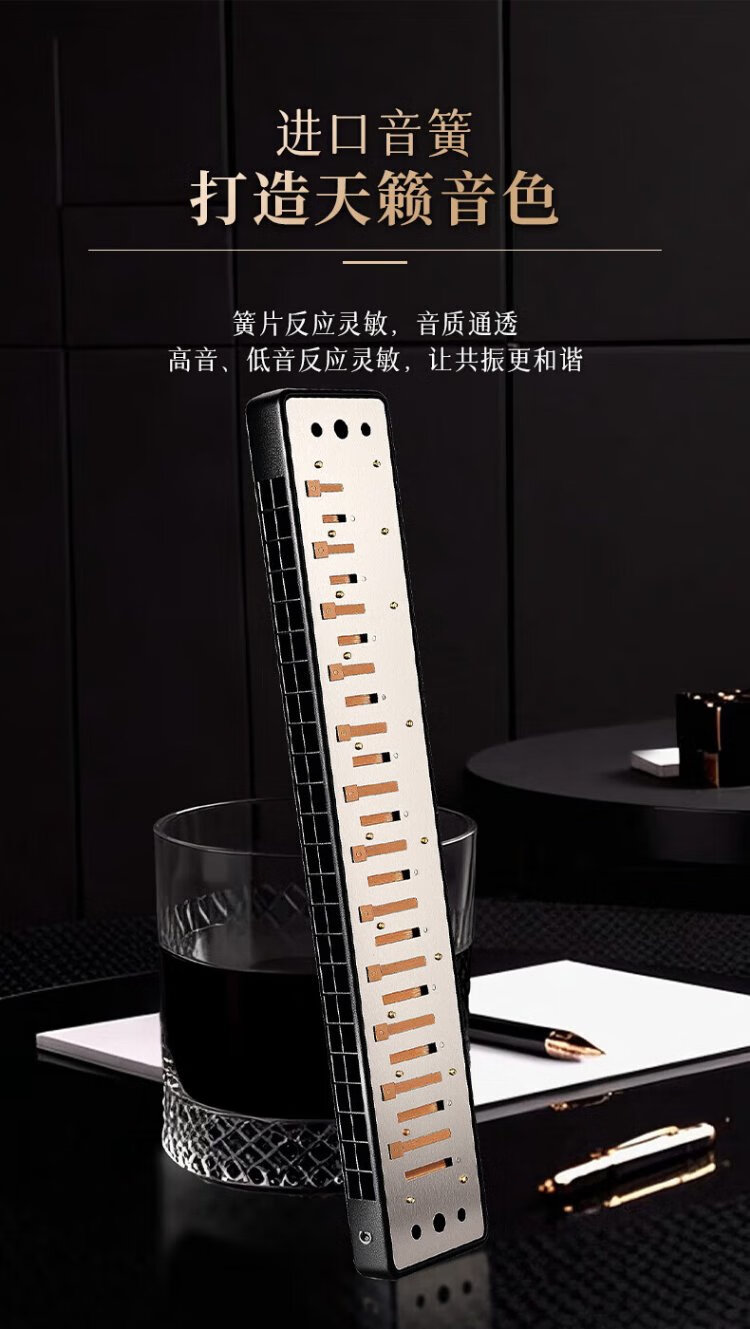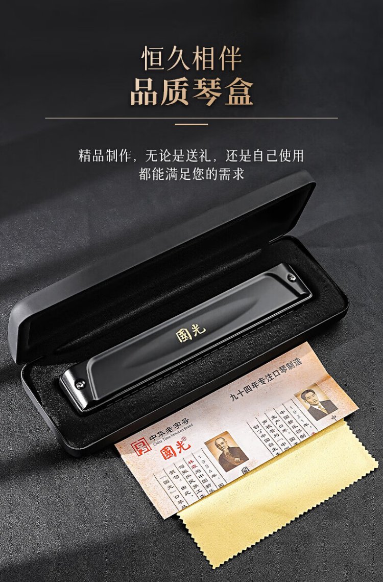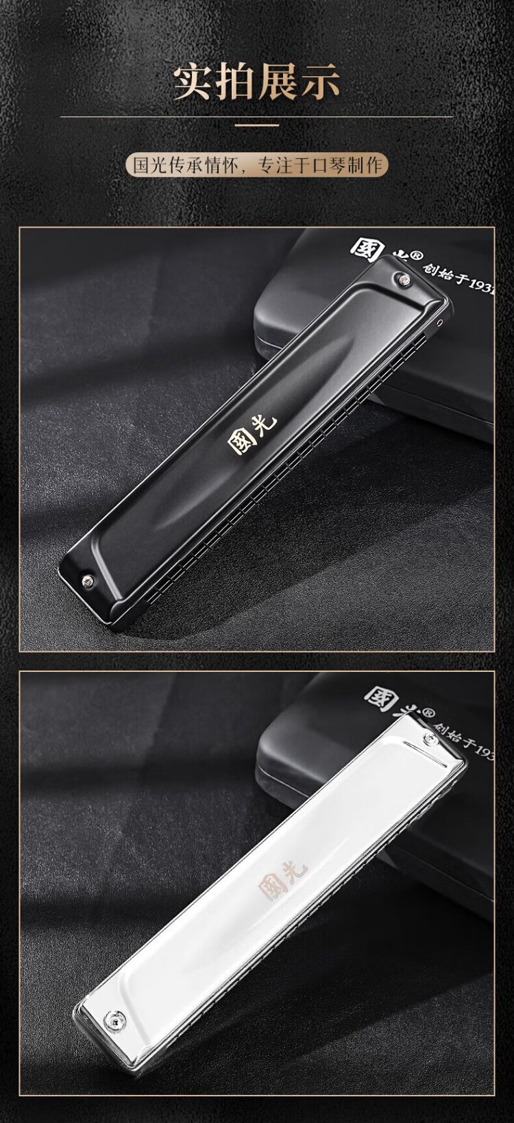 Guoguang Guozhimeng professional performance harmonica 24-hole polyphonic #A/B/C/D/E/F/G adult high-end competition harmonica 28-hole C-key polyphonic black wide range performance grade