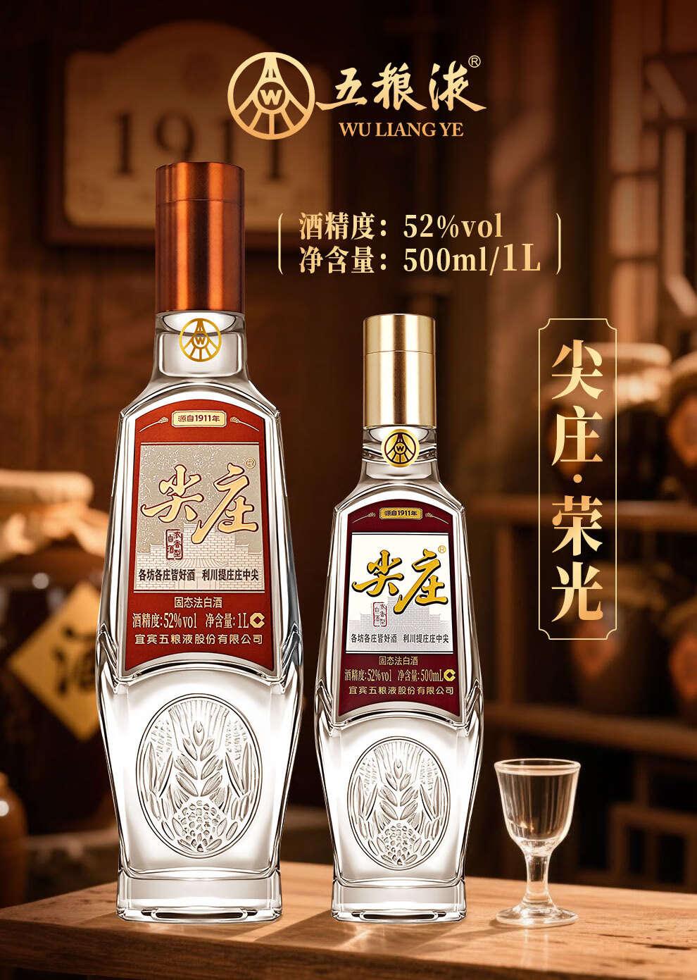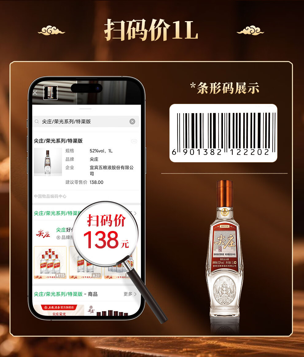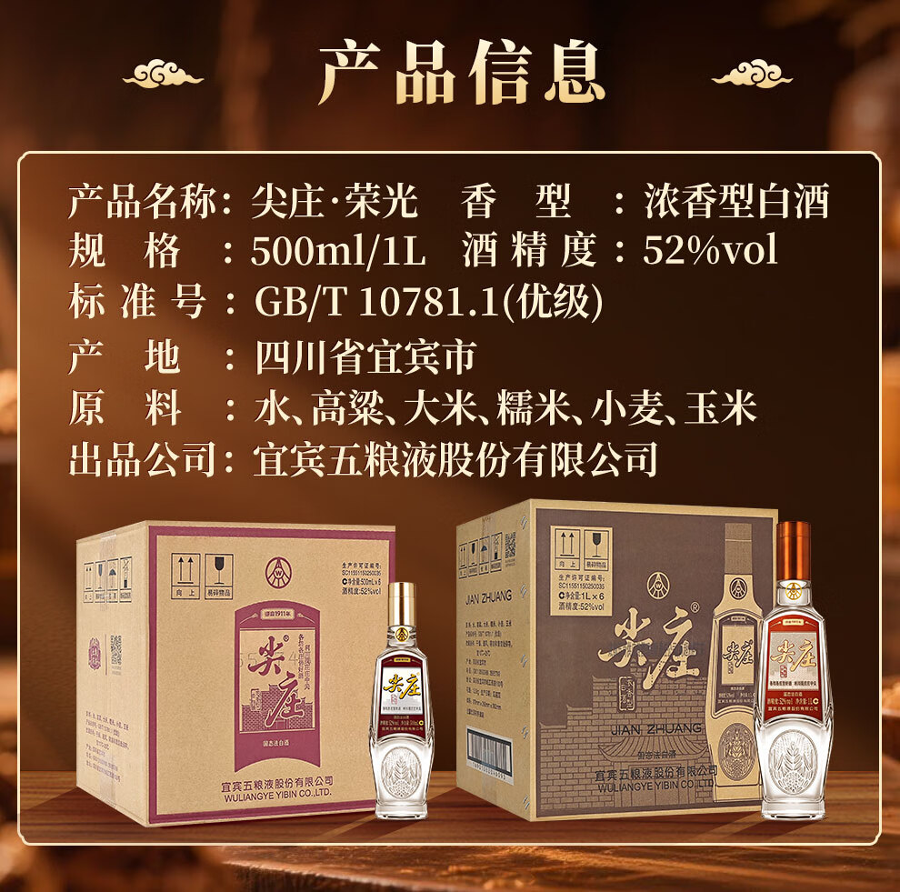 Jianzhuang Sichuan General Factory Liquor Strong Flavor Grain Wine Famous Wine Display Cabinet Collection Wine New Year Gifts 52 Degree 1L 6 Bottles Rongguang Jianzhuang Full Box