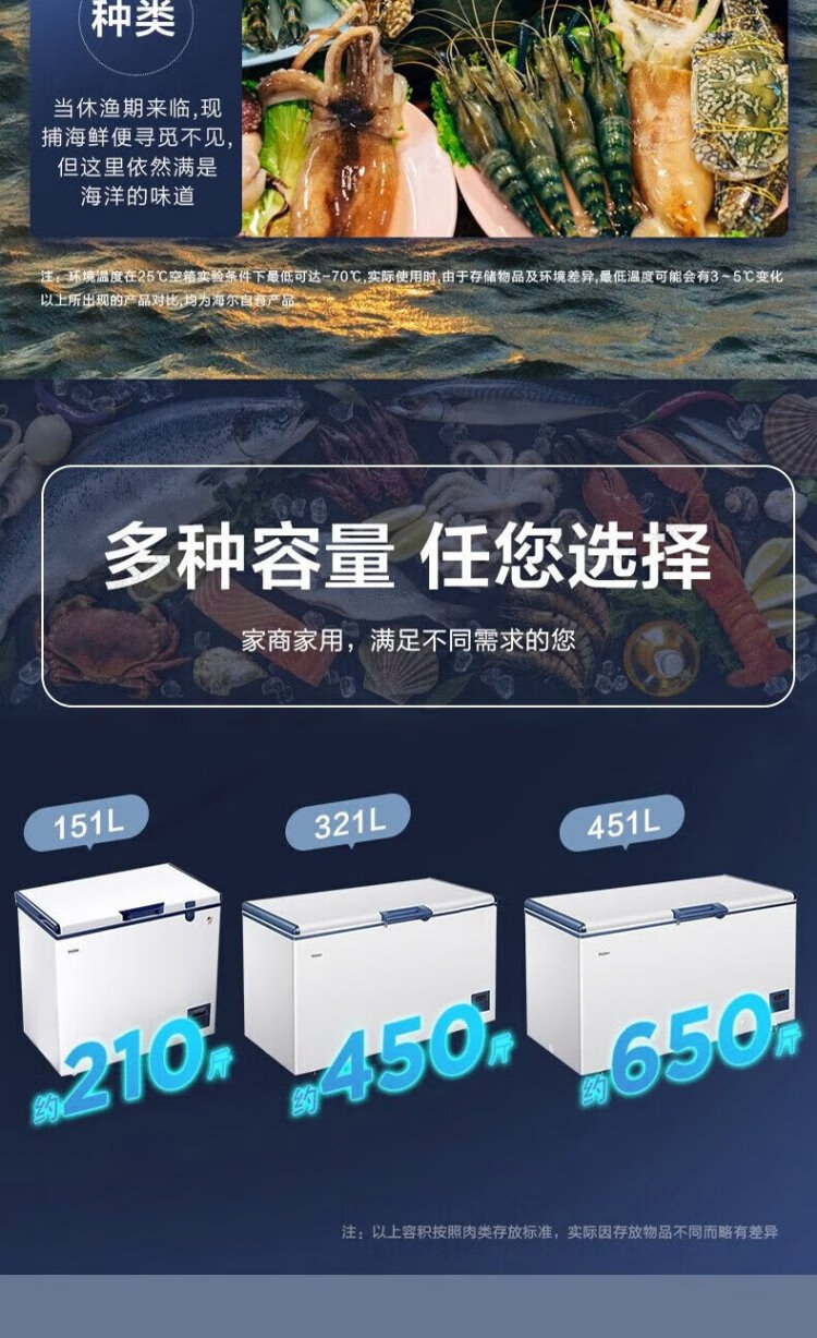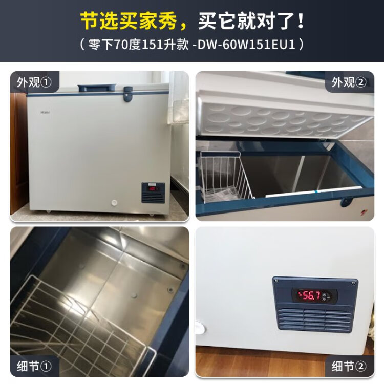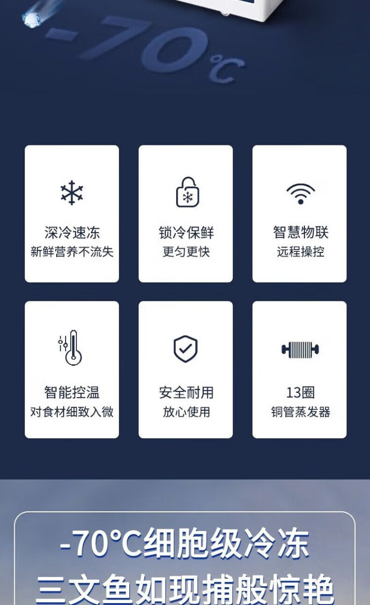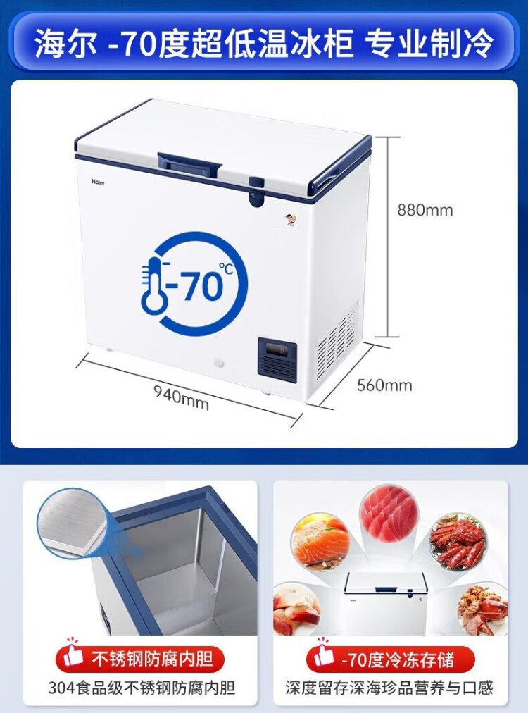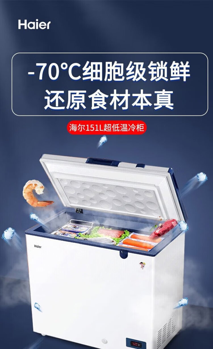 Haier ultra-low temperature freezer household and commercial large capacity subzero-60/70 deep-freezing quick-freezing freezer tuna seafood quick-frozen laboratory cell-level freezer -70 ultra-low temperature | frozen tuna | 151L