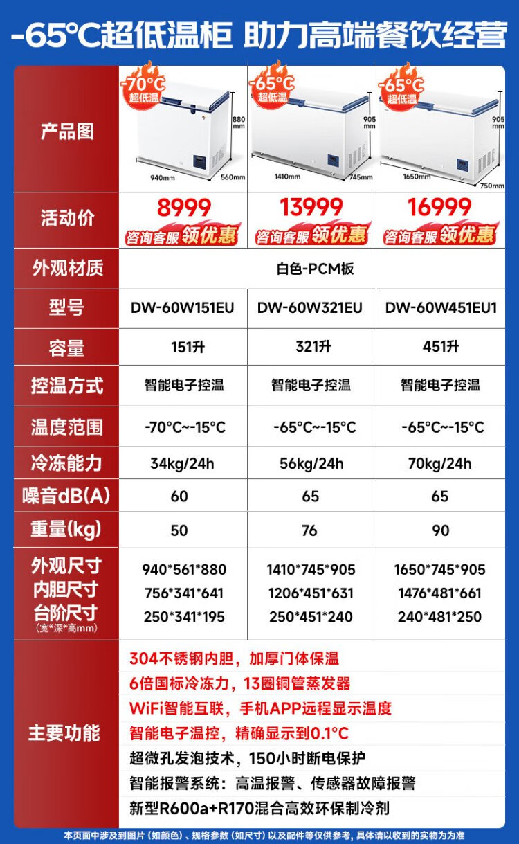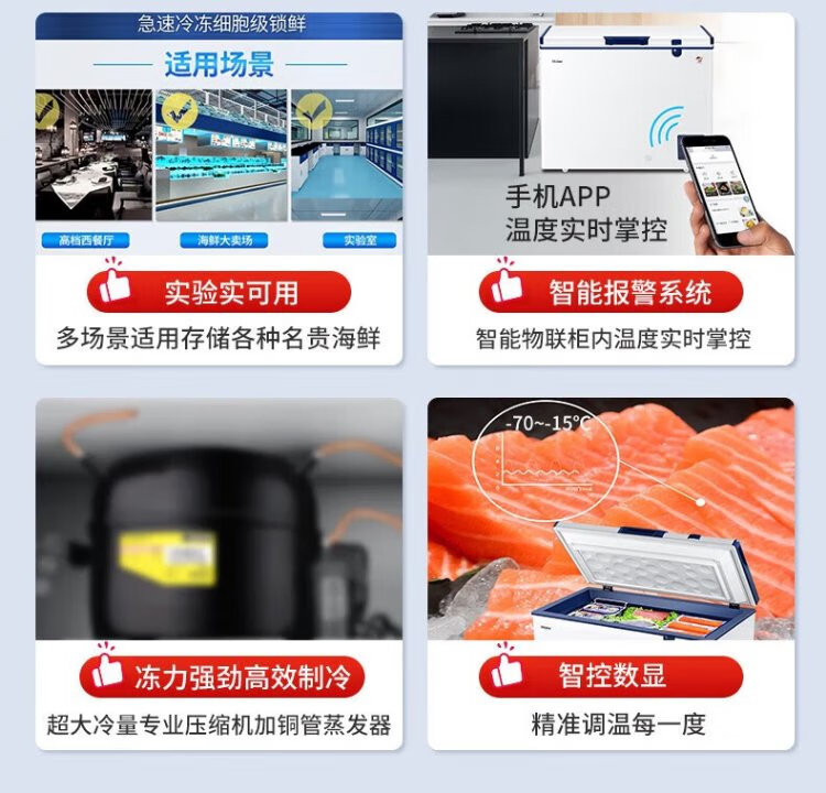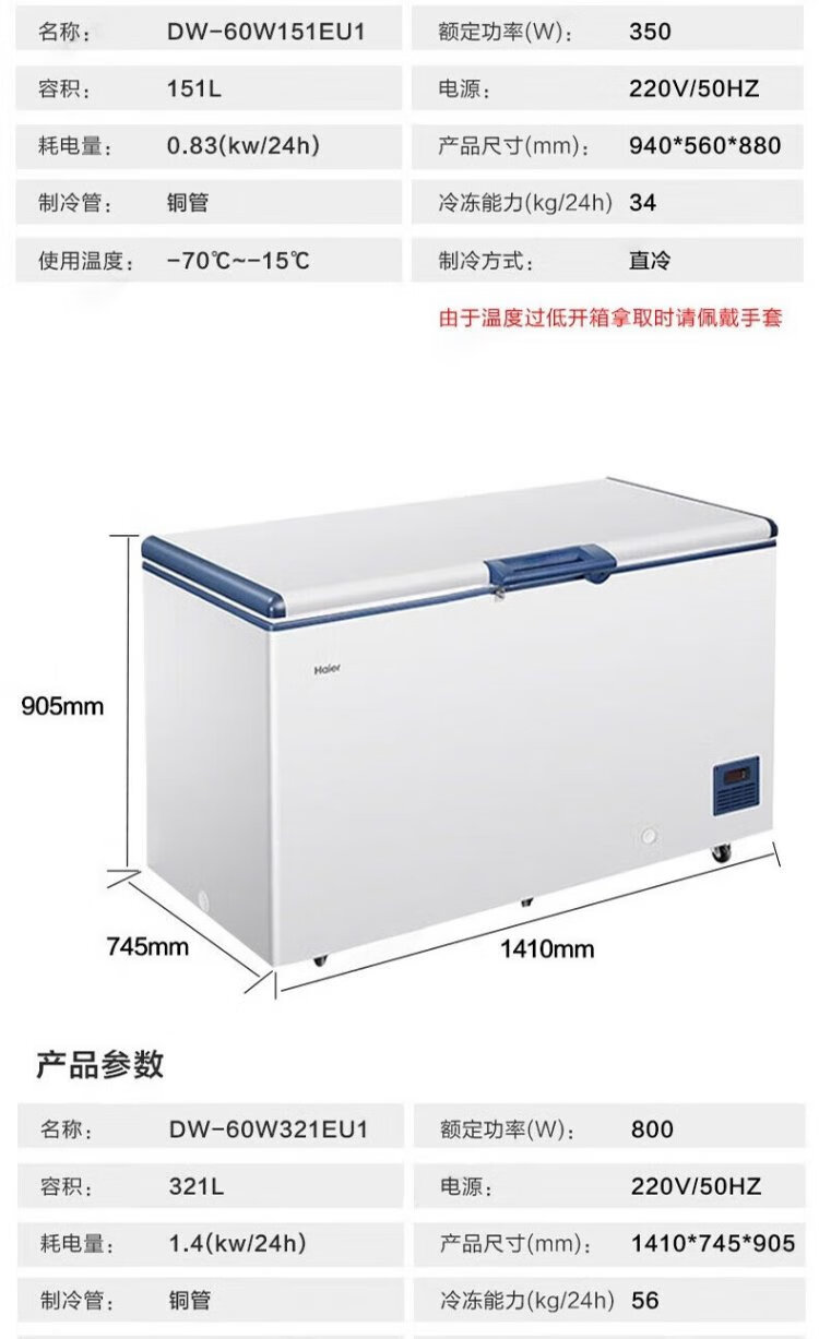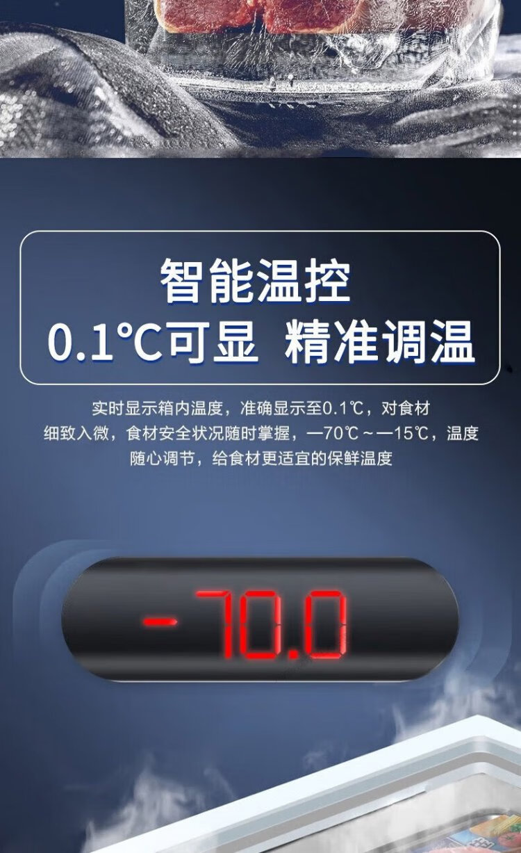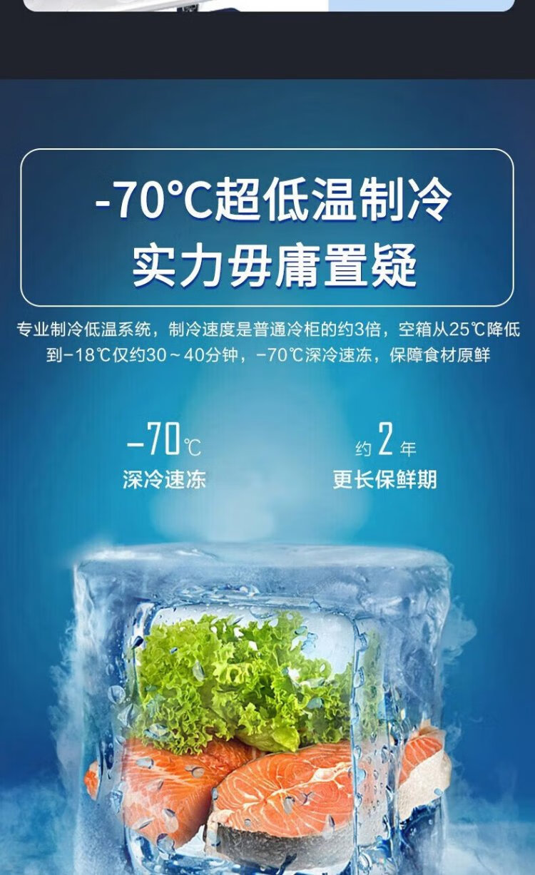Haier ultra-low temperature freezer household and commercial large capacity subzero-60/70 deep-freezing quick-freezing freezer tuna seafood quick-frozen laboratory cell-level freezer -70 ultra-low temperature | frozen tuna | 151L