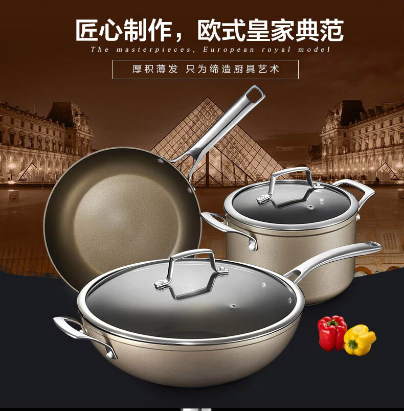 ASD (ASD) pot set non-stick frying pan less oil fume three-piece set magnetic flux pot/soup pot/frying pan non-stick three-piece set