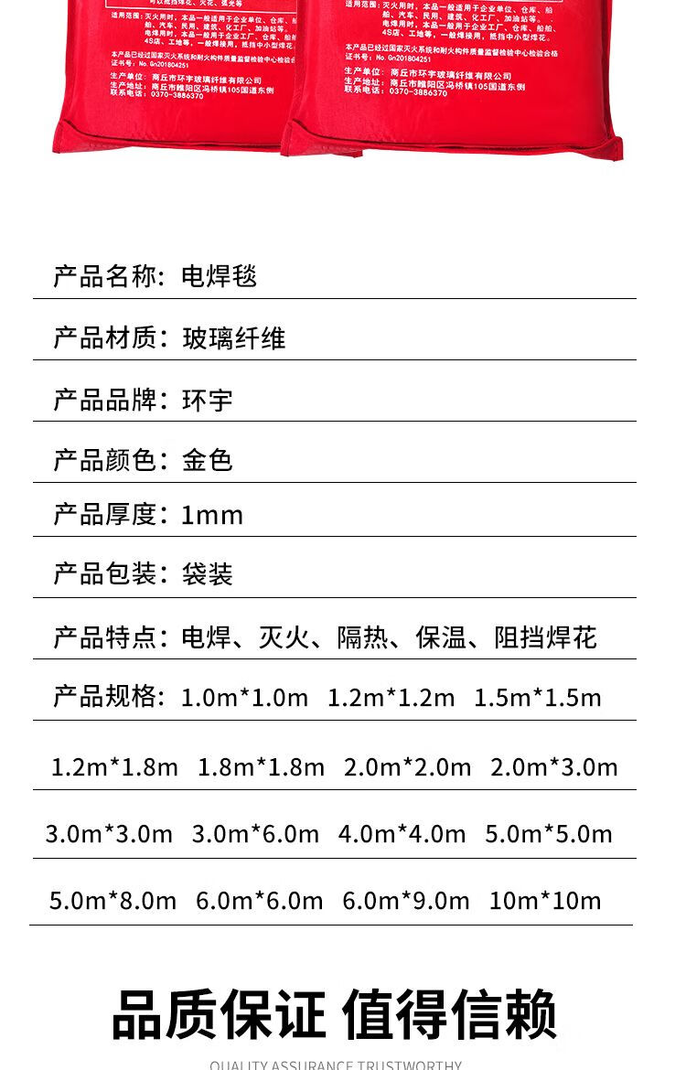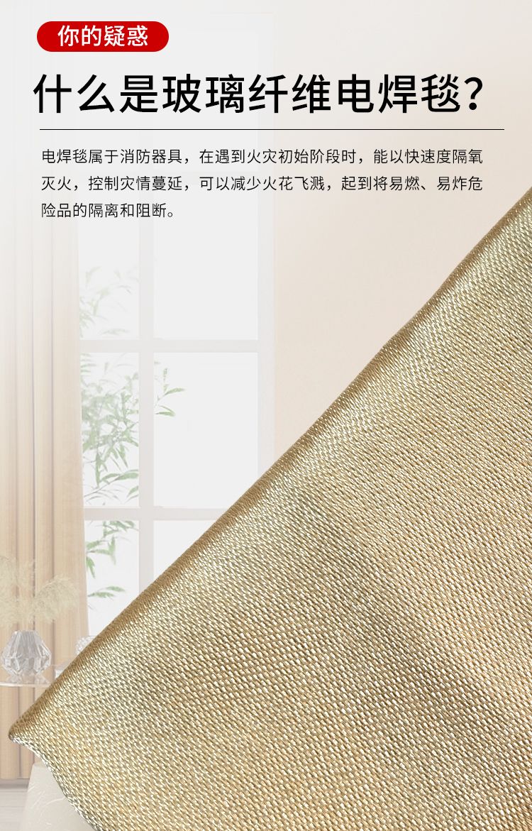 Mo Peng Fire Fighting Blanket Welding Blanket Commercial Home Internationally Certified Glass Fiber Insulation Flame Retardant High Temperature Resistant Household Welding Special Gold 1m*1m Bag