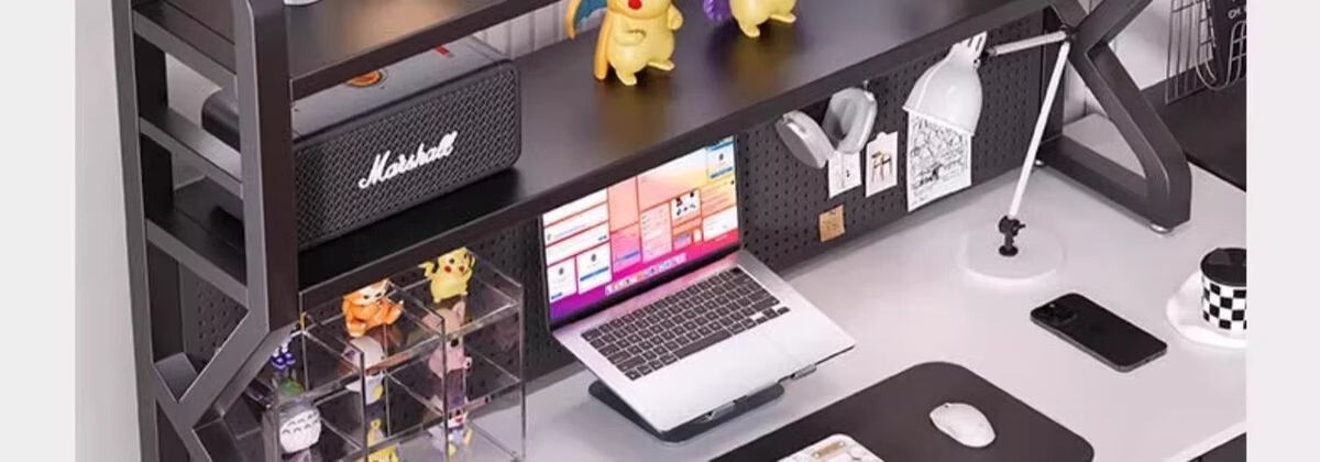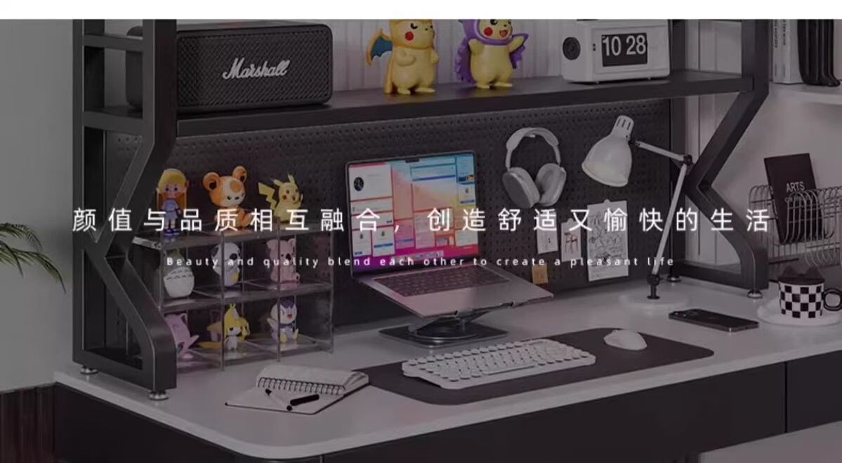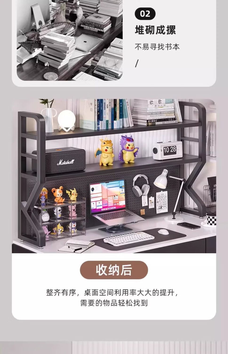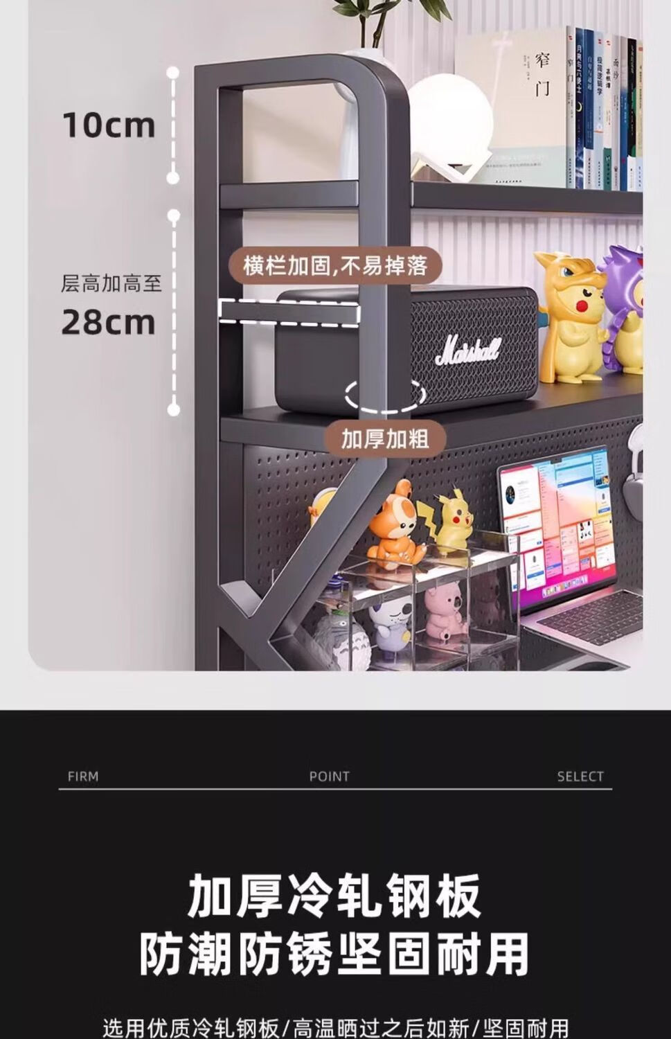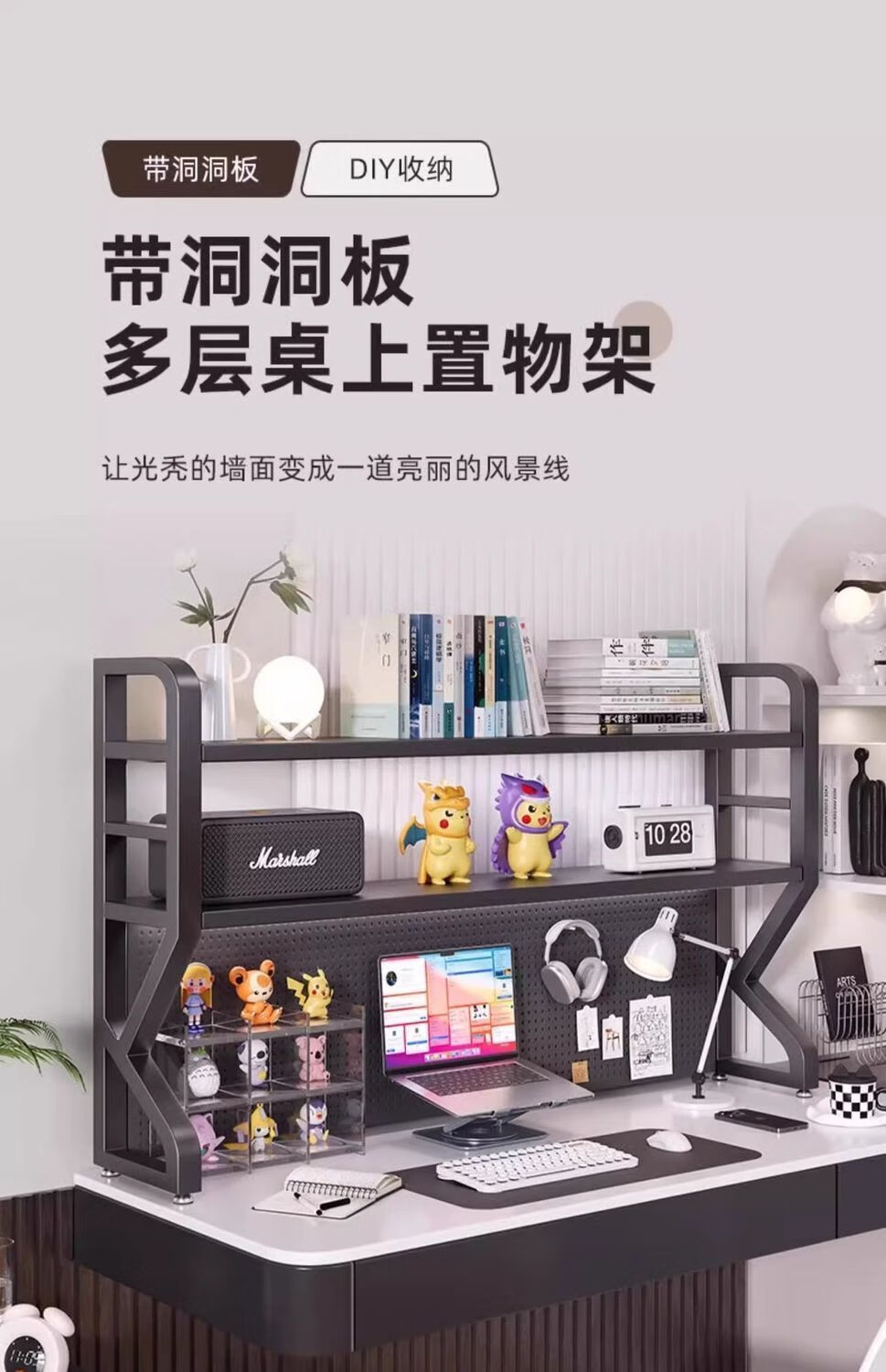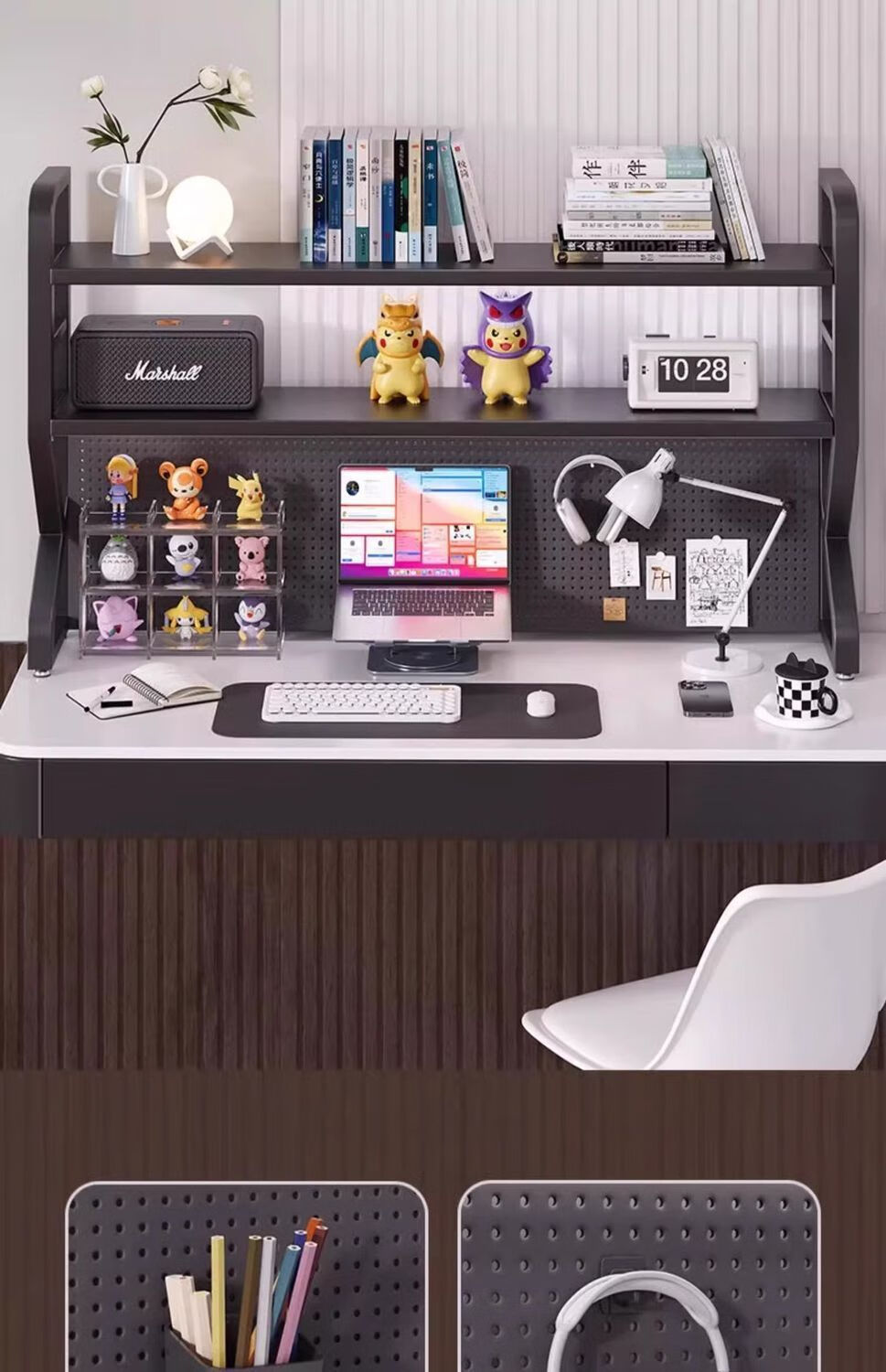 Perforated board storage rack vertical one-piece multi-layer bookshelf dormitory rental house office computer desk desktop storage rack Aurora White-double layer + eSports 30-piece set-115cm model + thickened carbon steel frame
