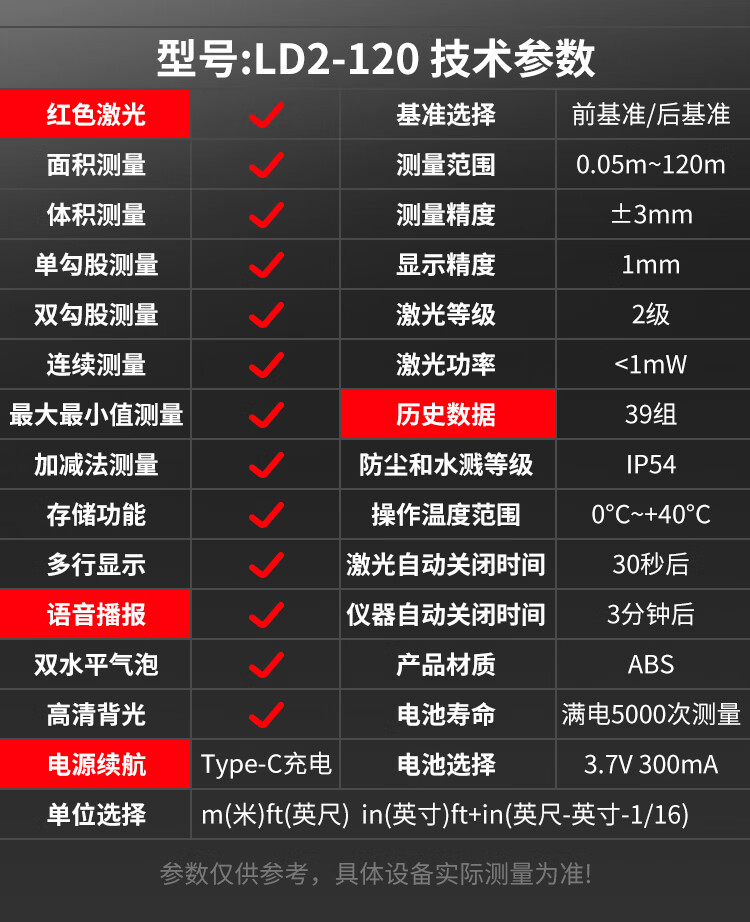 Outdoor laser rangefinder laser infrared high-precision distance measurement electronic ruler red light rangefinder rechargeable