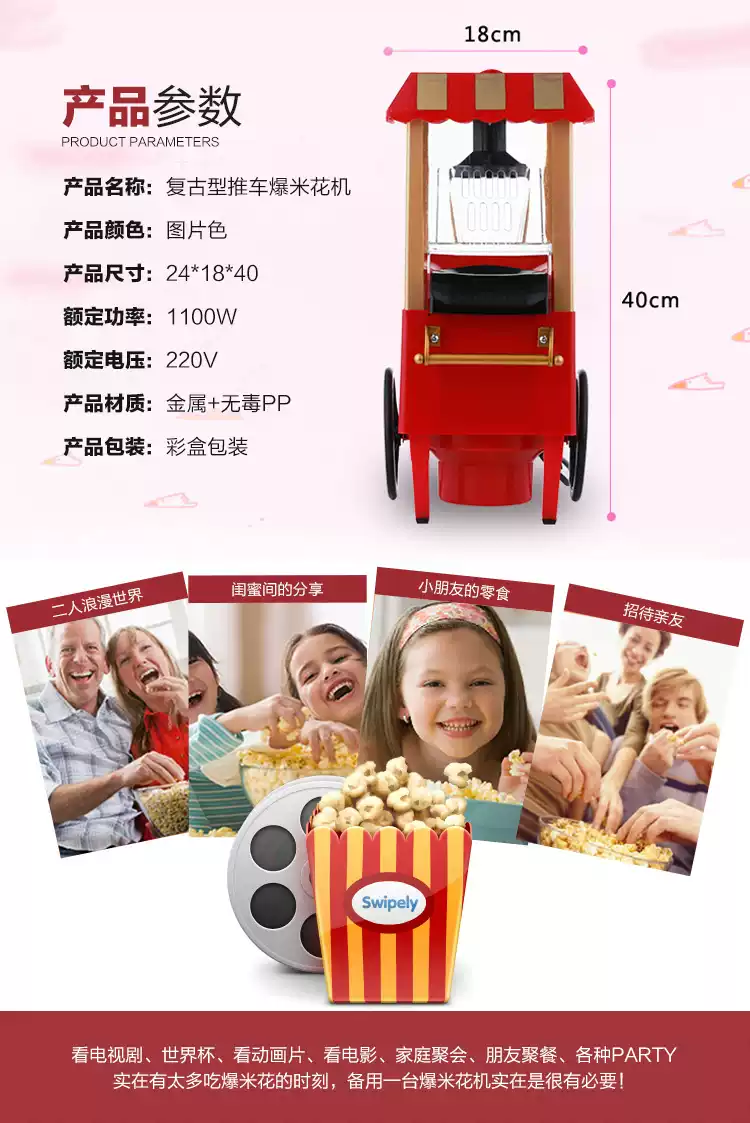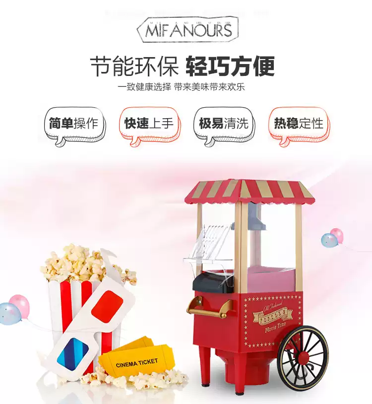 RSRDDY retro cart classical horse model mini popcorn machine household popcorn machine Noyang PM2800 default