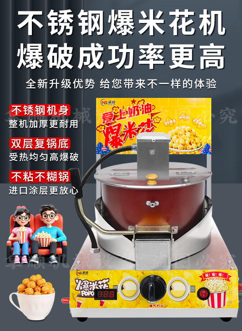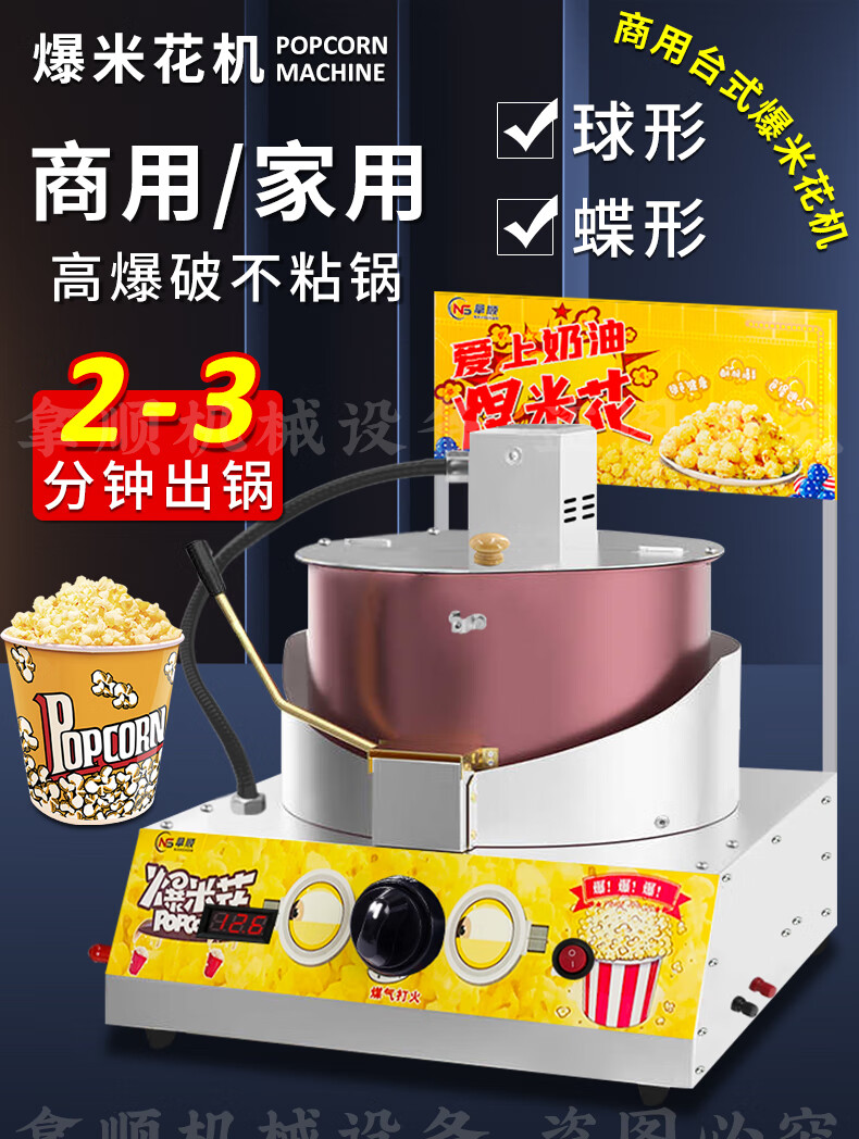 RSRDDY popcorn machine gas desktop commercial stall hand-cranked fully automatic spherical butterfly popcorn pot machine marshmallow popcorn combination machine