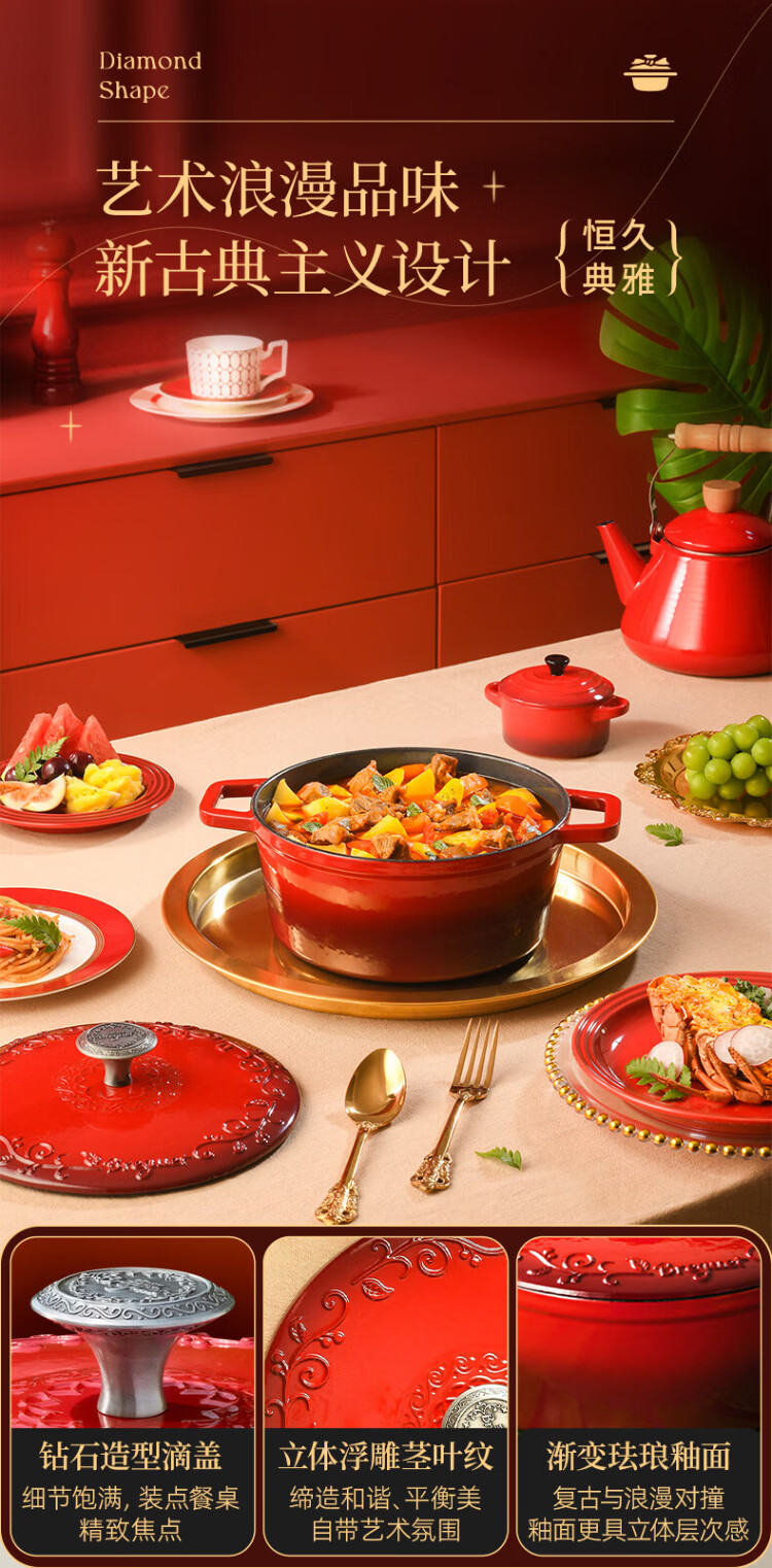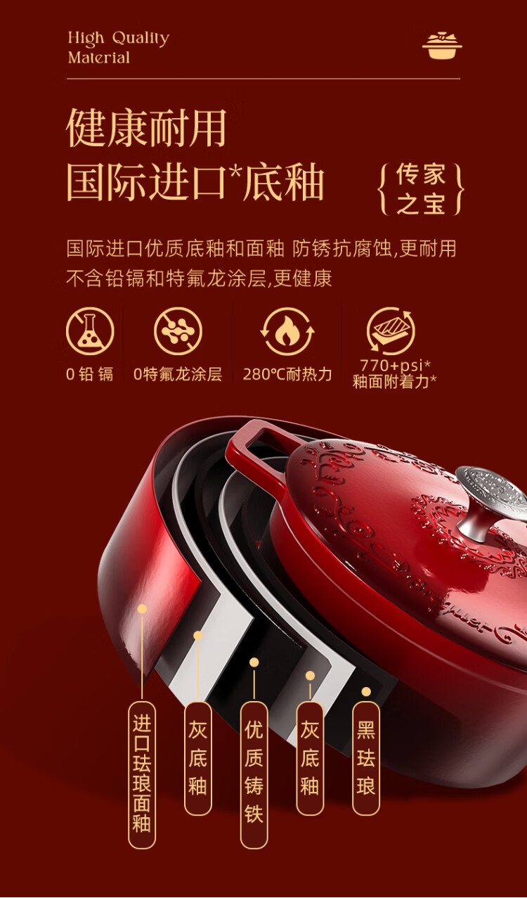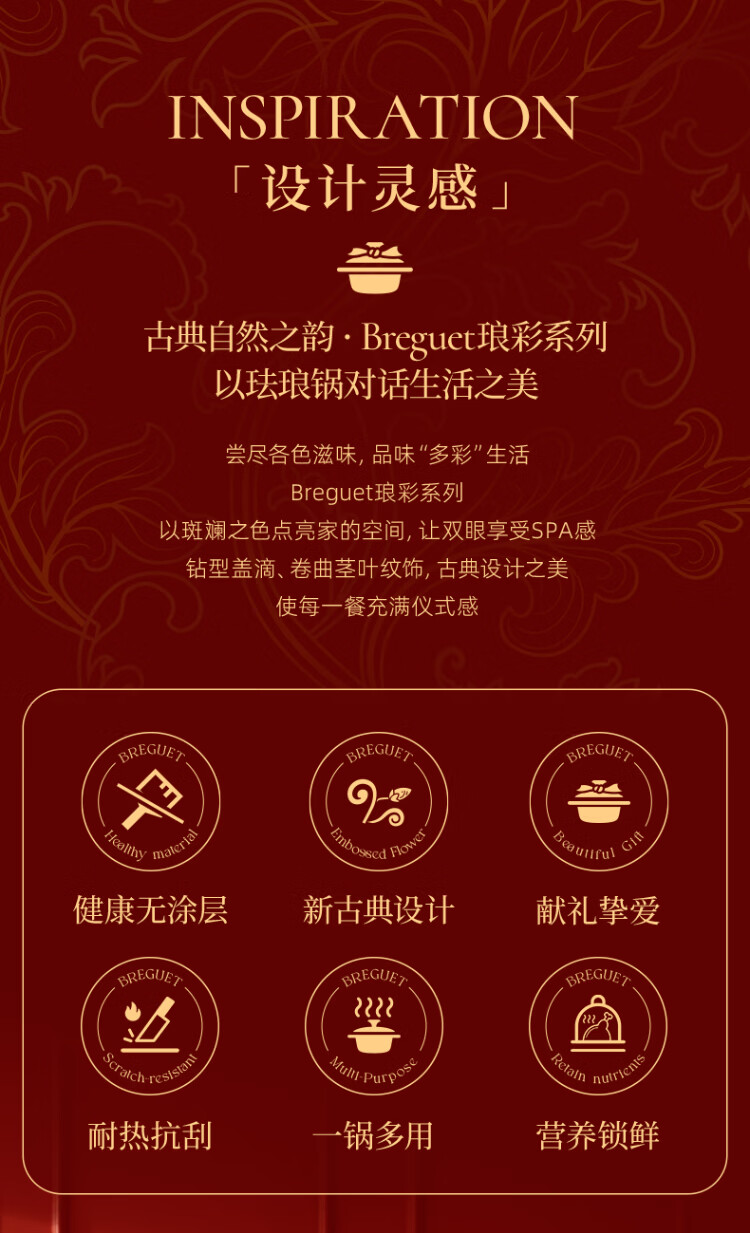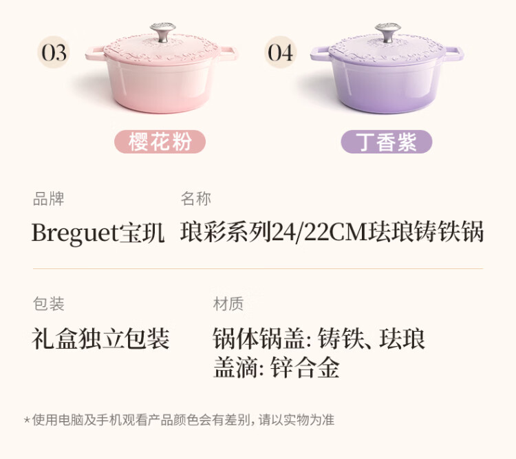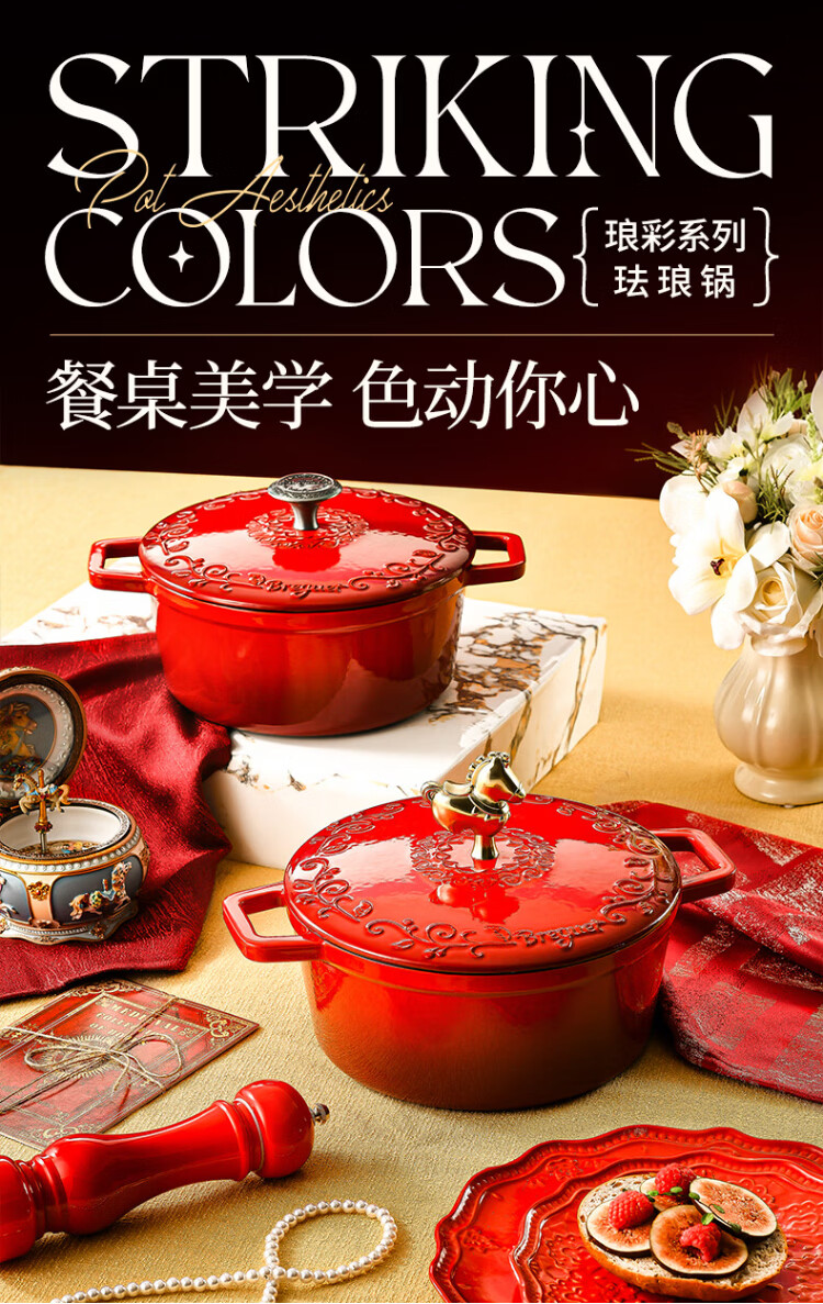Breguet enamel pot cast iron pot wok enamel cast iron pot stew pot soup pot uncoated gas stove wedding New Year gift Year of the Horse limited lucky number - high-end gift box 24cm
