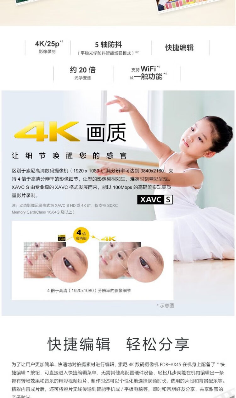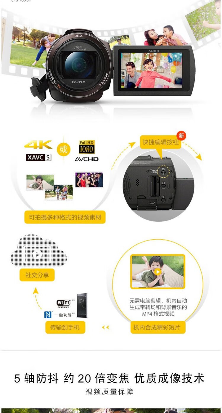 Sony (SONY) HDR-CX405 AX45A/PJ410 HD camera infrared night photography DV photography 4K live conference shooting Sony AX60 standard 5-year warranty