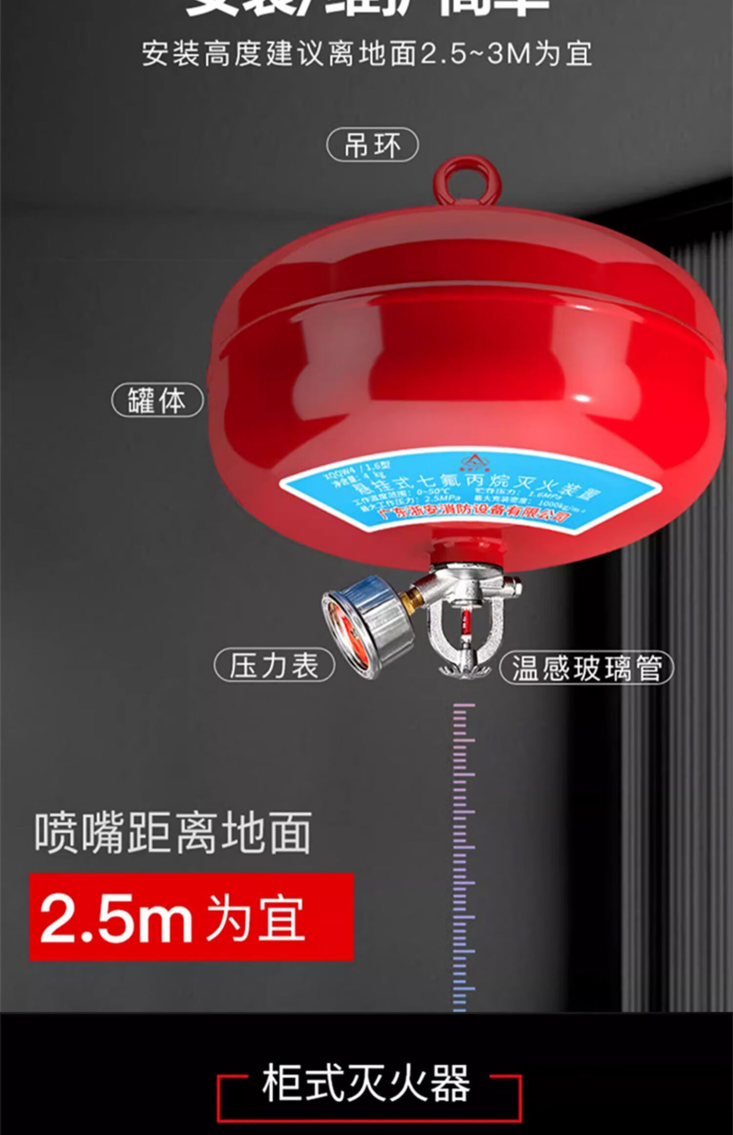 Heptafluoropropane fire extinguisher hanging clean gas fire extinguishing device cabinet type portable trolley pharmacy room system cabinet type heptafluoropropane (40L)