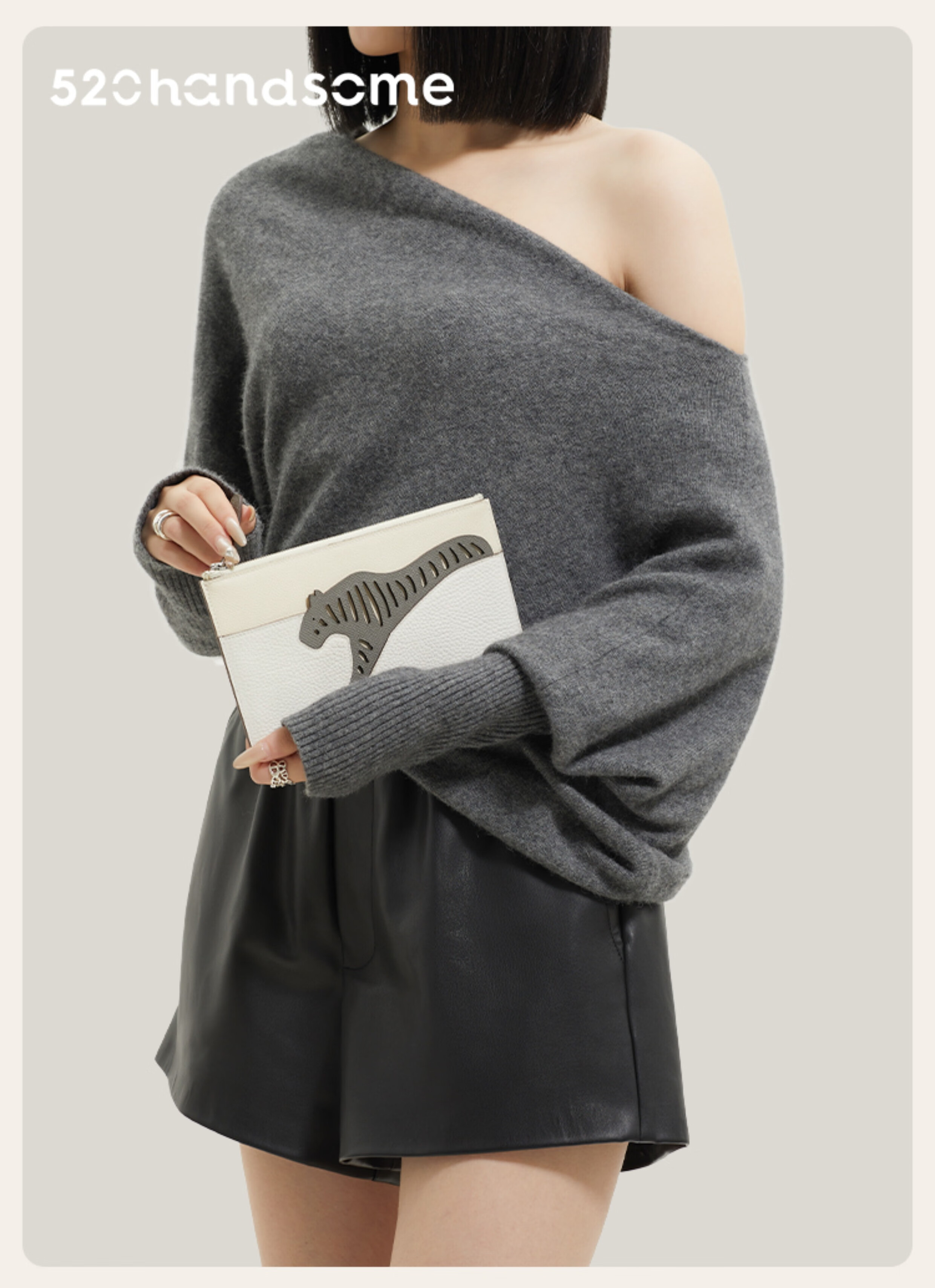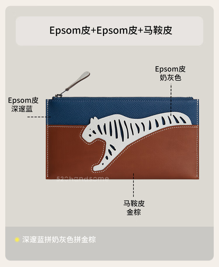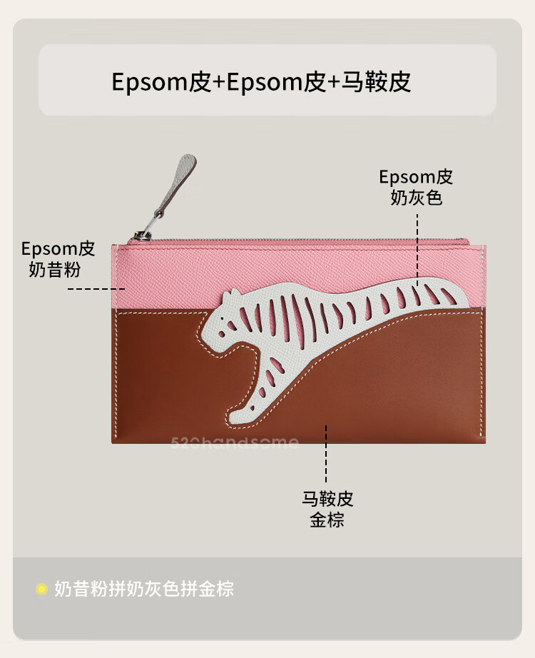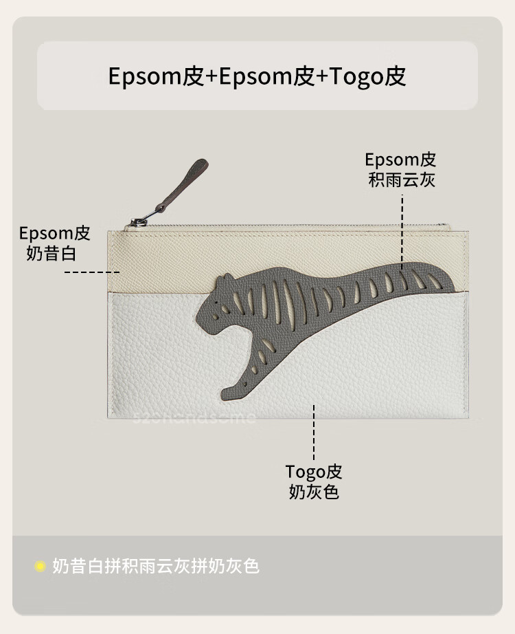 European and American animal series genuine leather light luxury chain multi-color lightweight splicing long version handbag cosmetic bag coin purse EP milkshake powder + EP milk gray + saddle leather