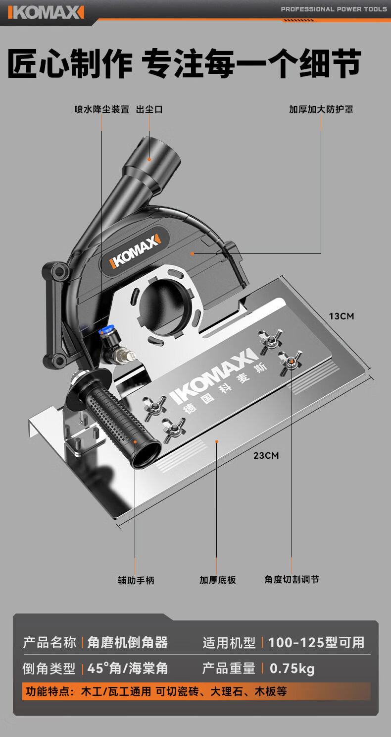 Angle grinder variable chamfering artifact for ceramic tiles 45-degree chamferer woodworking corner cutter special fixed cutting bracket for tiles Angle grinder variable chamfering tool metal version with vacuum cleaner