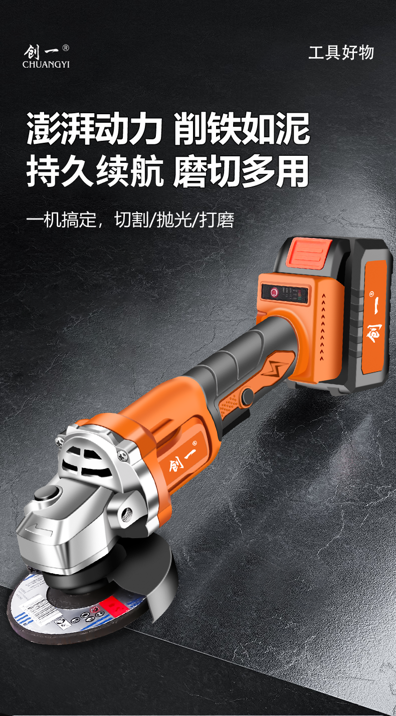XMSJ lithium electric angle grinder polishing machine rechargeable grinder multi-function cutting machine angle grinder exclusive model with two batteries + top configuration