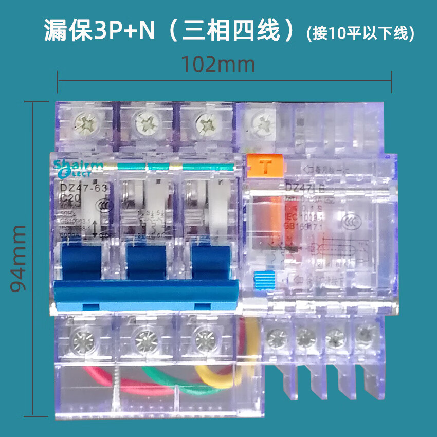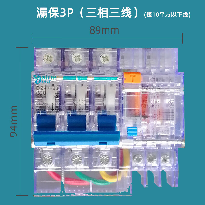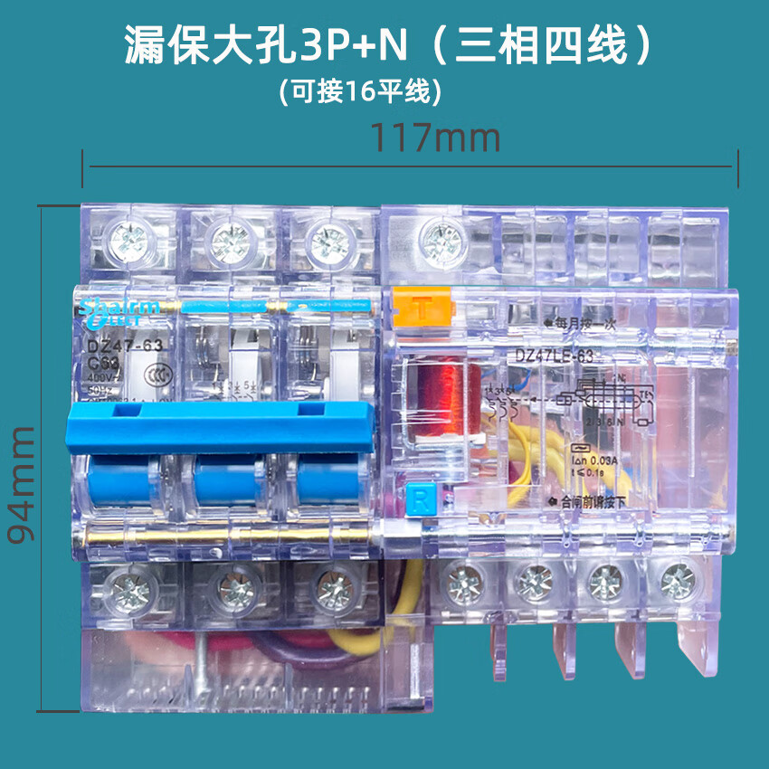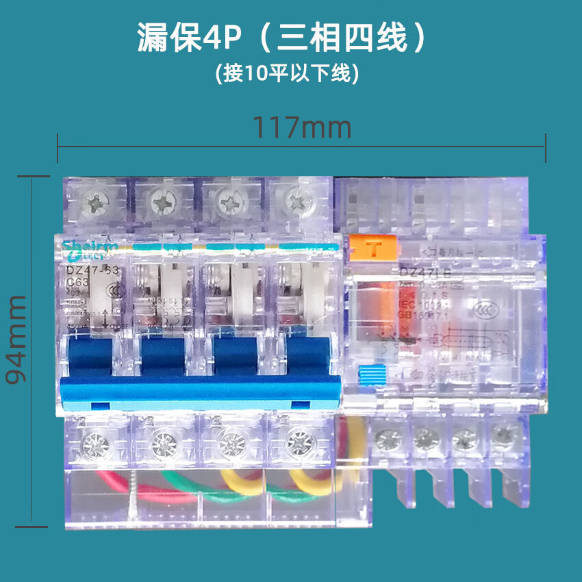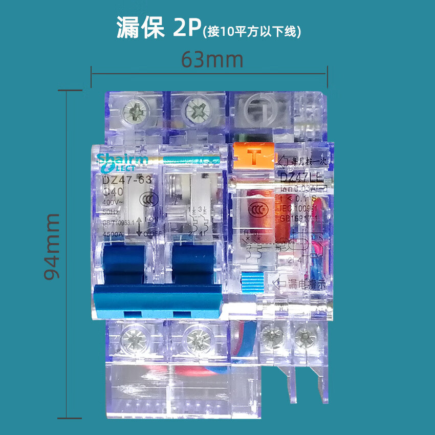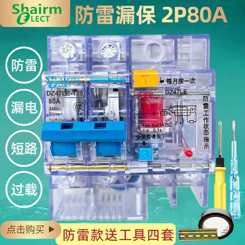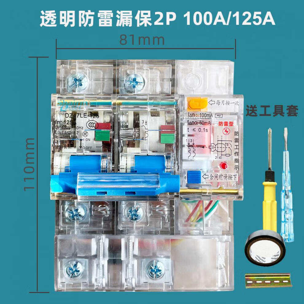 Shanghai People's Transparent 220V lightning protection leakage circuit breaker three-phase four-wire 380V air switch with leakage protection lightning protection + leakage protection 2P (household 220V) 63A