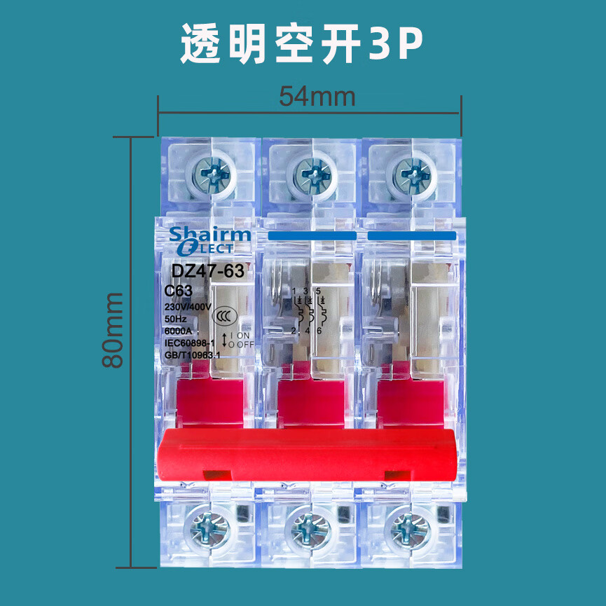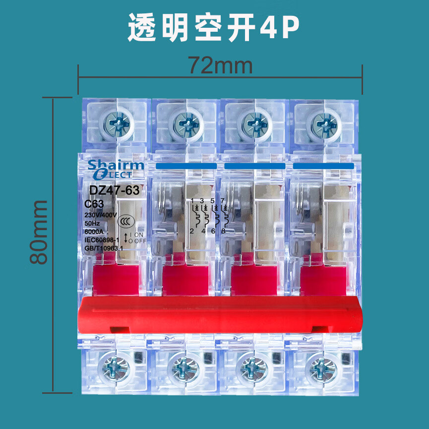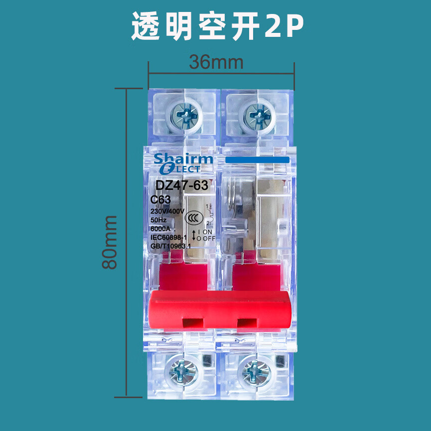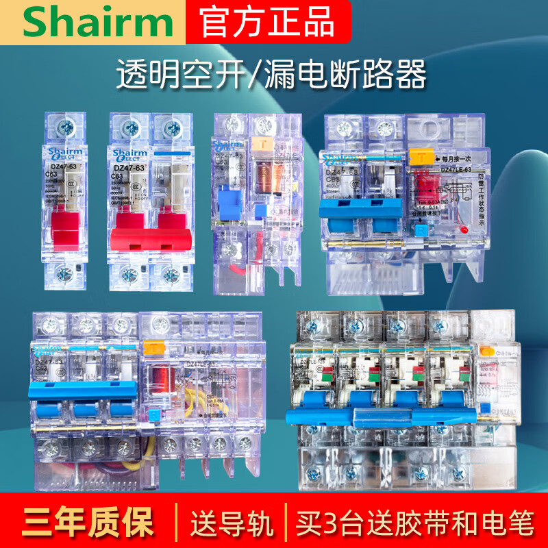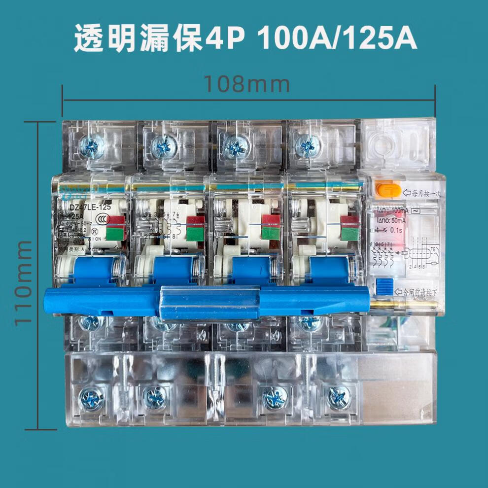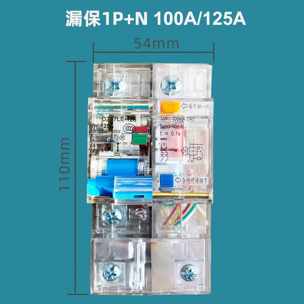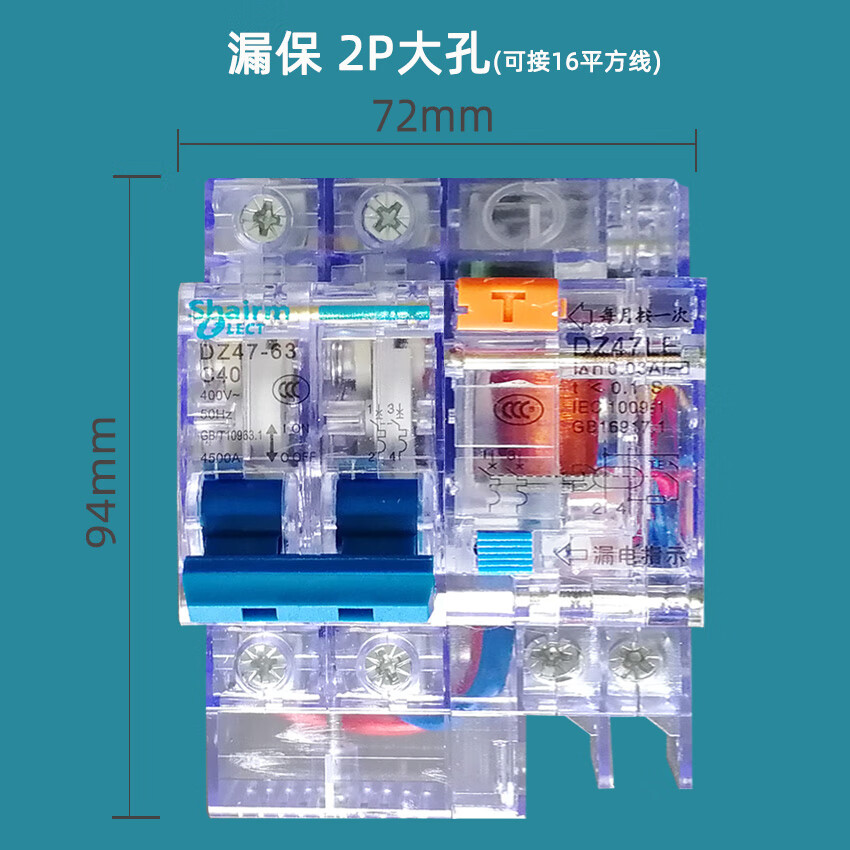 Shanghai People's Transparent 220V lightning protection leakage circuit breaker three-phase four-wire 380V air switch with leakage protection lightning protection + leakage protection 2P (household 220V) 63A