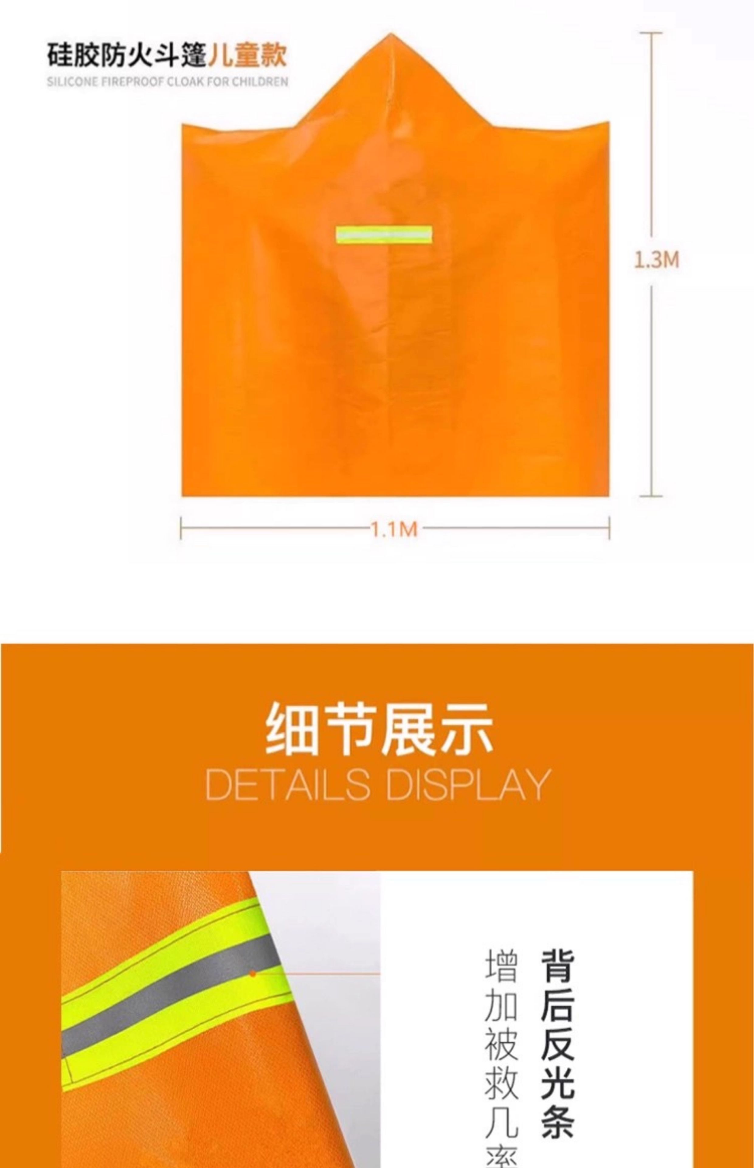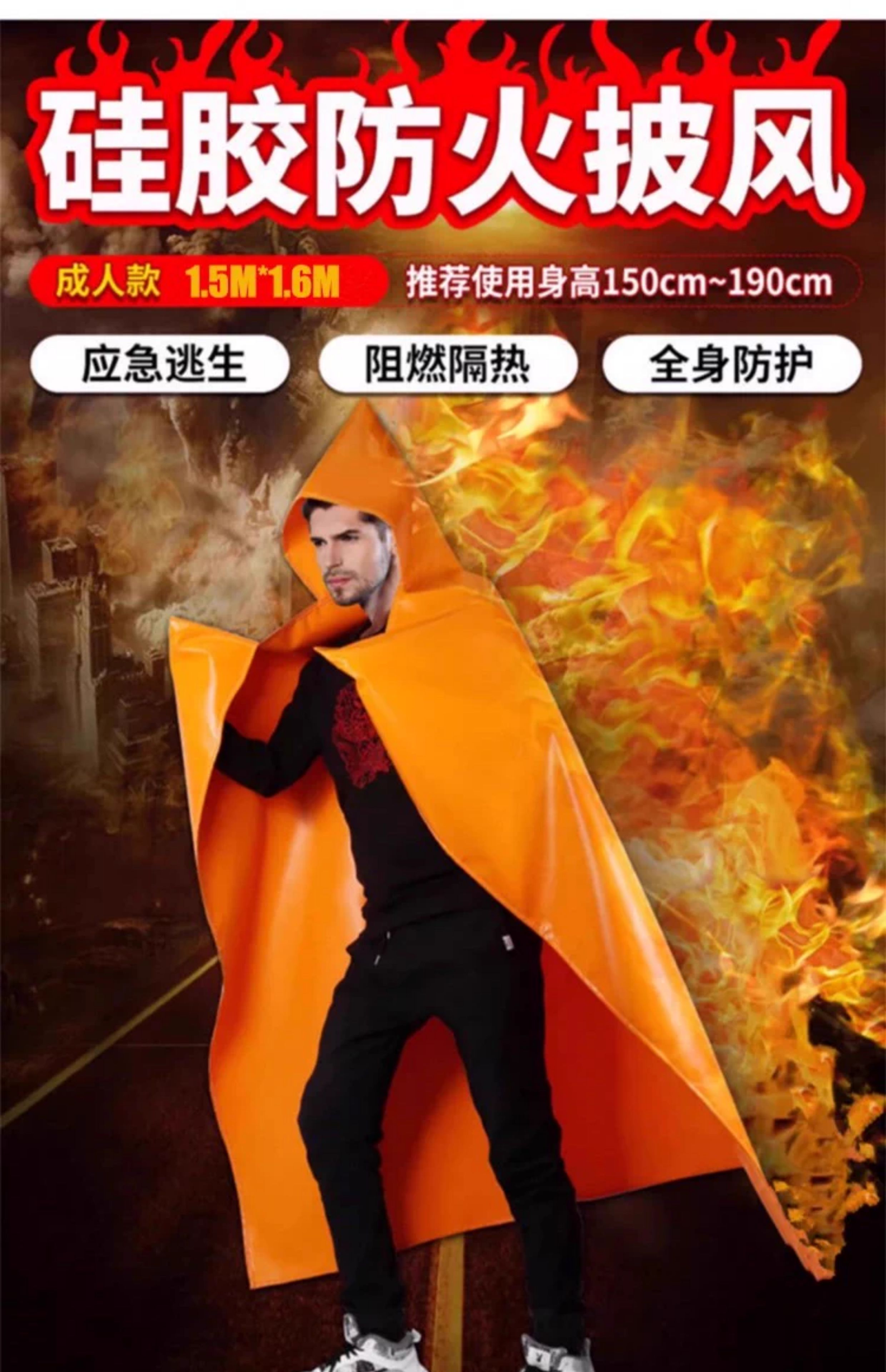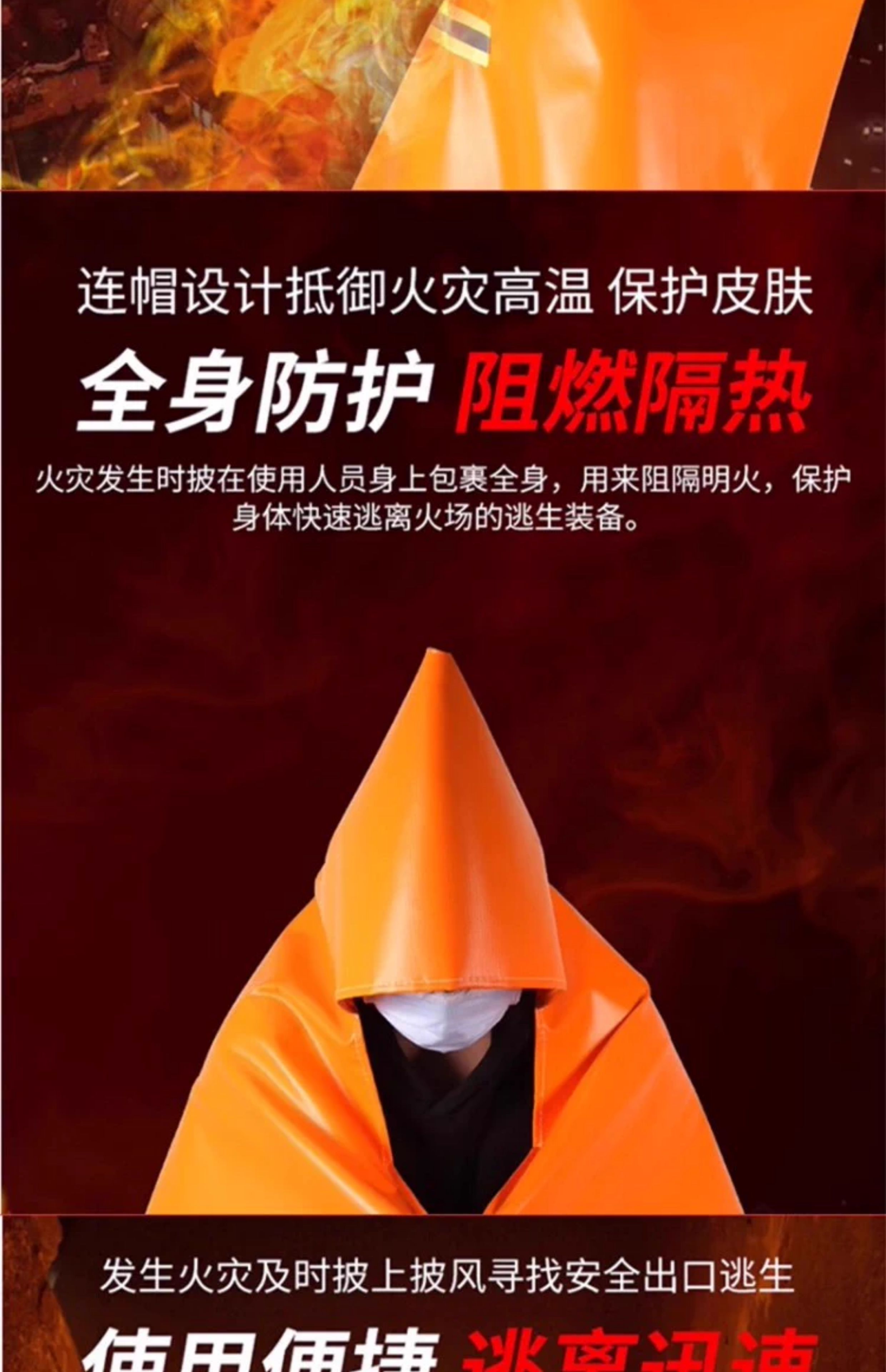Kangbo Jiuan Fireproof Cloak Double-layer Silicone Household Fire Blanket High Temperature Resistance and Insulation High-rise Fire Escape Clothes and Equipment Cloak (Children's Style) Thickened Silicone Cloak 1.1m*1.3