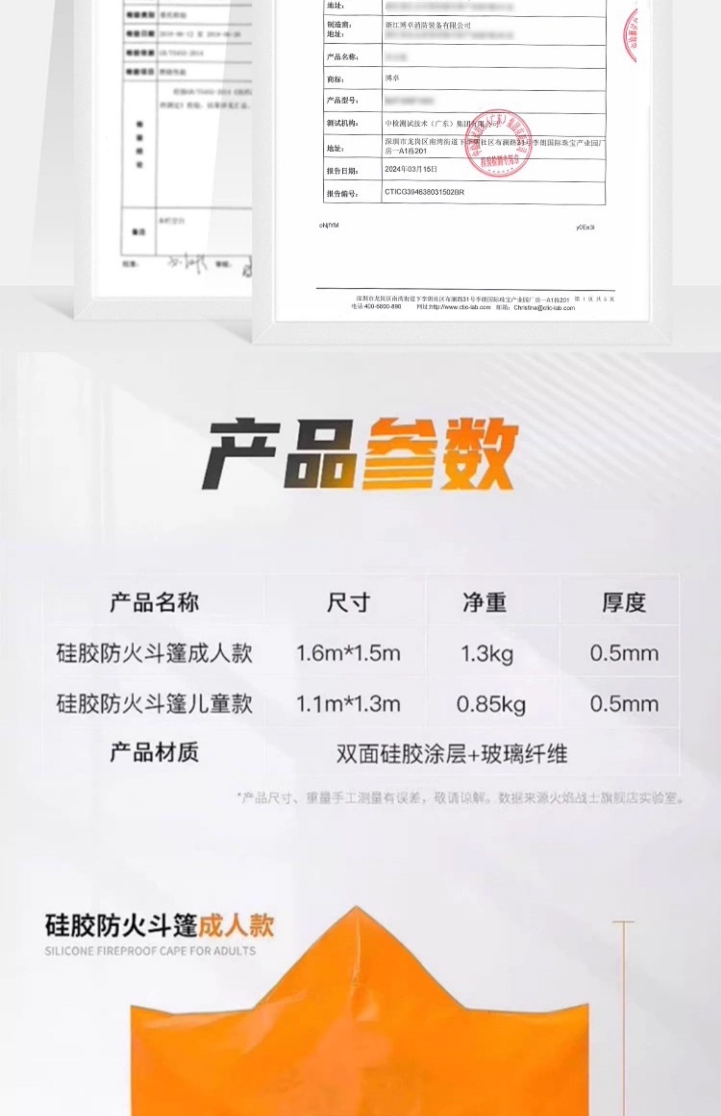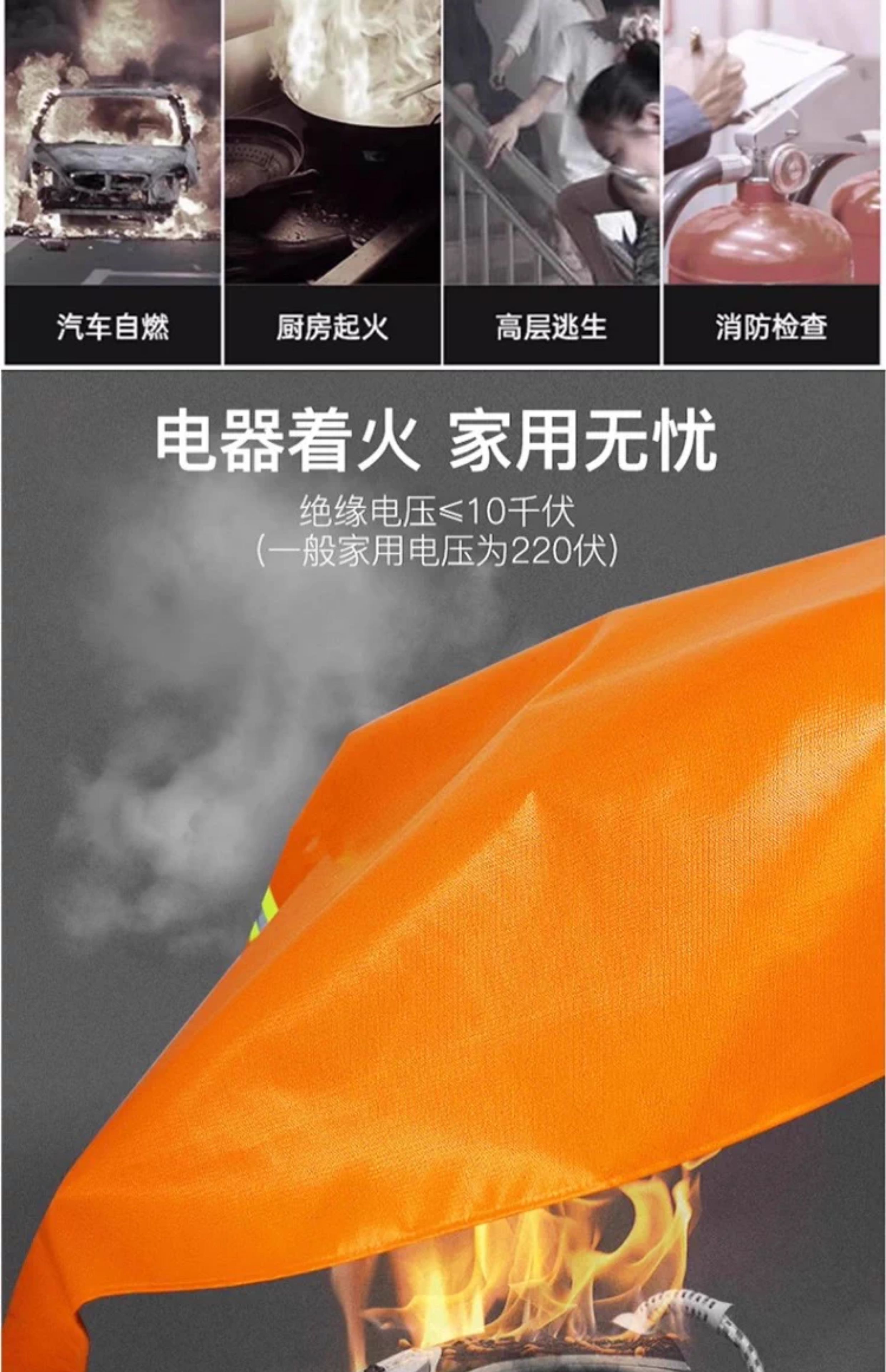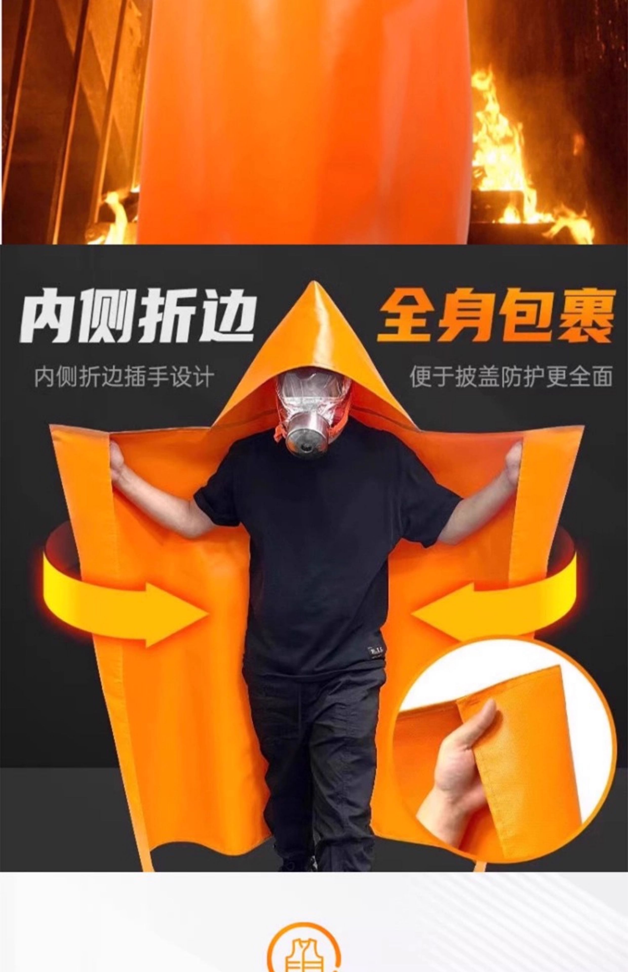 Kangbo Jiuan Fireproof Cloak Double-layer Silicone Household Fire Blanket High Temperature Resistance and Insulation High-rise Fire Escape Clothes and Equipment Cloak (Children's Style) Thickened Silicone Cloak 1.1m*1.3