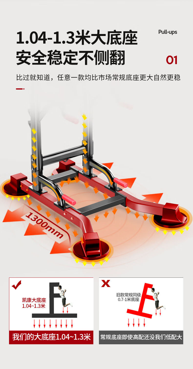 Kaikang horizontal bar indoor home pull-up device children's ring parallel bar floor-standing punch-free home sports and fitness equipment large base double bar + ultra-high strength main frame + load-bearing 1850 catties + 55kn