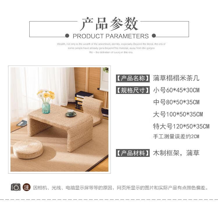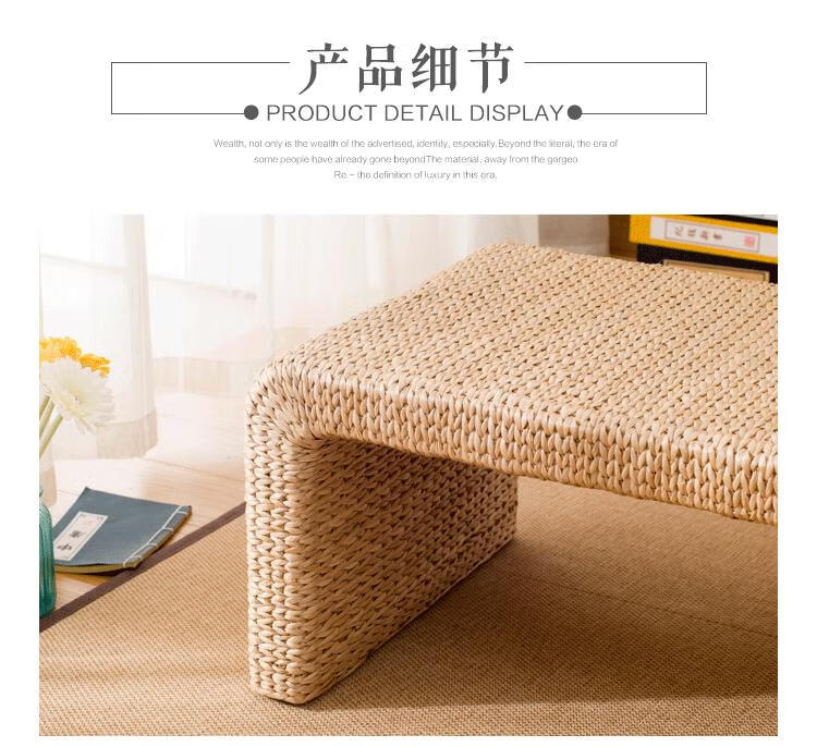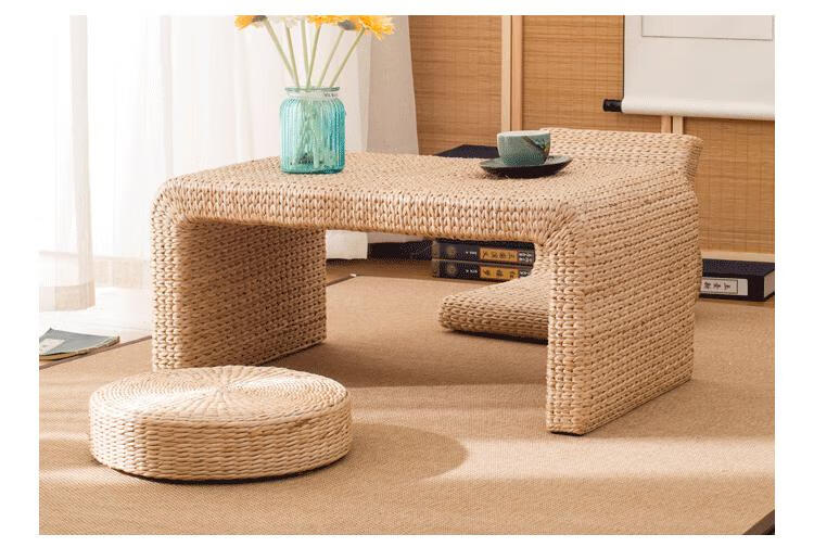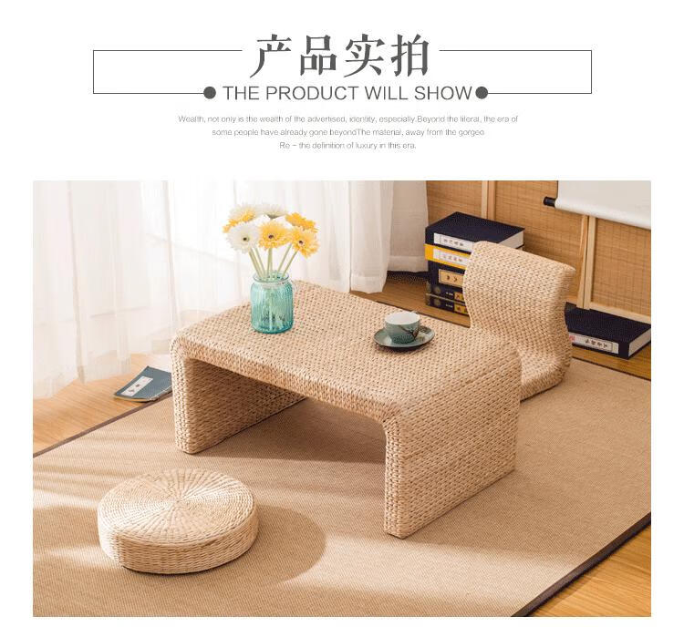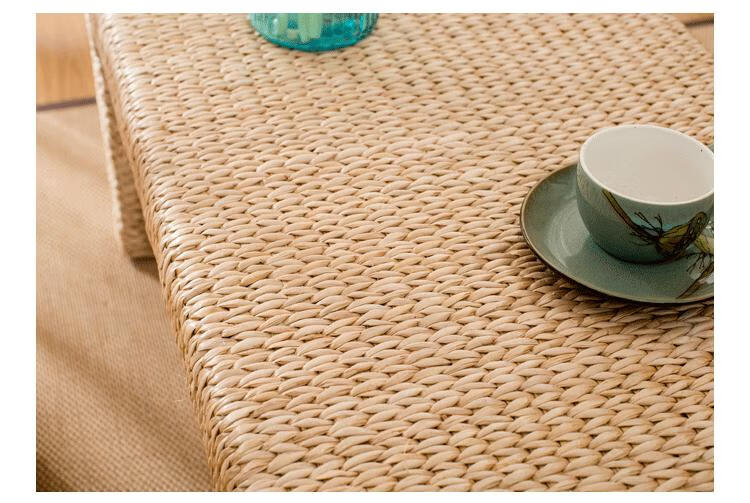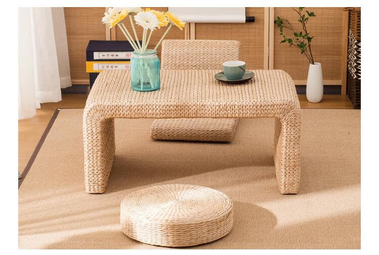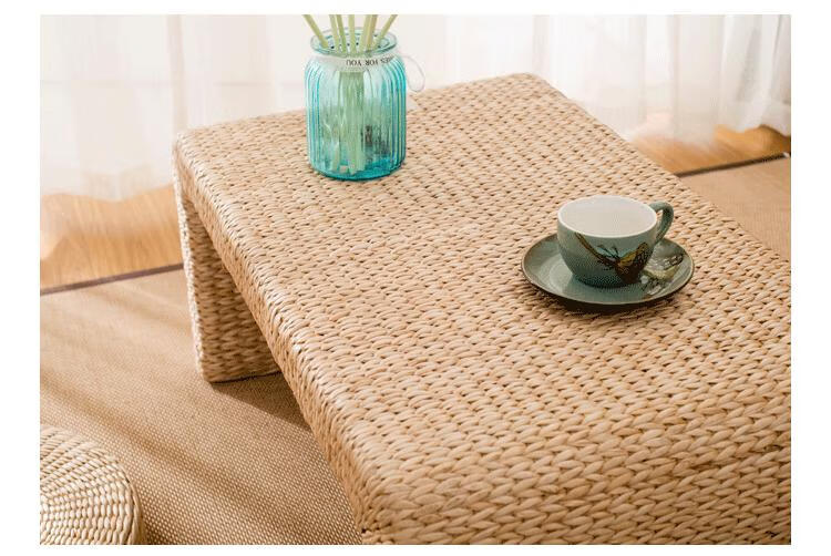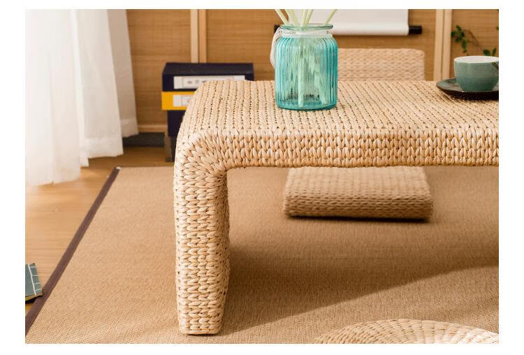 Jingmu Huanian simple solid wood straw woven rattan tatami coffee table bay window table tea ceremony low table rectangular small table balcony floor table extra large coffee table (120 cm) fully assembled