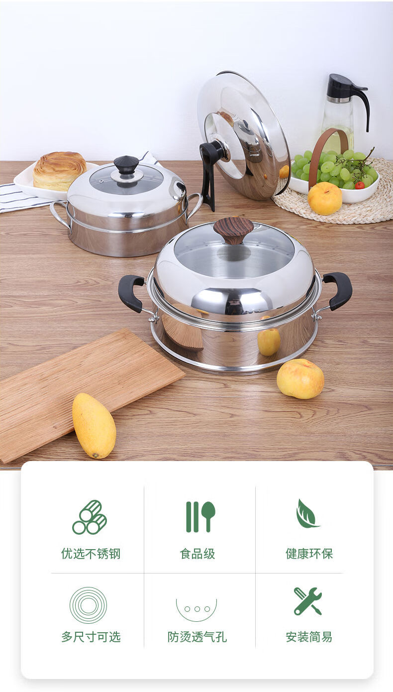 Energy-saving pot lid, anti-odor steamer lid, high lid, household 24CM26CM28 stainless steel rice steamer lid, inner diameter 27cm, anti-odor steamer lid with diamond button