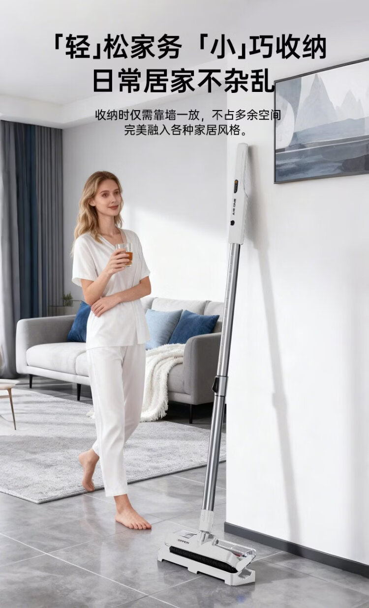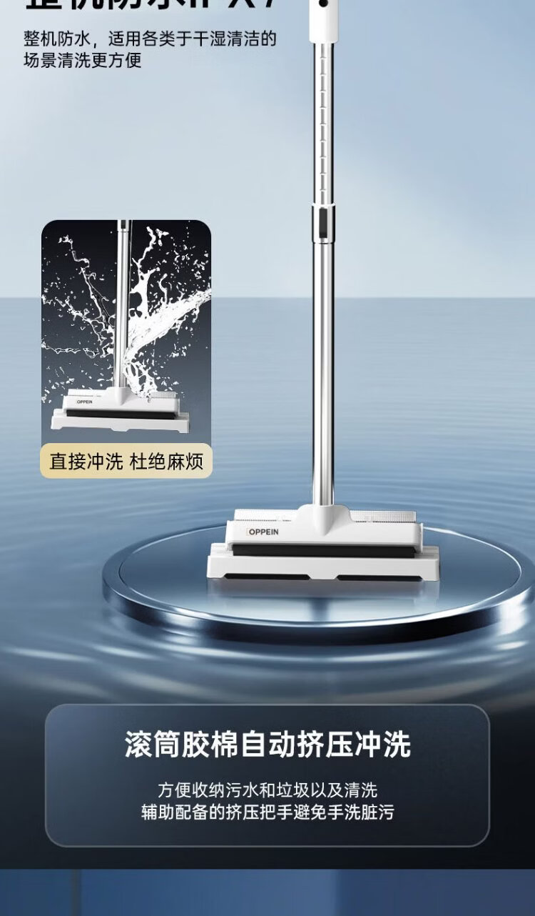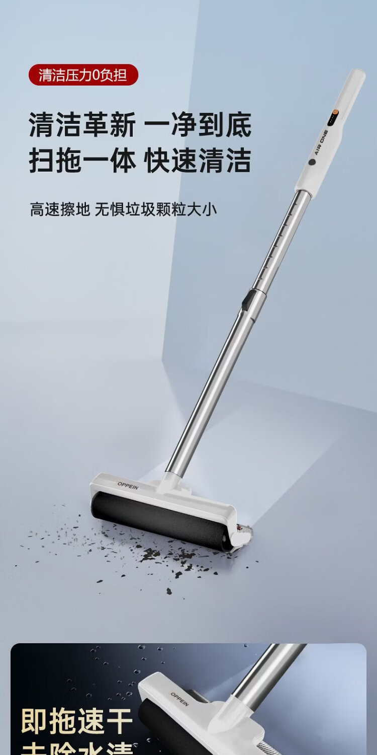 Oppein wireless electric mop, wash and mop all-in-one, hand-wash-free, portable household floor scrubber, three-in-one household lightweight sweeping mop, long-lasting floor scrubber 25 upgraded wireless electric mop (white simple model)