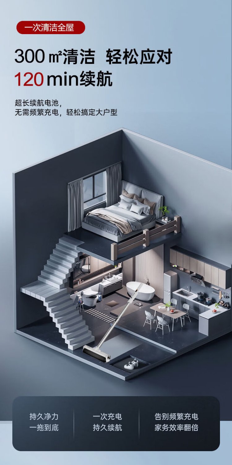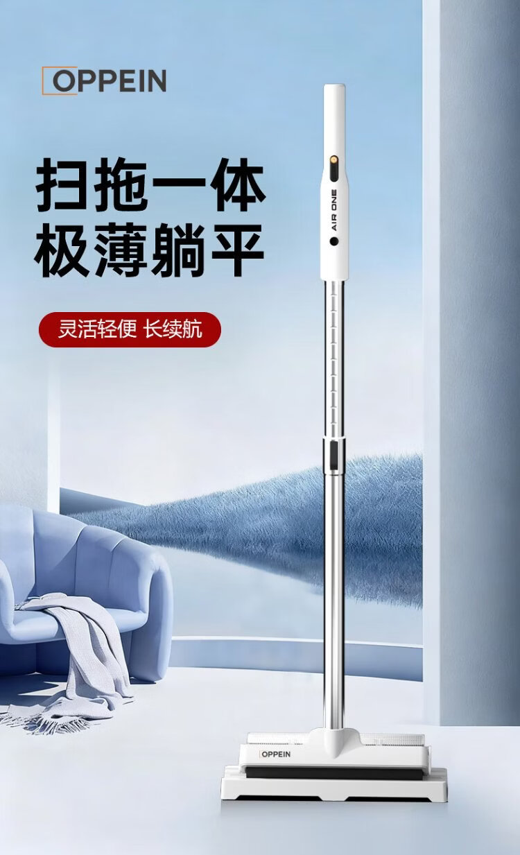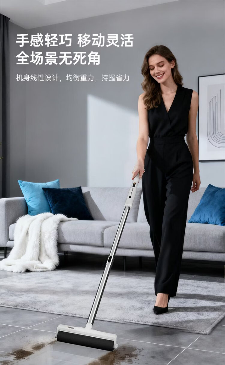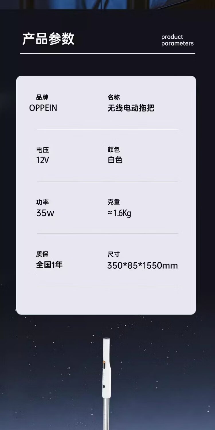 Oppein wireless electric mop, wash and mop all-in-one, hand-wash-free, portable household floor scrubber, three-in-one household lightweight sweeping mop, long-lasting floor scrubber 25 upgraded wireless electric mop (white simple model)