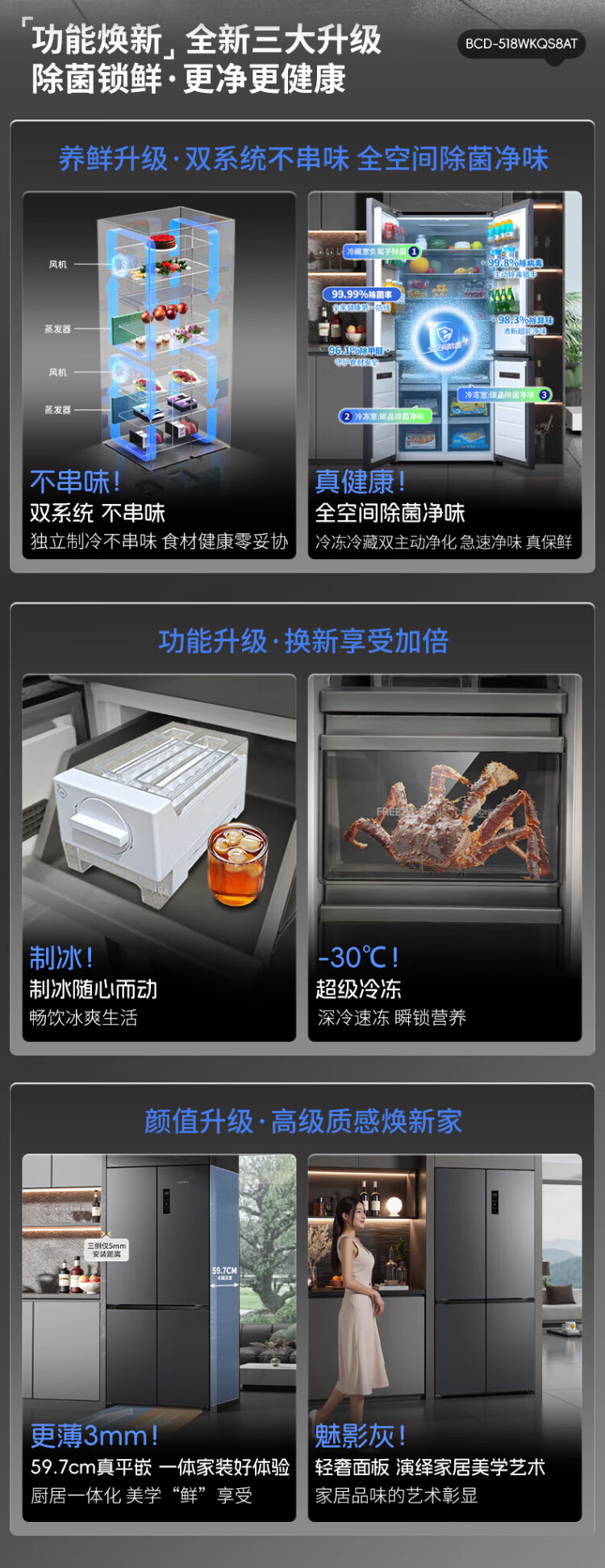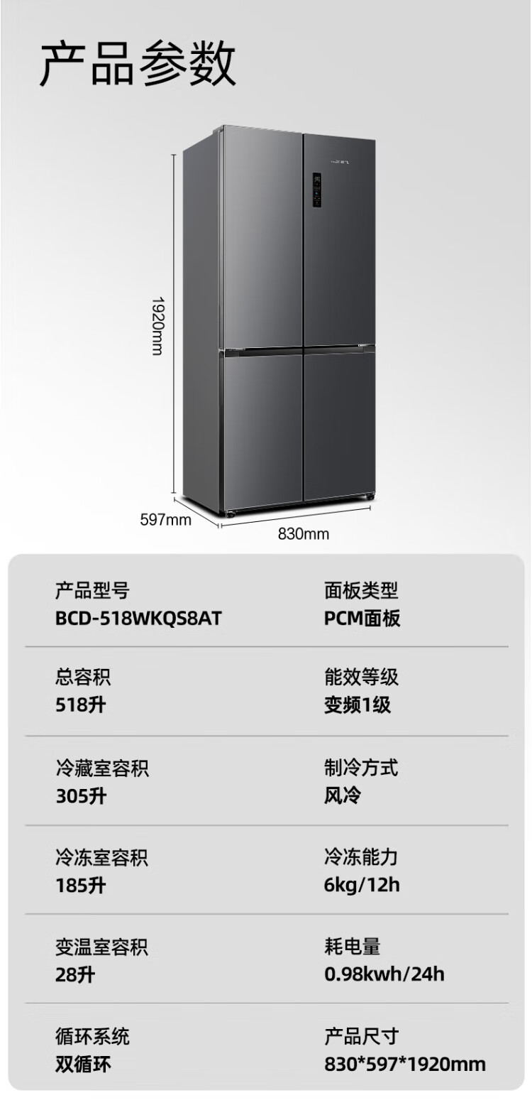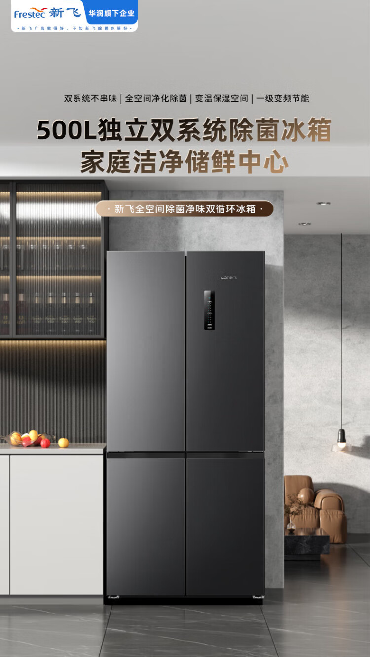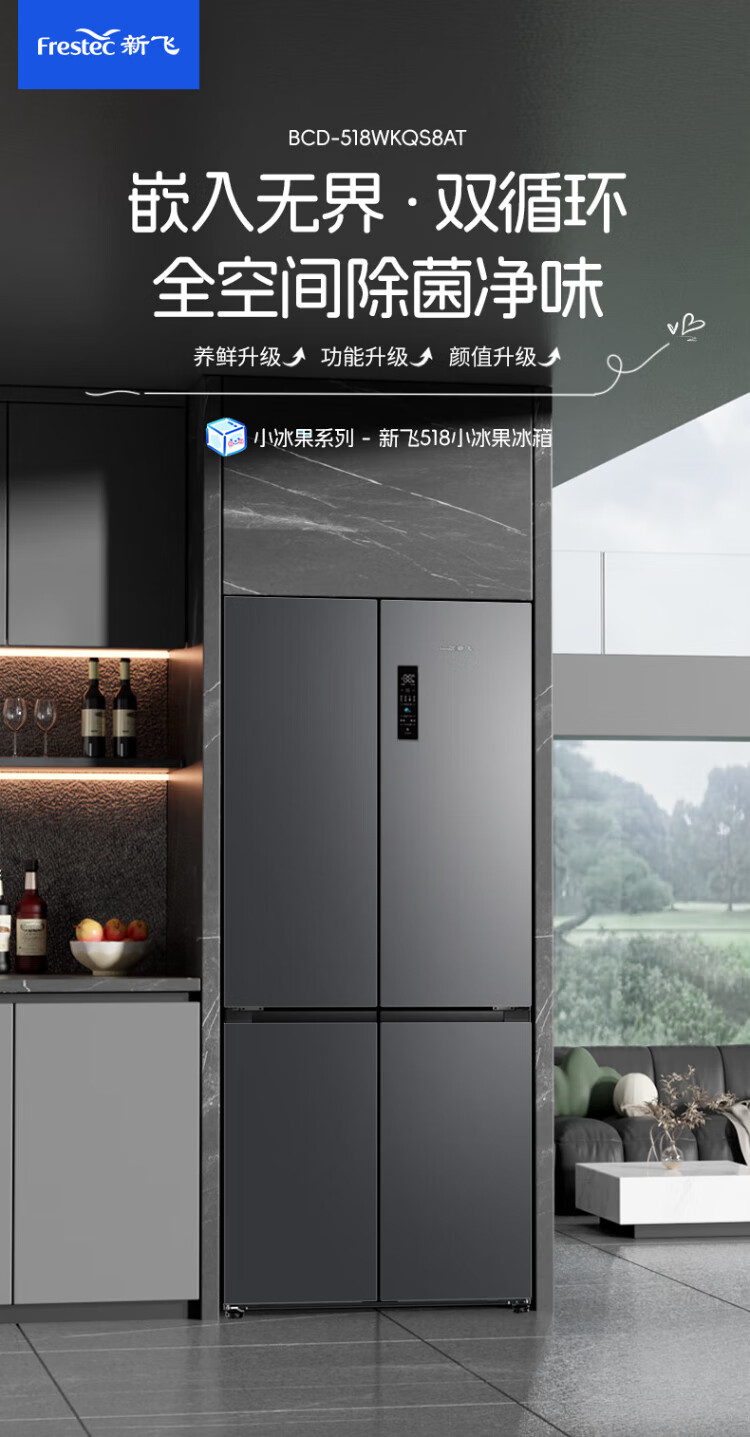 Xinfei refrigerator 518/500 liter dual cycle dual system zero flush embedded full space sterilization cross door refrigerator four door frequency conversion first level energy efficiency energy saving air cooling frost-free household 500 liter gray non-zero embedded - dual cycle dual system