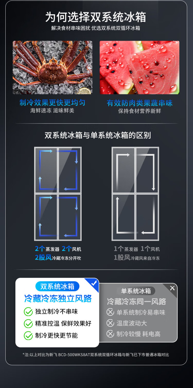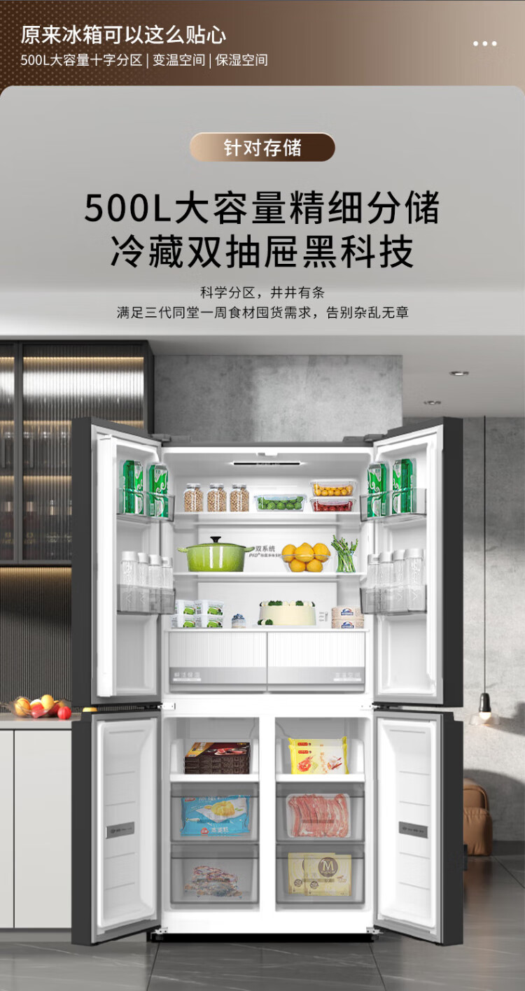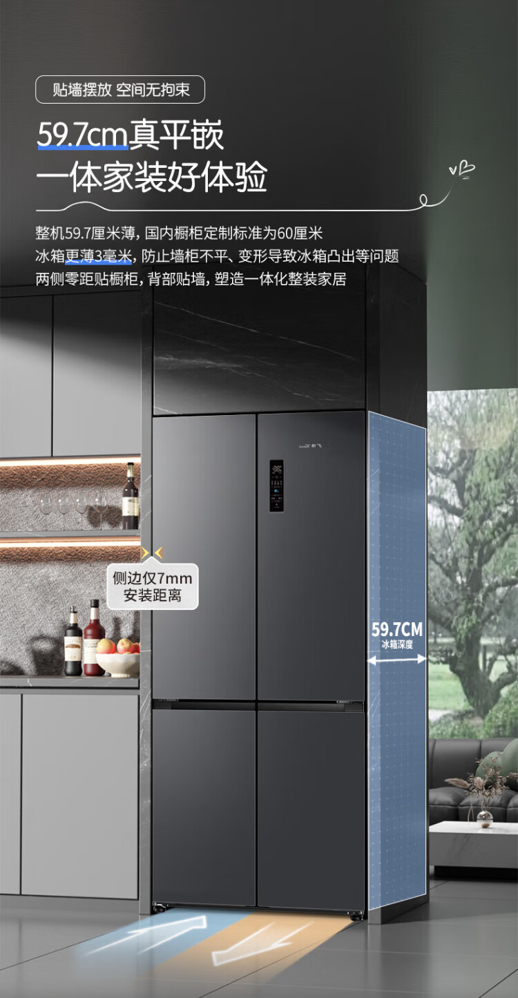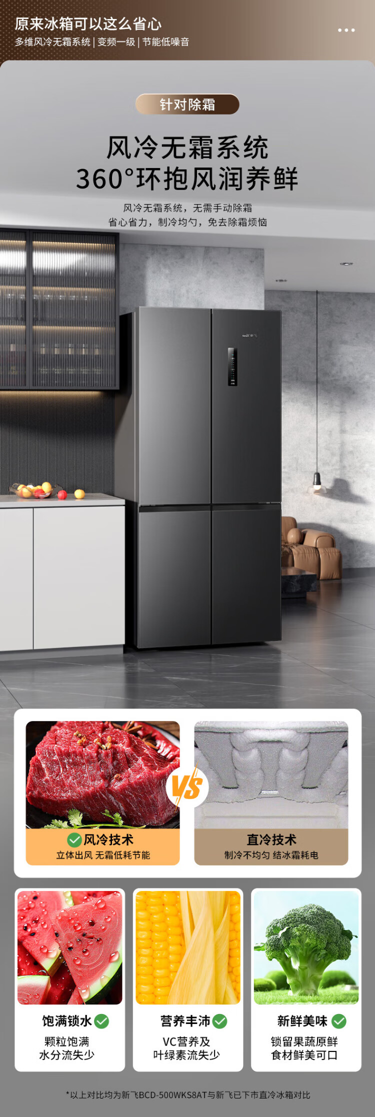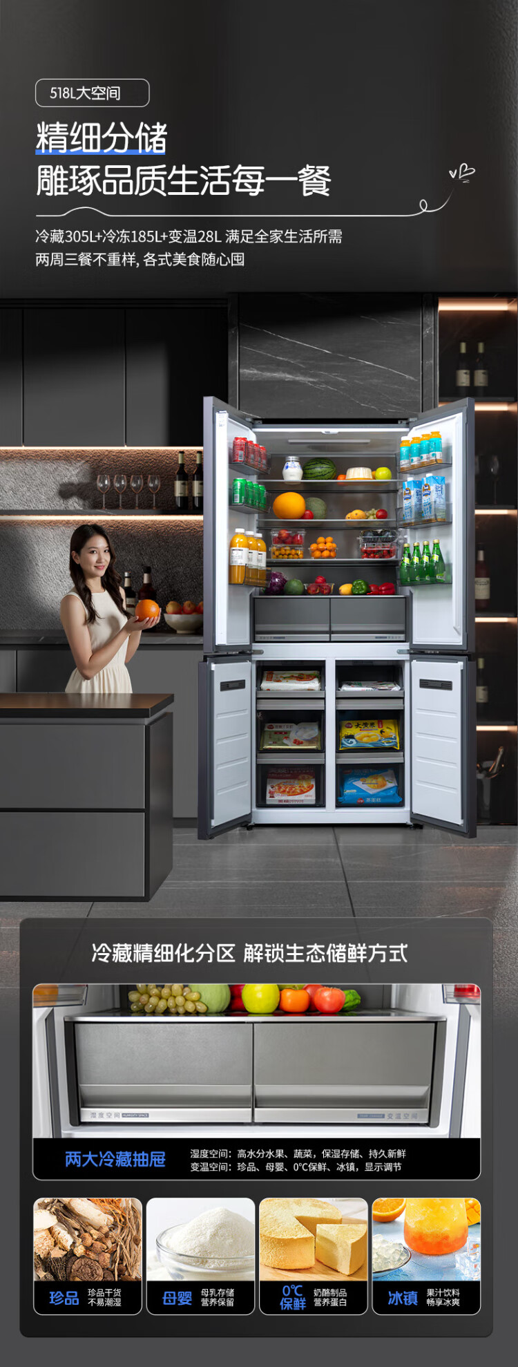 Xinfei refrigerator 518/500 liter dual cycle dual system zero flush embedded full space sterilization cross door refrigerator four door frequency conversion first level energy efficiency energy saving air cooling frost-free household 500 liter gray non-zero embedded - dual cycle dual system