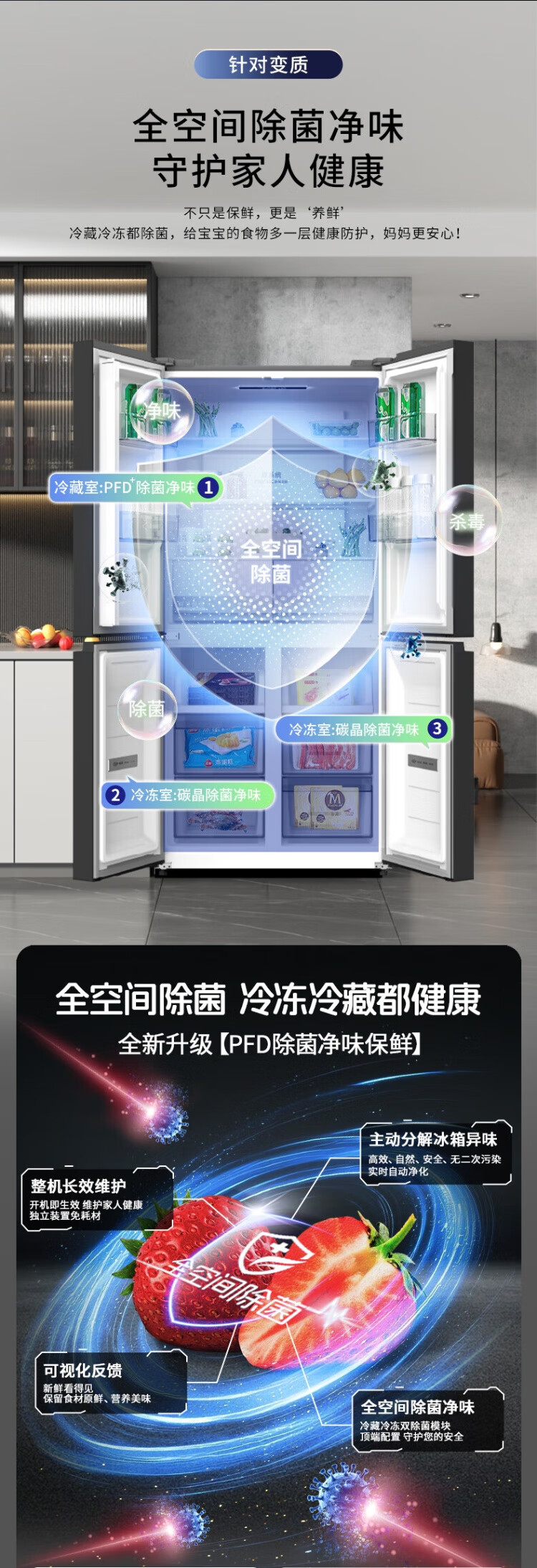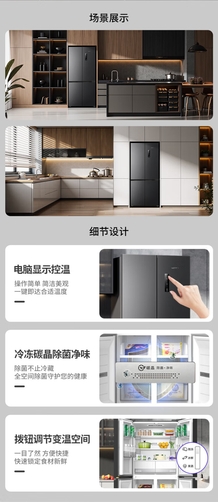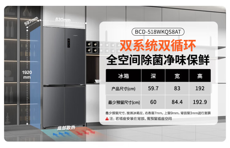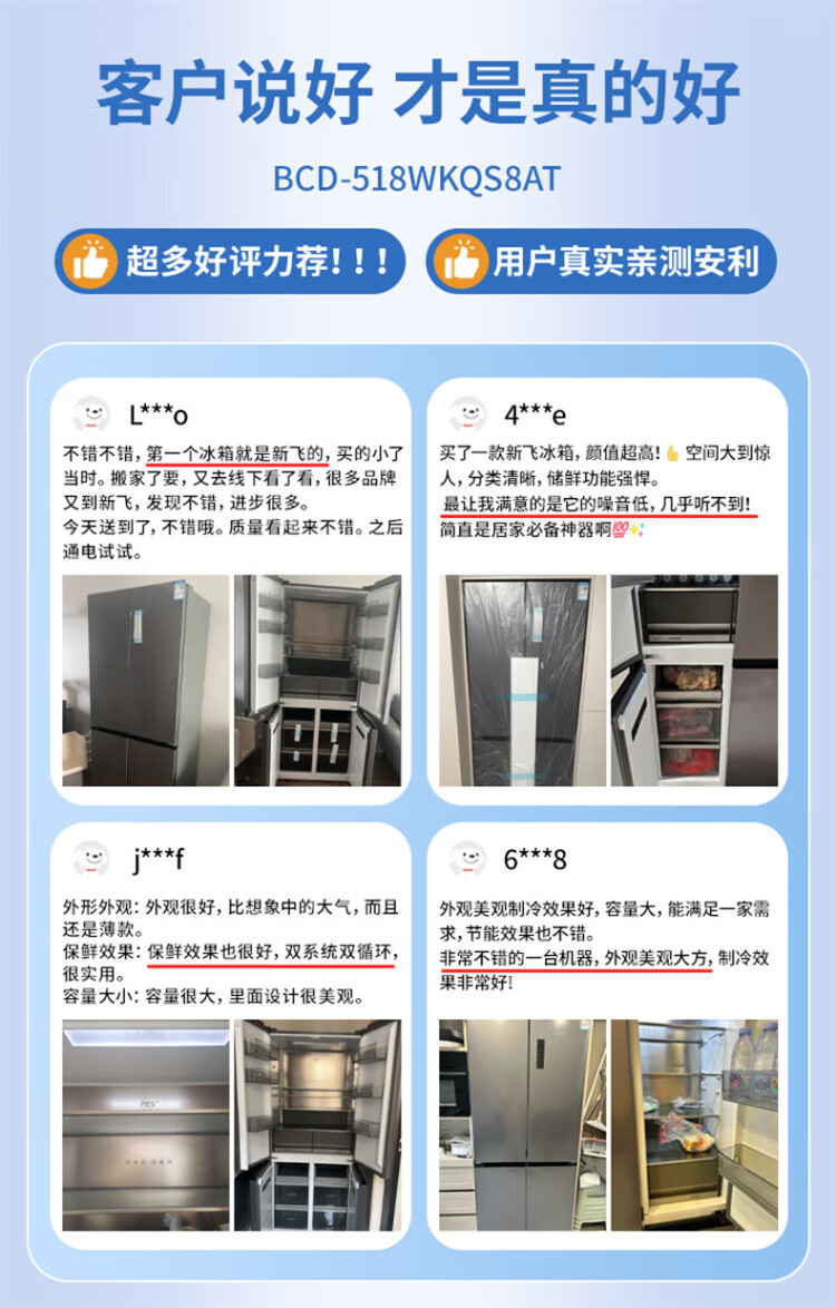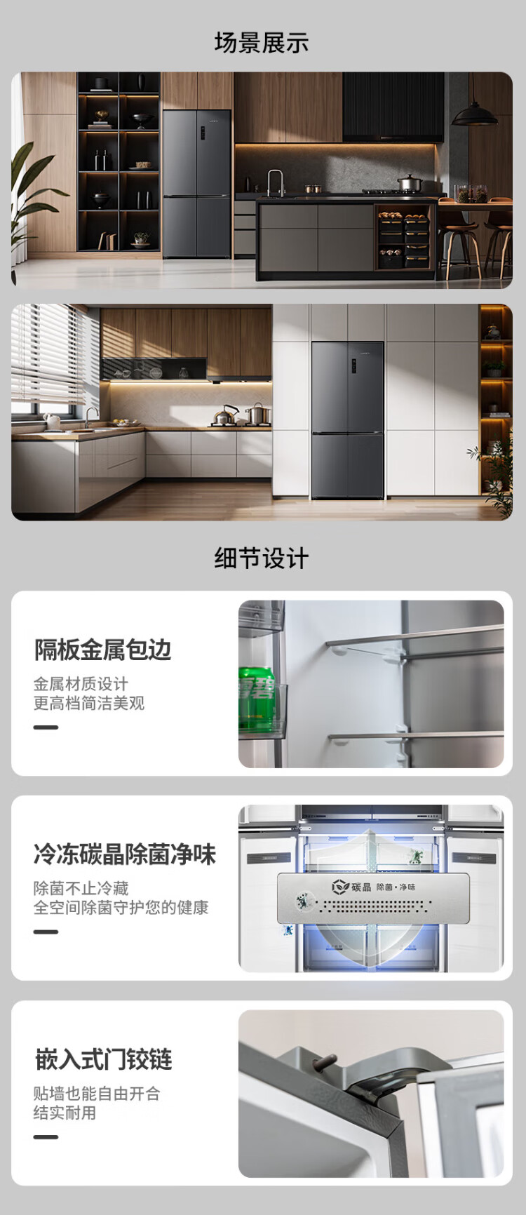 Xinfei refrigerator 518/500 liter dual cycle dual system zero flush embedded full space sterilization cross door refrigerator four door frequency conversion first level energy efficiency energy saving air cooling frost-free household 500 liter gray non-zero embedded - dual cycle dual system